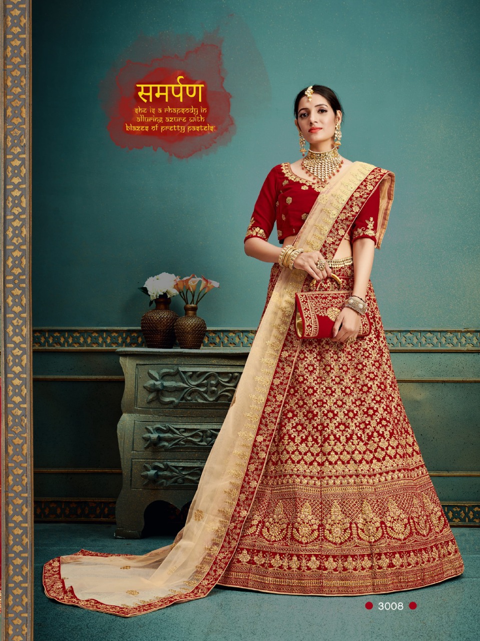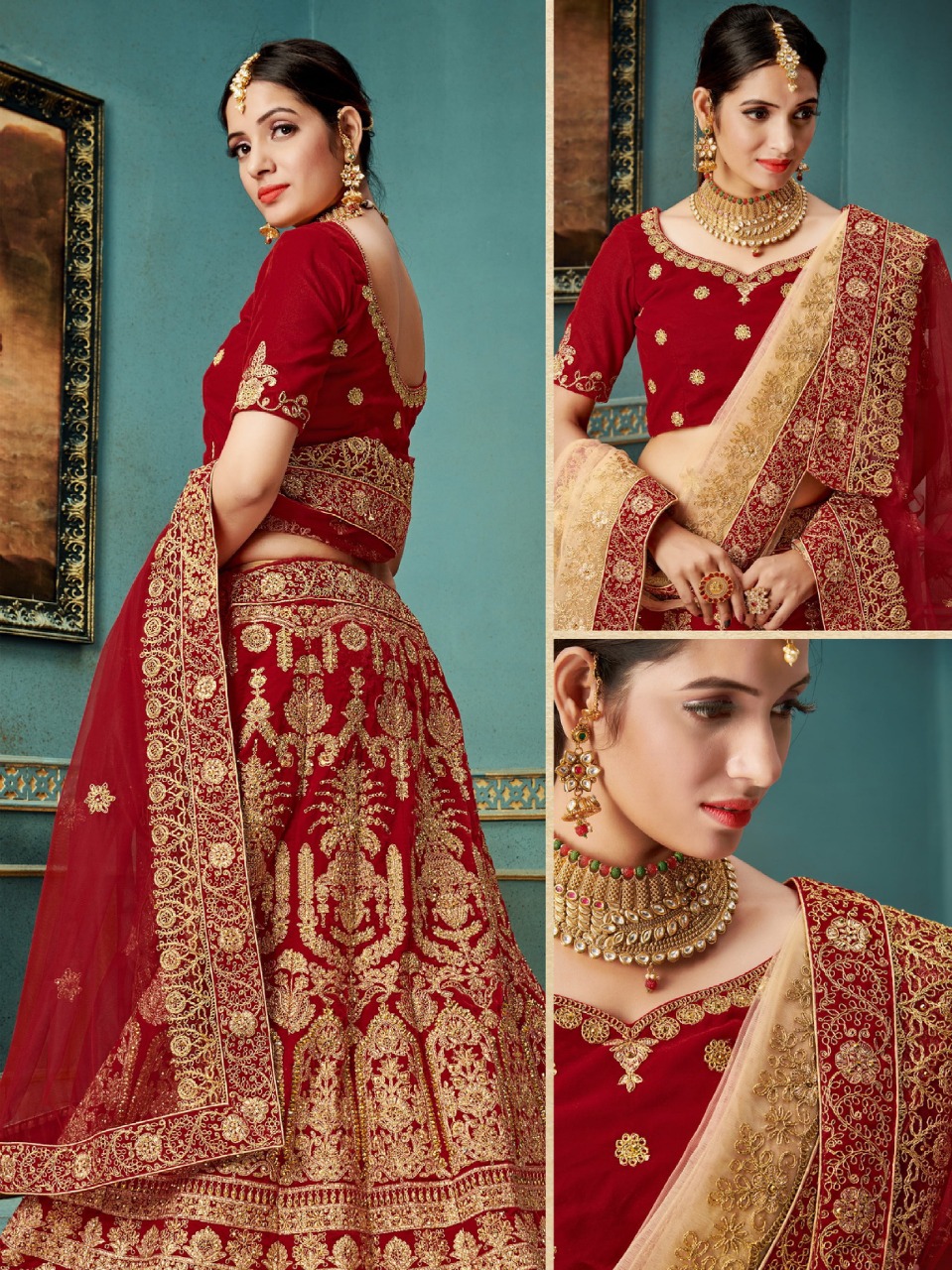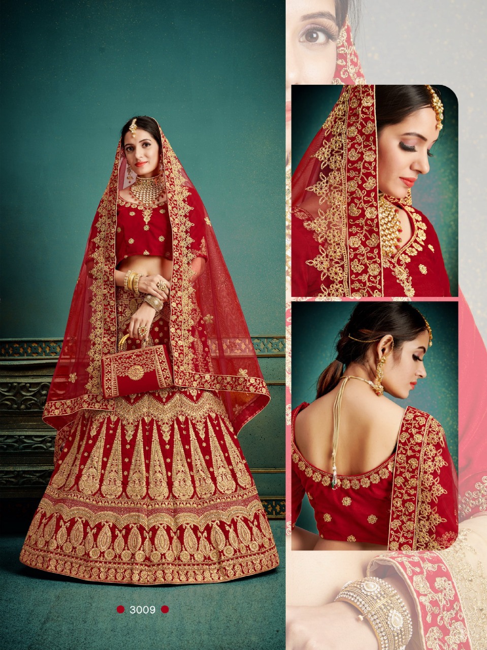 Umika Suhagan Vol 3 Velvet Fabrics Bridal Concept New Catalog With Double Dupatta And Purse Lehenga