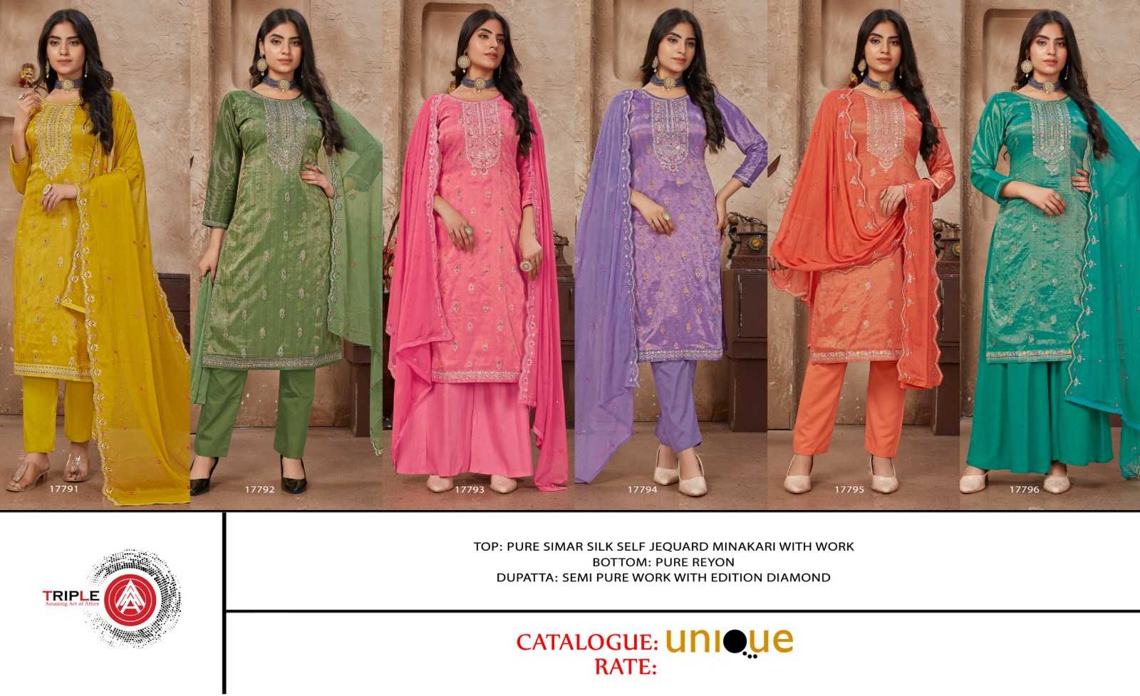 unique by fourdots fancy simar silk designer minakari kurti pant with dupatta