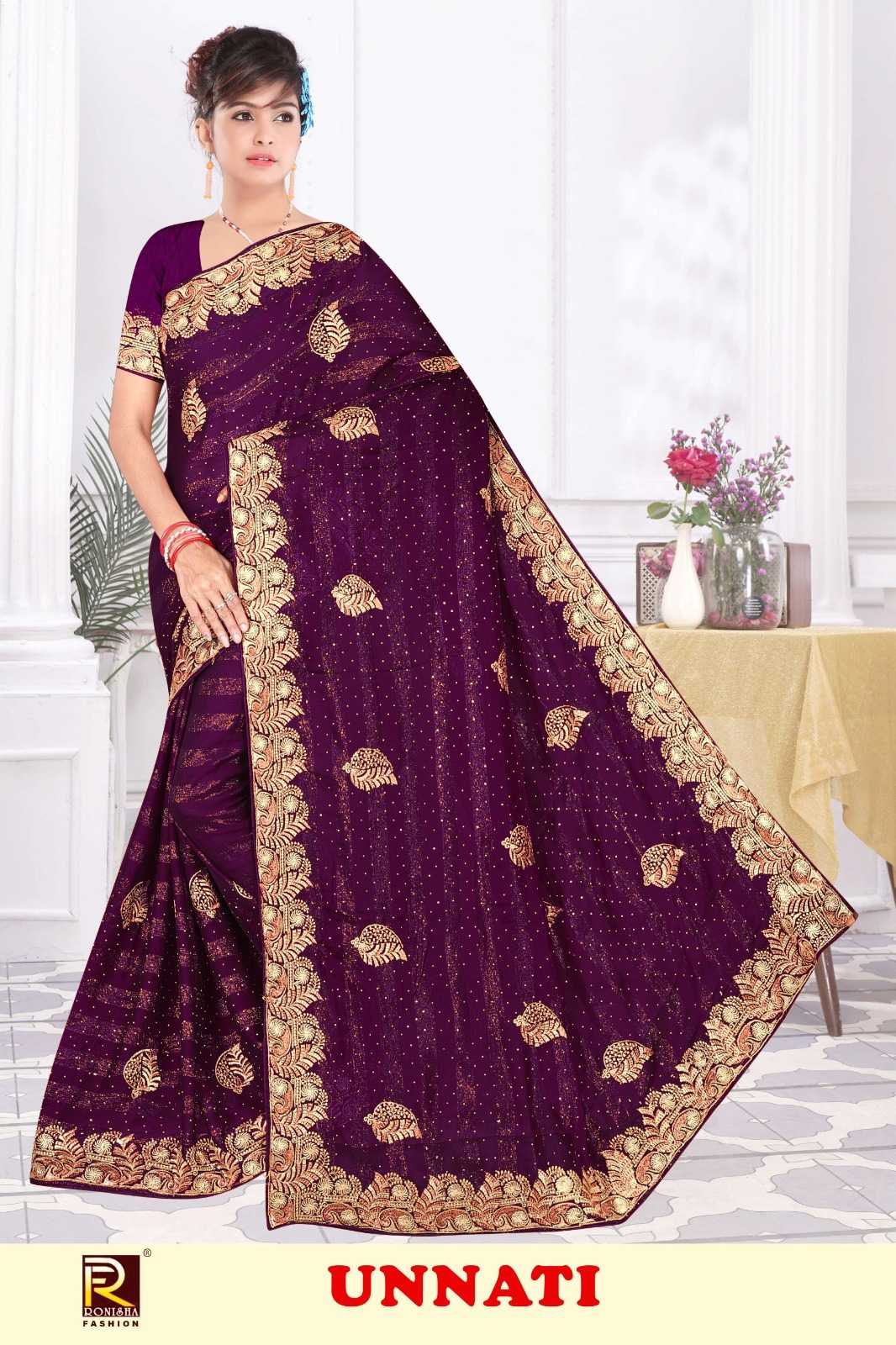 UNNATI BY RANJNA SAREE RIMZIN FABRICS SIROSKI DIAMOND WORK & EMBROIDERY WORK FANCY SUPER HIT COLLECTION SAREES
