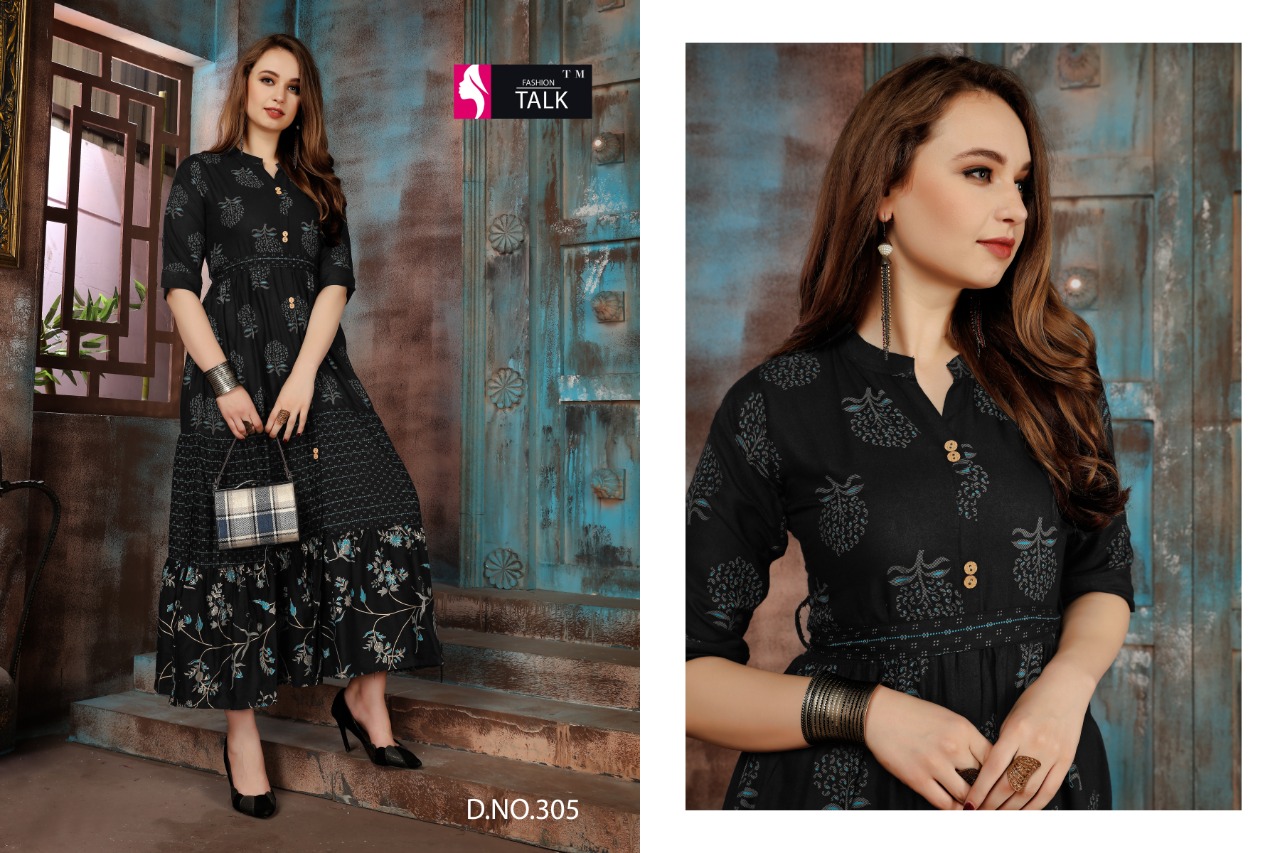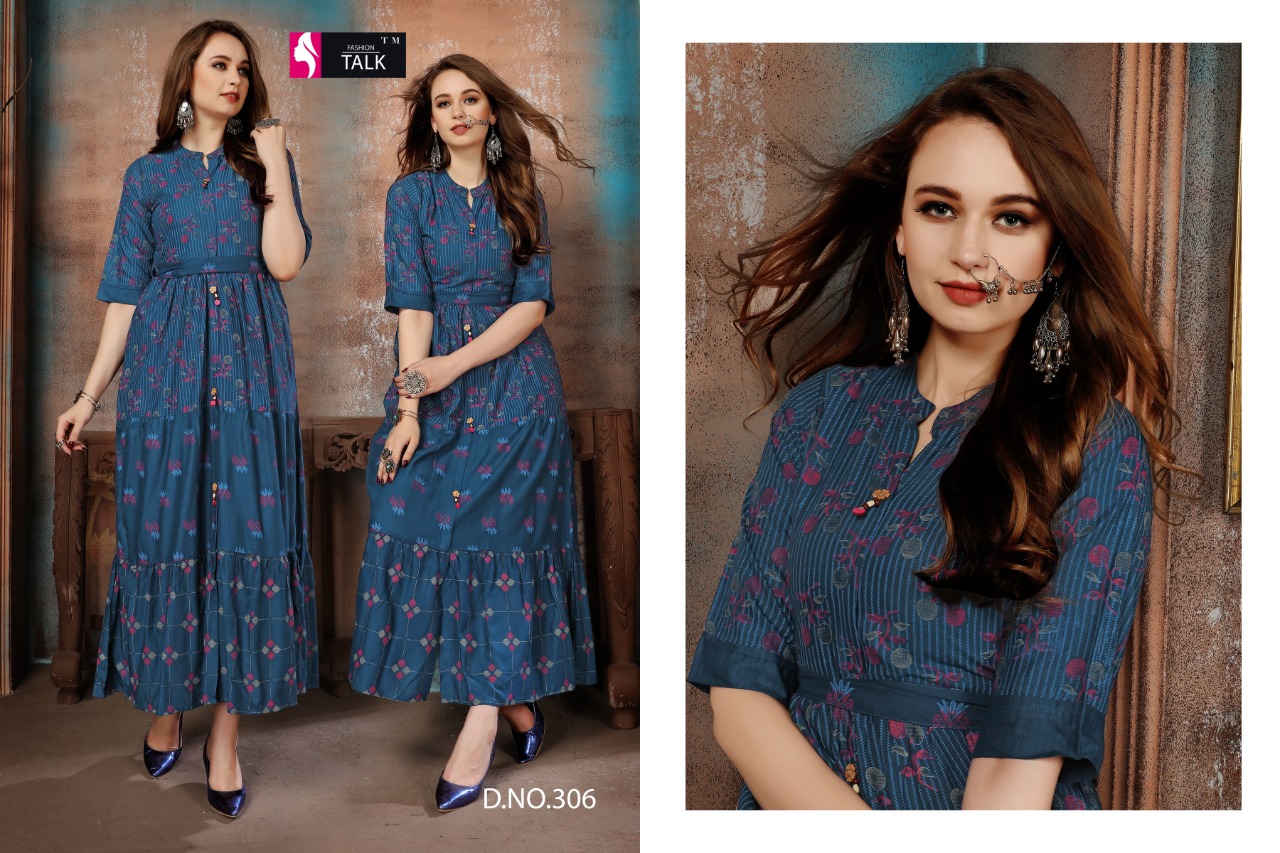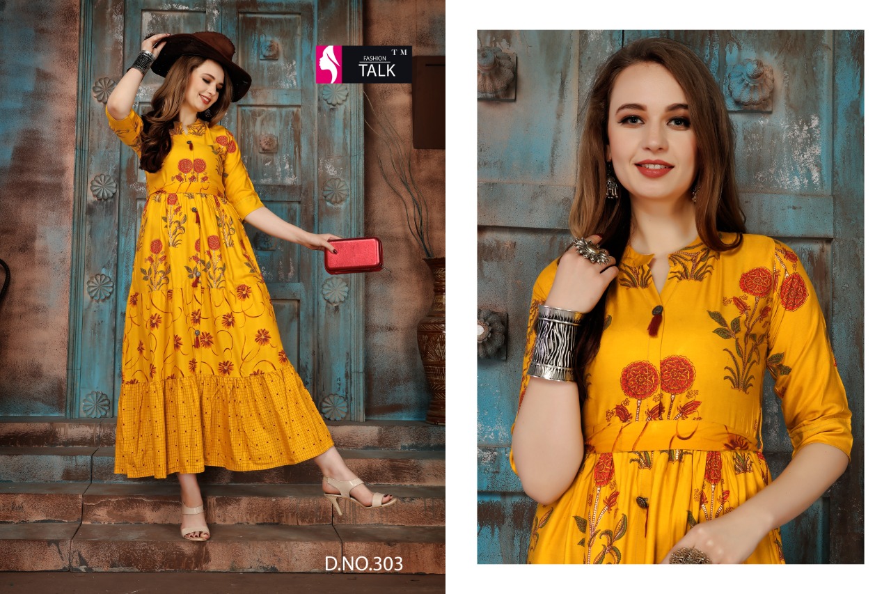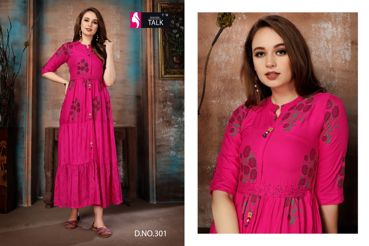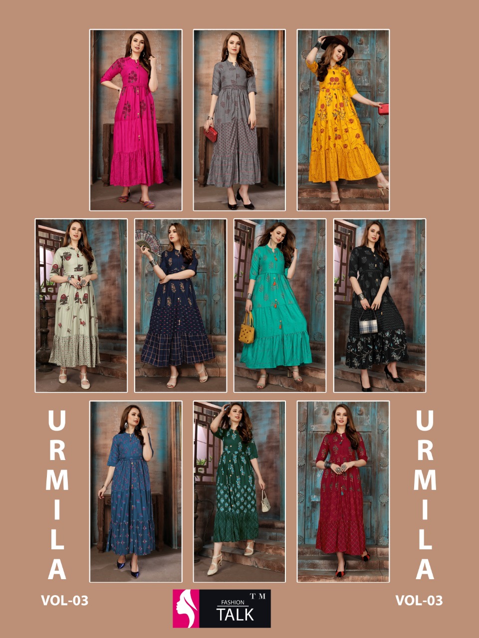Urmila Vol 3 Of Fashion Talk Rayon Printed Long Gown Style Kurti Supplier