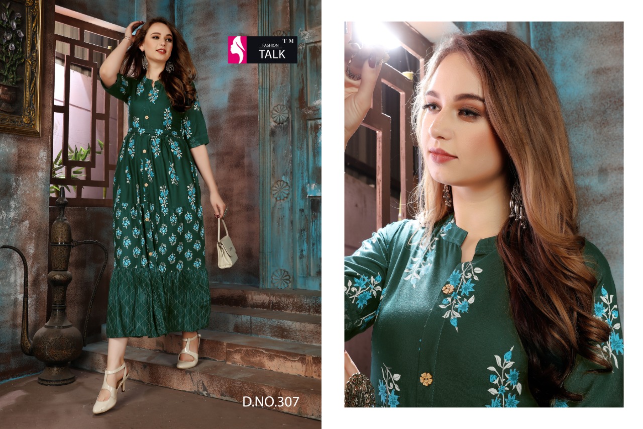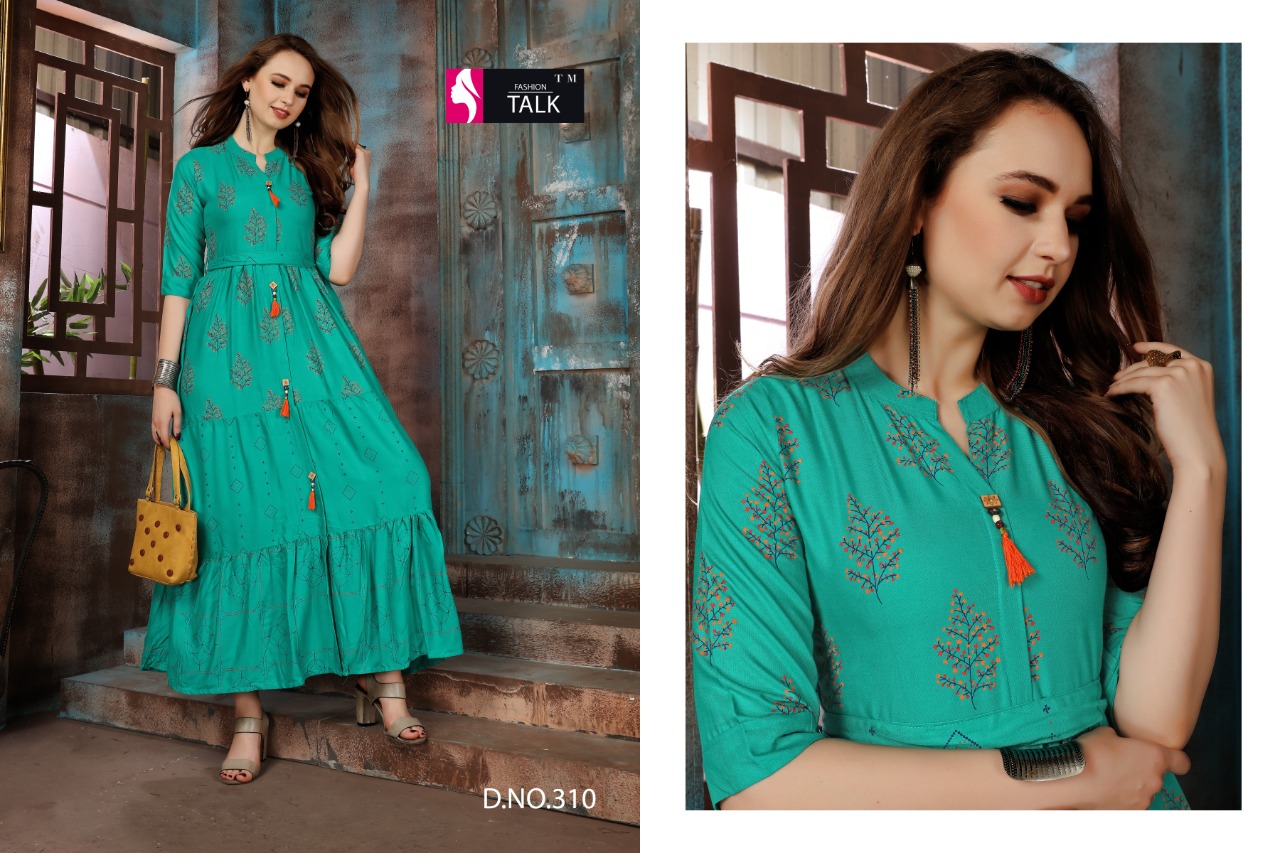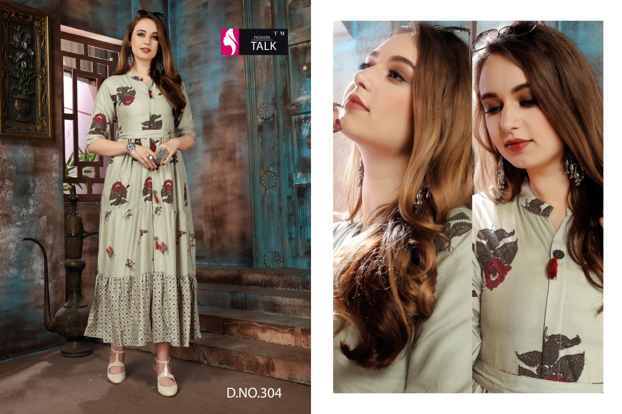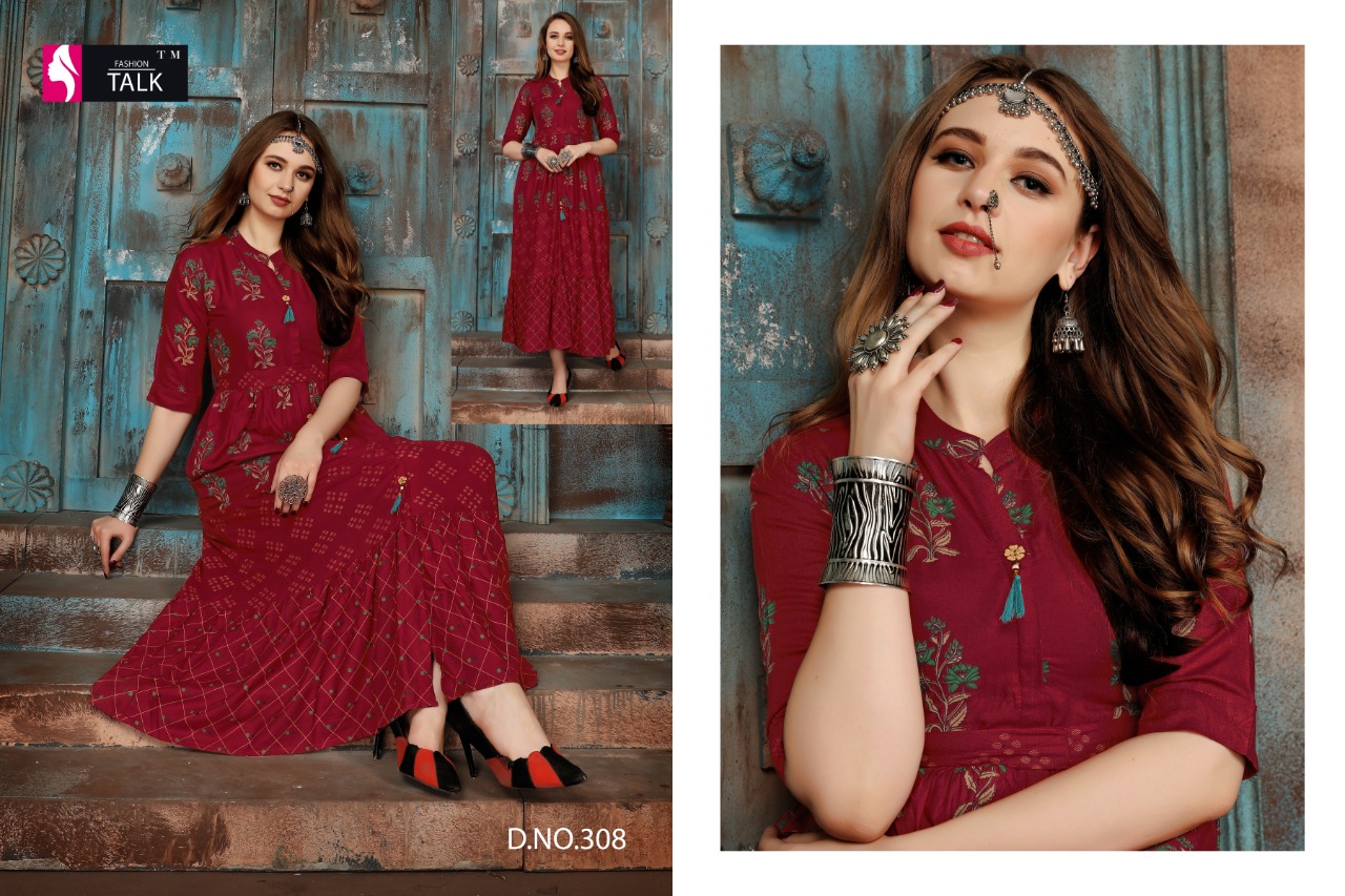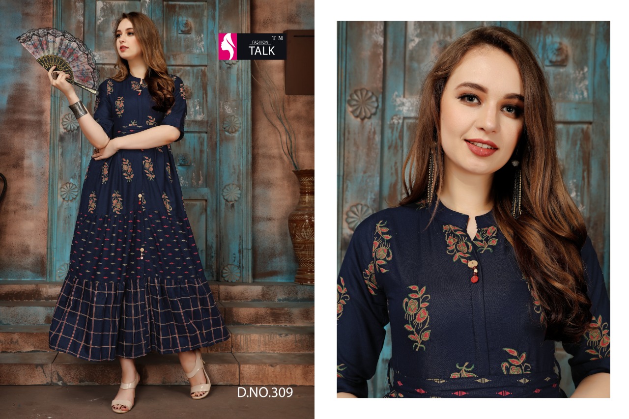 Urmila Vol 3 Of Fashion Talk Rayon Printed Long Gown Style Kurti Supplier