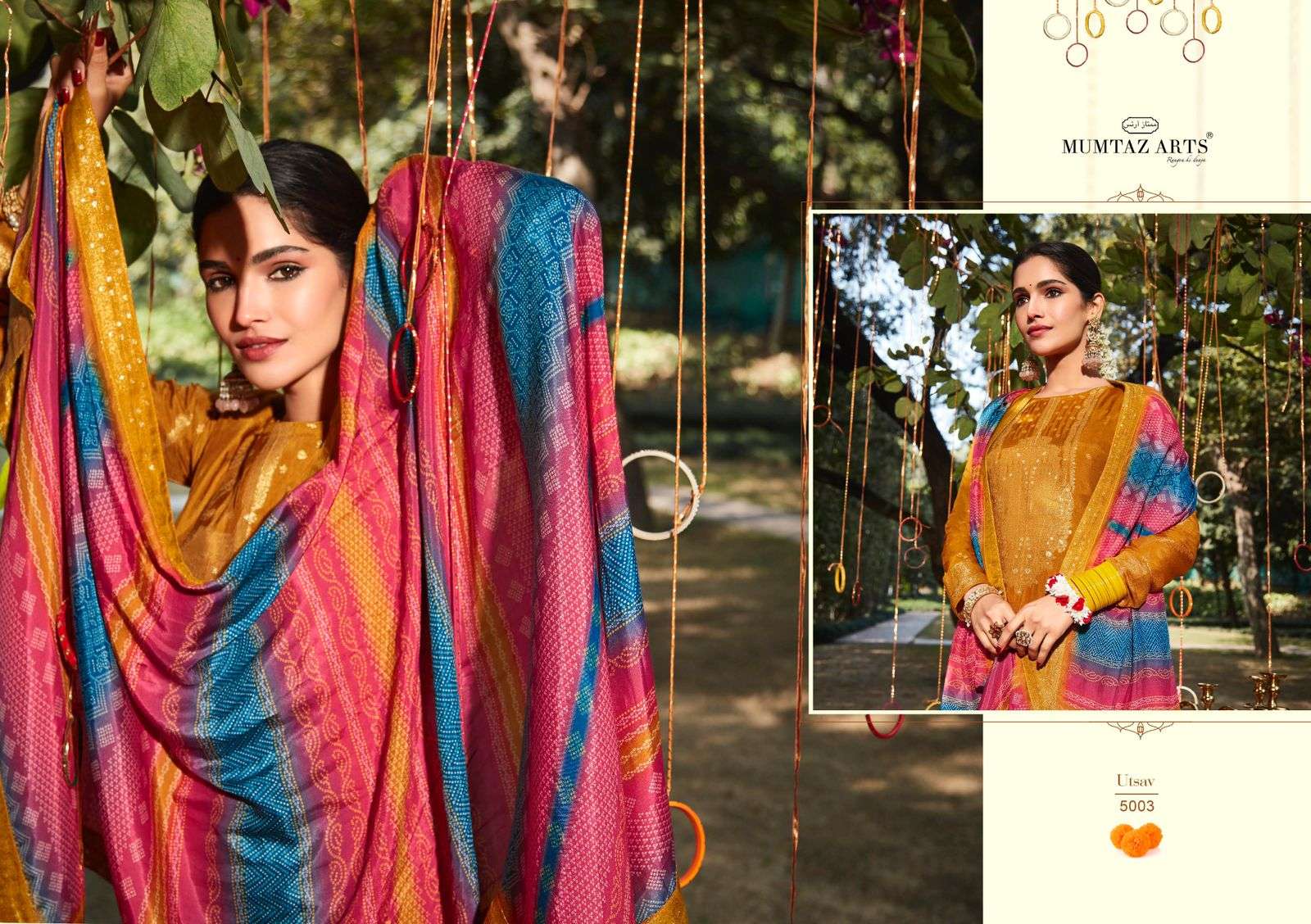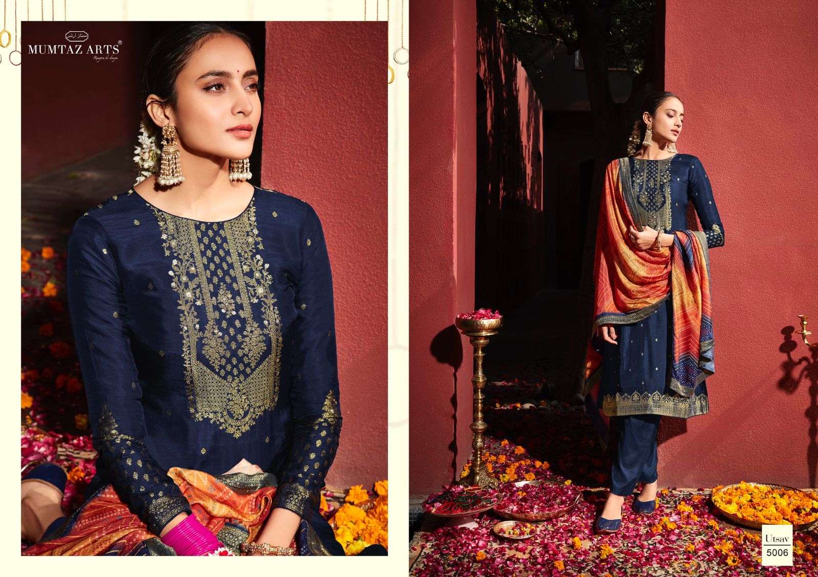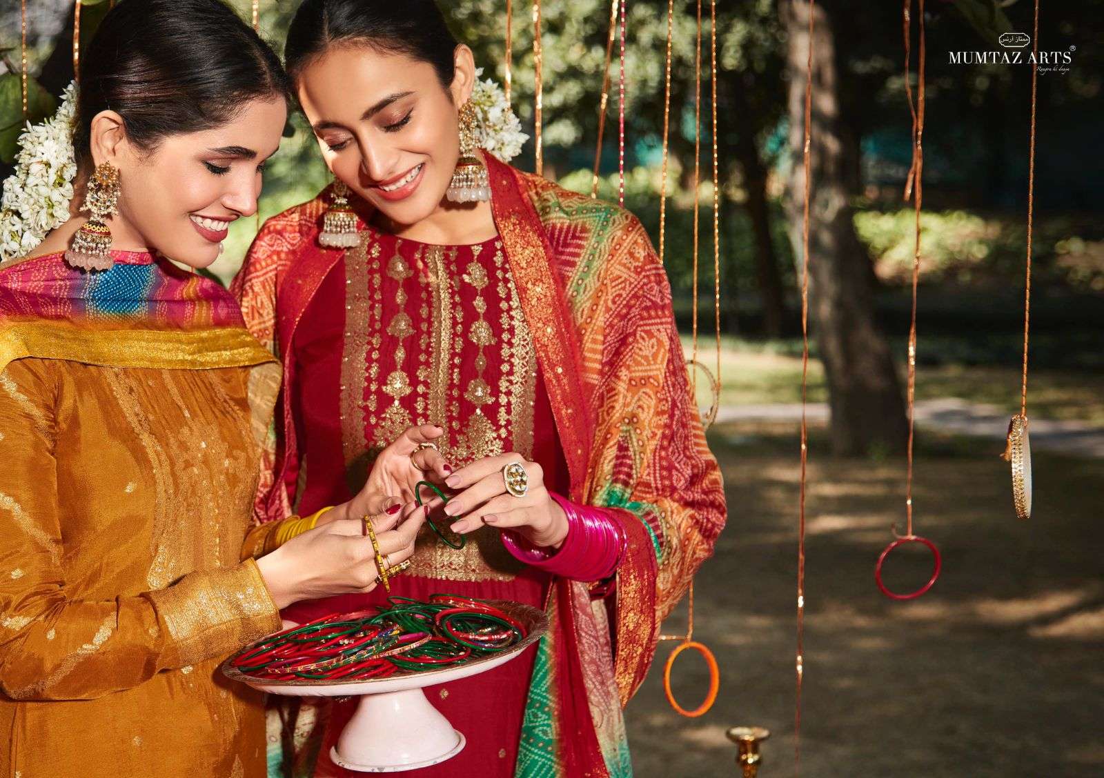 MUMTAZ ARTS MUMTAZ ARTS UTSAV DOLA JAQAURD FABRIC DETAILS SALWAR :- CHUNRI :- DSGNS-6 pcs |