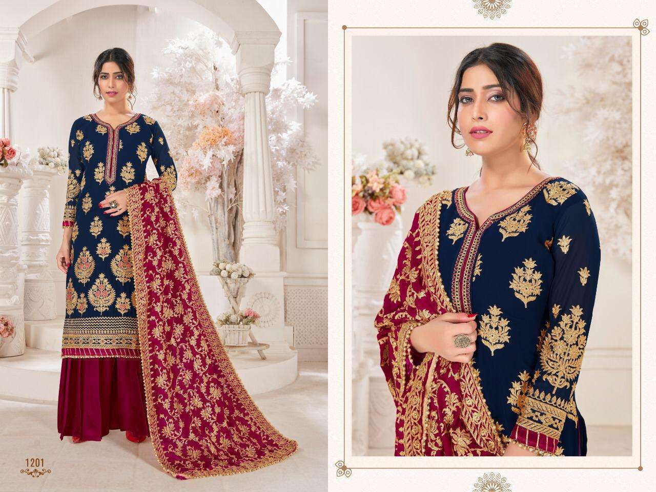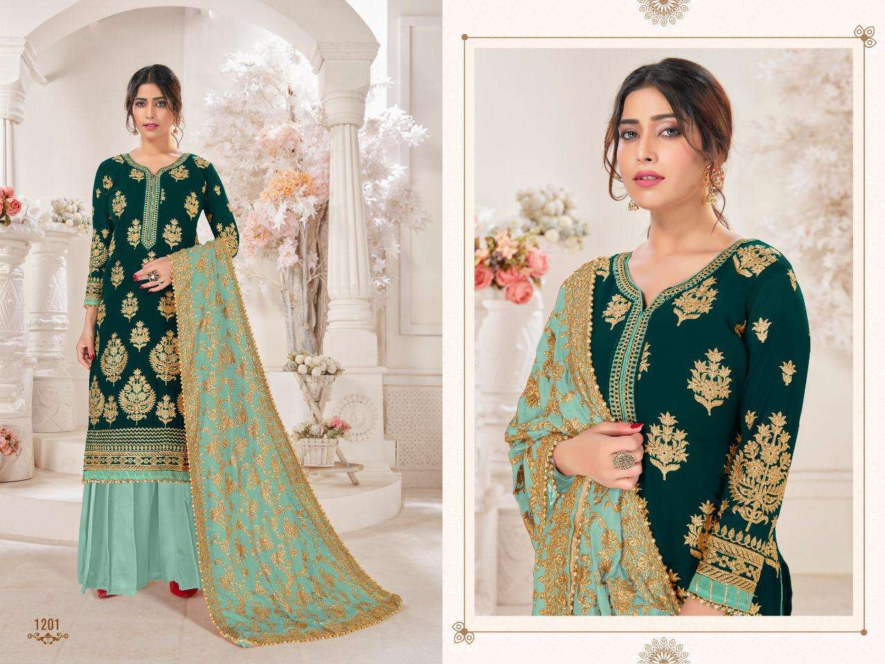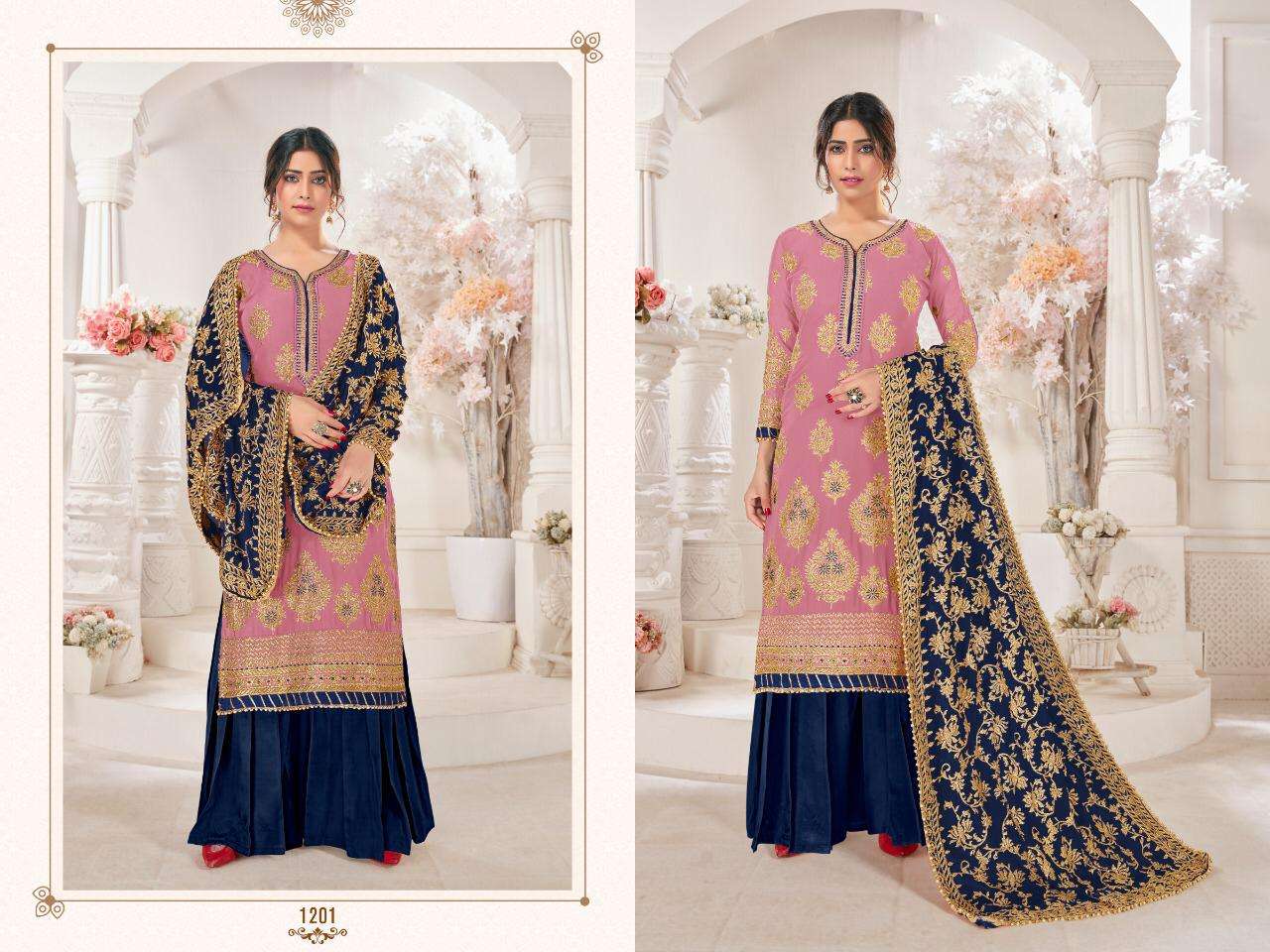 "UTSAV SUITS"_ BRAND CREATED BY YOU WE R NOW INTRODUCING UTSAV GOLD Fabric Details:- Top :-Fox Georgette with beautiful Dimond Bot  :- Pure Santoon  Dup :-Pure Chinon with heavy work n latkan lace Rate :- 1250 COLOUR :-.  5 Pouch Packing Set to set Team:- UTSAV SUITS |