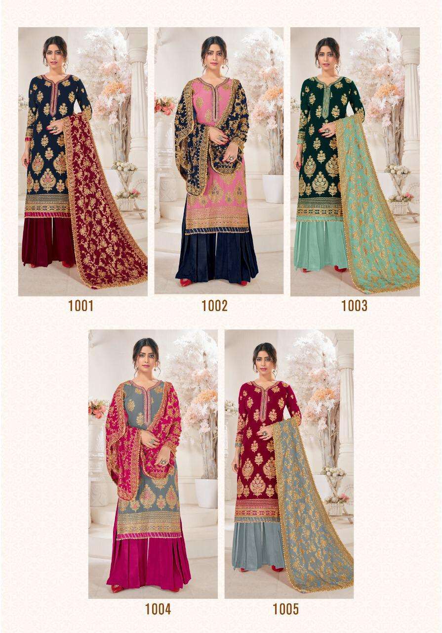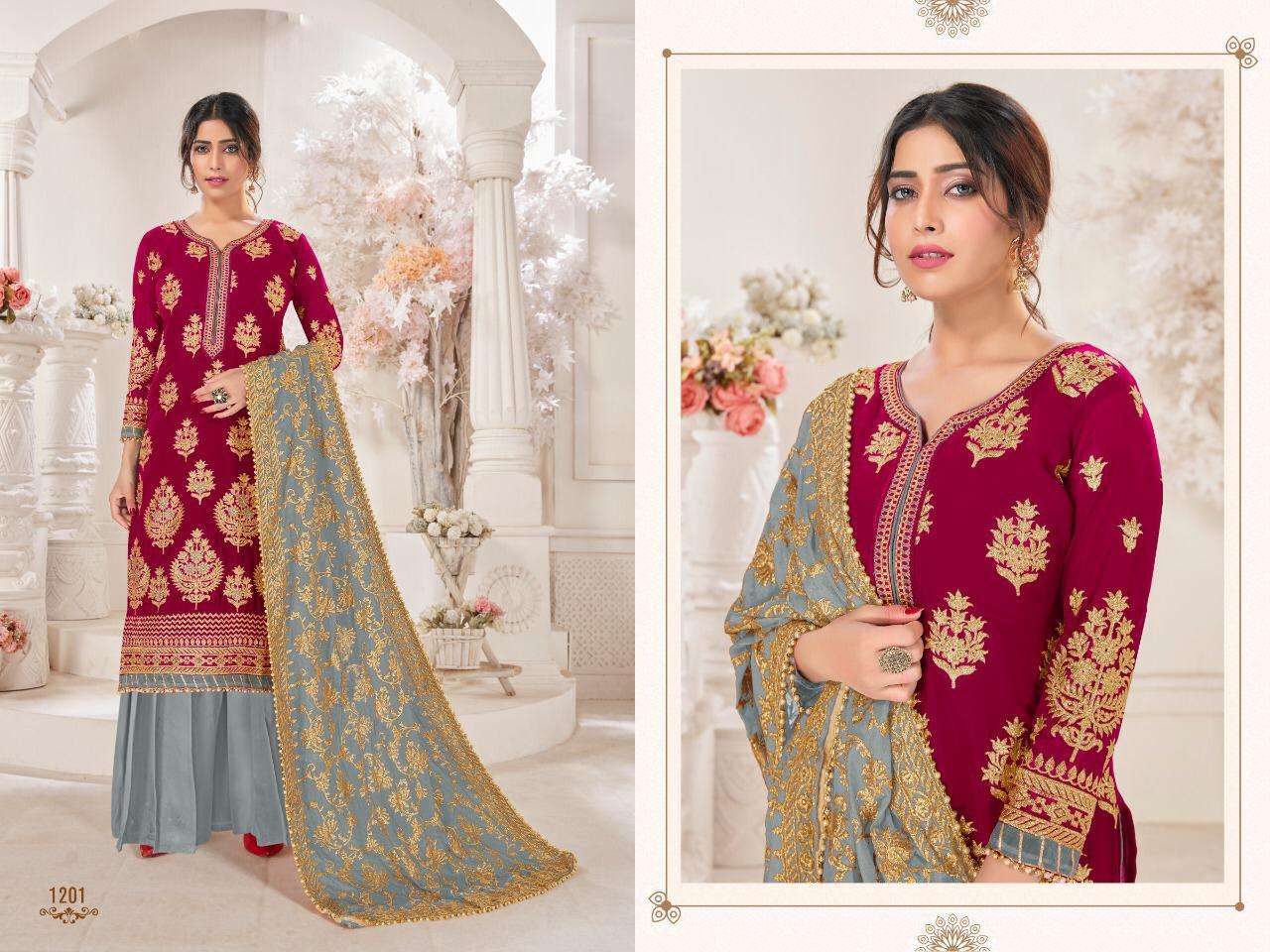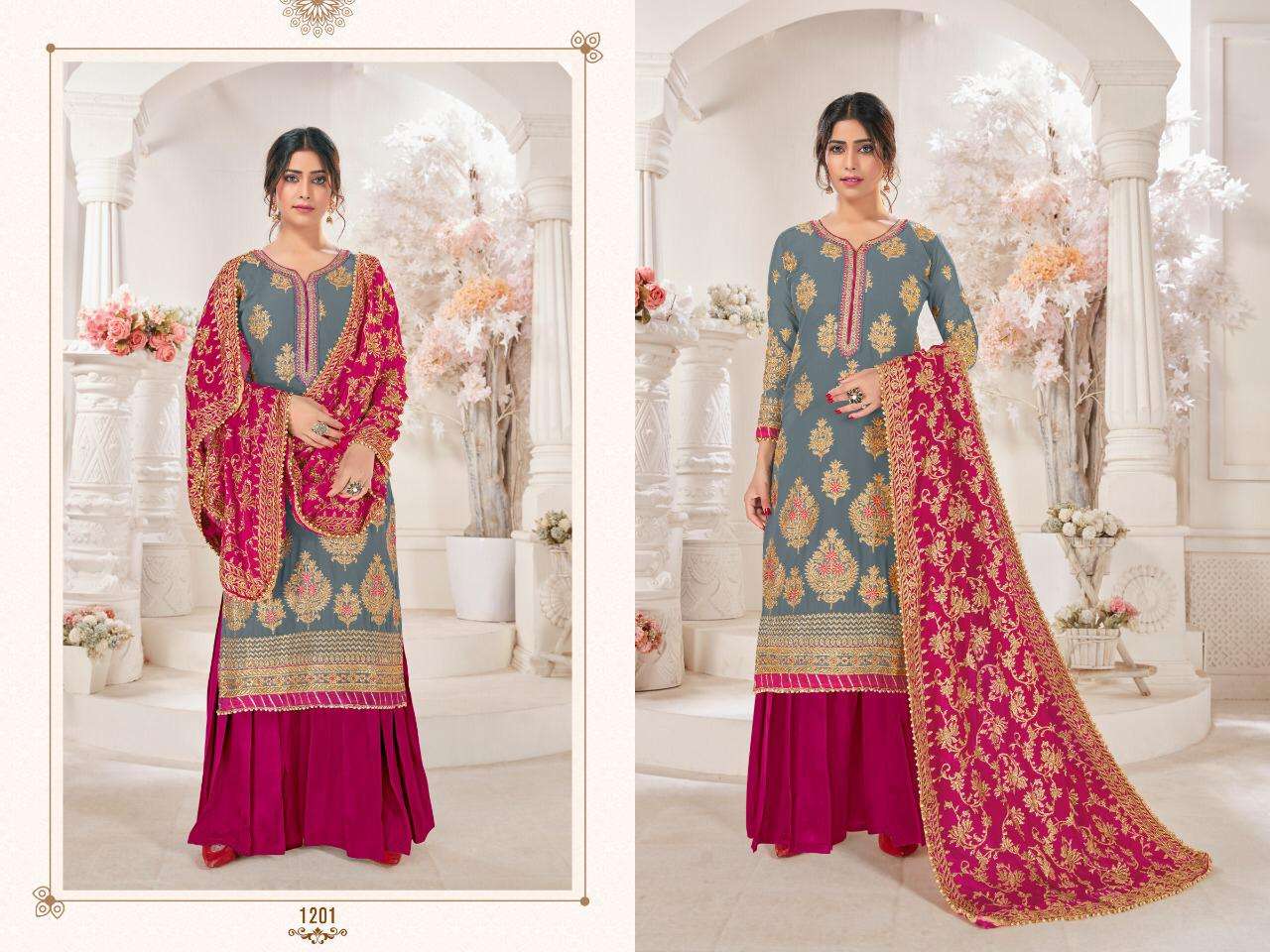 "UTSAV SUITS"_ BRAND CREATED BY YOU WE R NOW INTRODUCING UTSAV GOLD Fabric Details:- Top :-Fox Georgette with beautiful Dimond Bot  :- Pure Santoon  Dup :-Pure Chinon with heavy work n latkan lace Rate :- 1250 COLOUR :-.  5 Pouch Packing Set to set Team:- UTSAV SUITS |