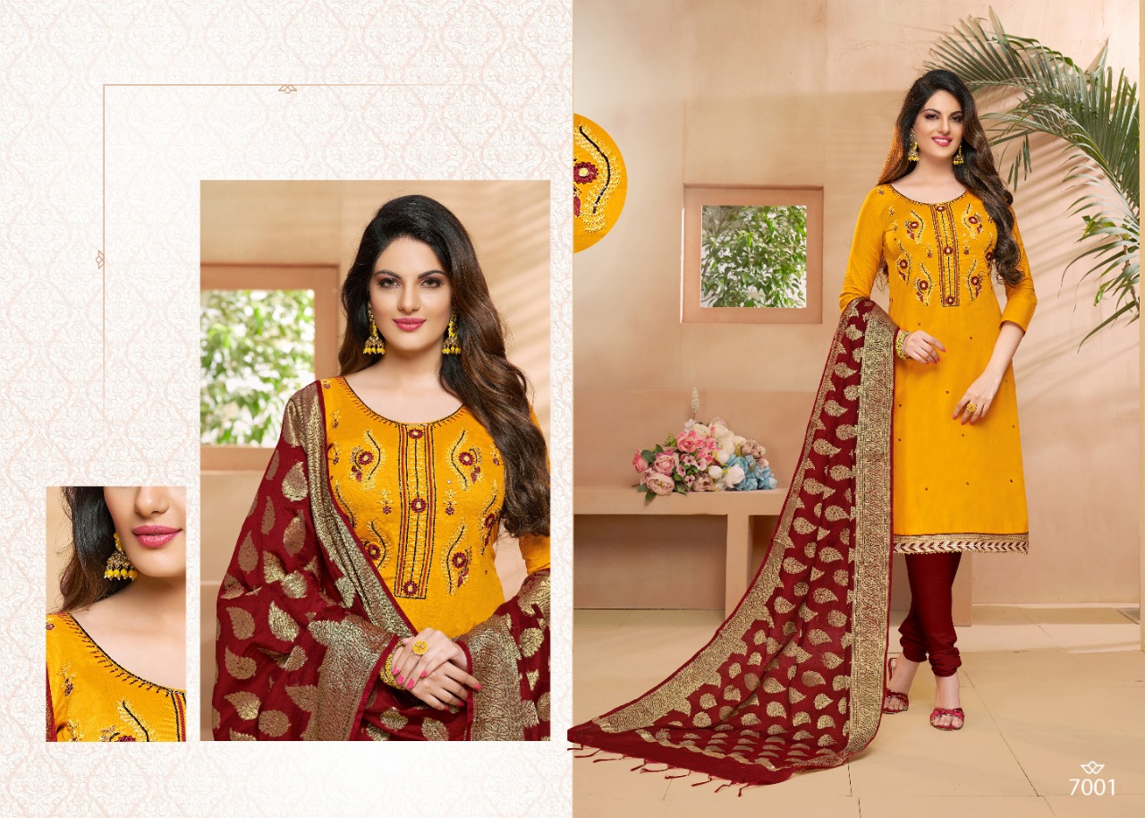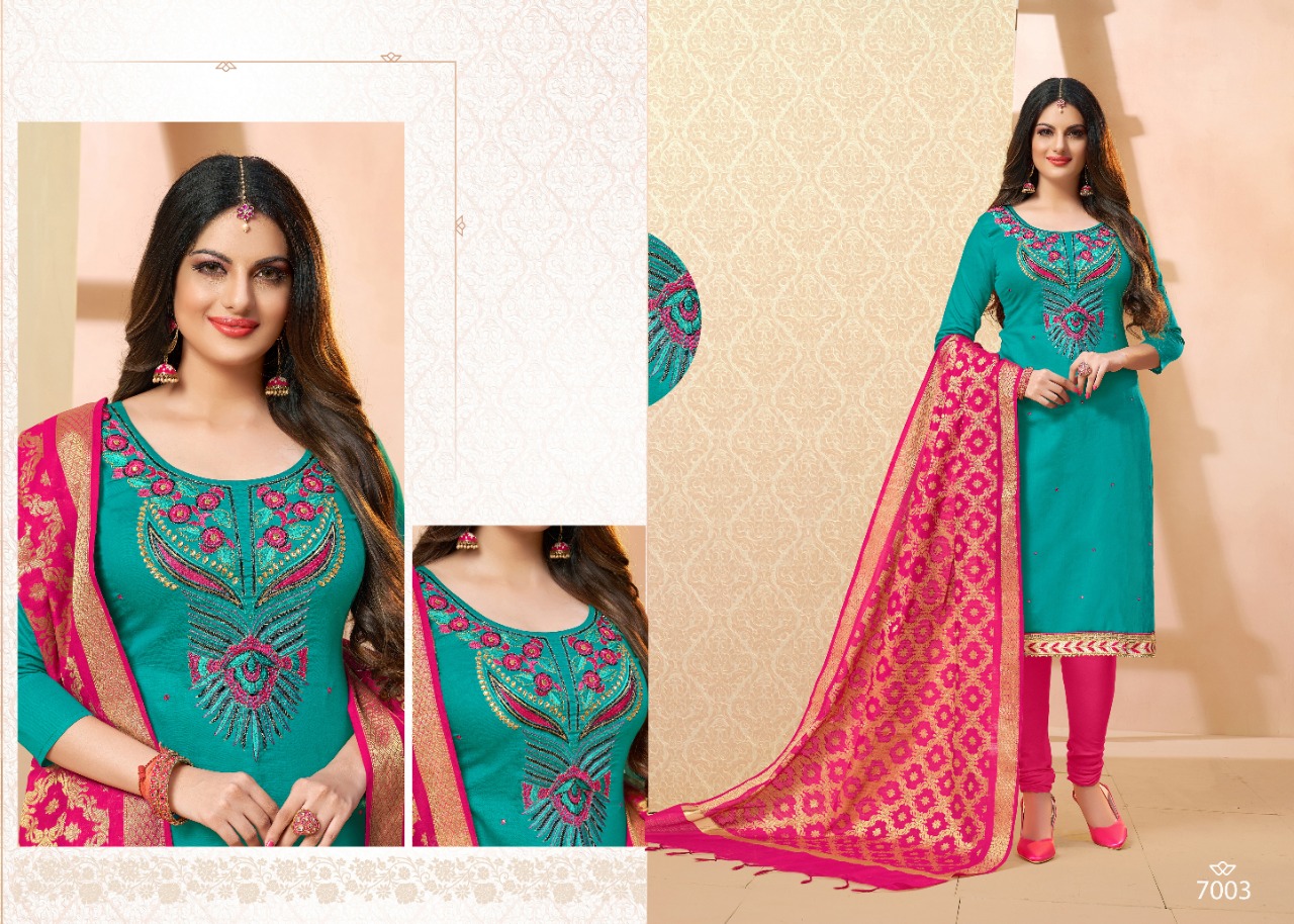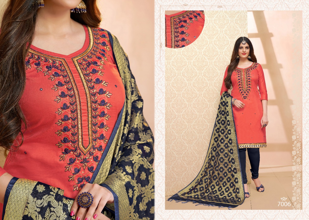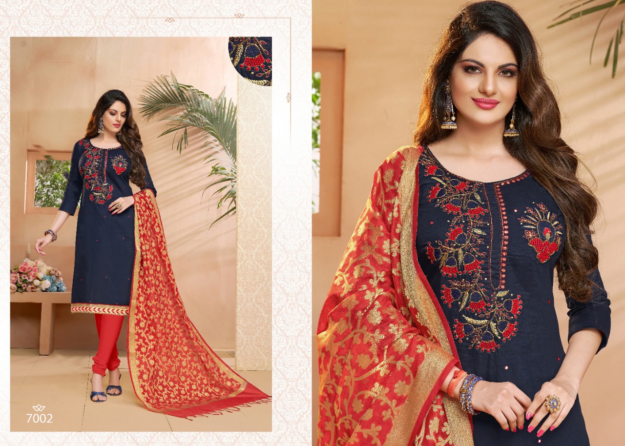 "UTSAV SUITS"_ BRAND CREATED BY YOU It is a brand synonymous with sophistication and style it is for the women of today,who prefers to make a statement whenever she step out. We r now Introducing ..."TAZIN VOL. 7"... KHATLI WORK Fabric Details:- Top :-Glaze Cotton Bot :- Semi loan Dup :-Pure Banarasi Rate :- 7⃣3⃣5⃣ DESIGN:-. 6⃣ Have a look to this awesome catalogue & book your orders... |