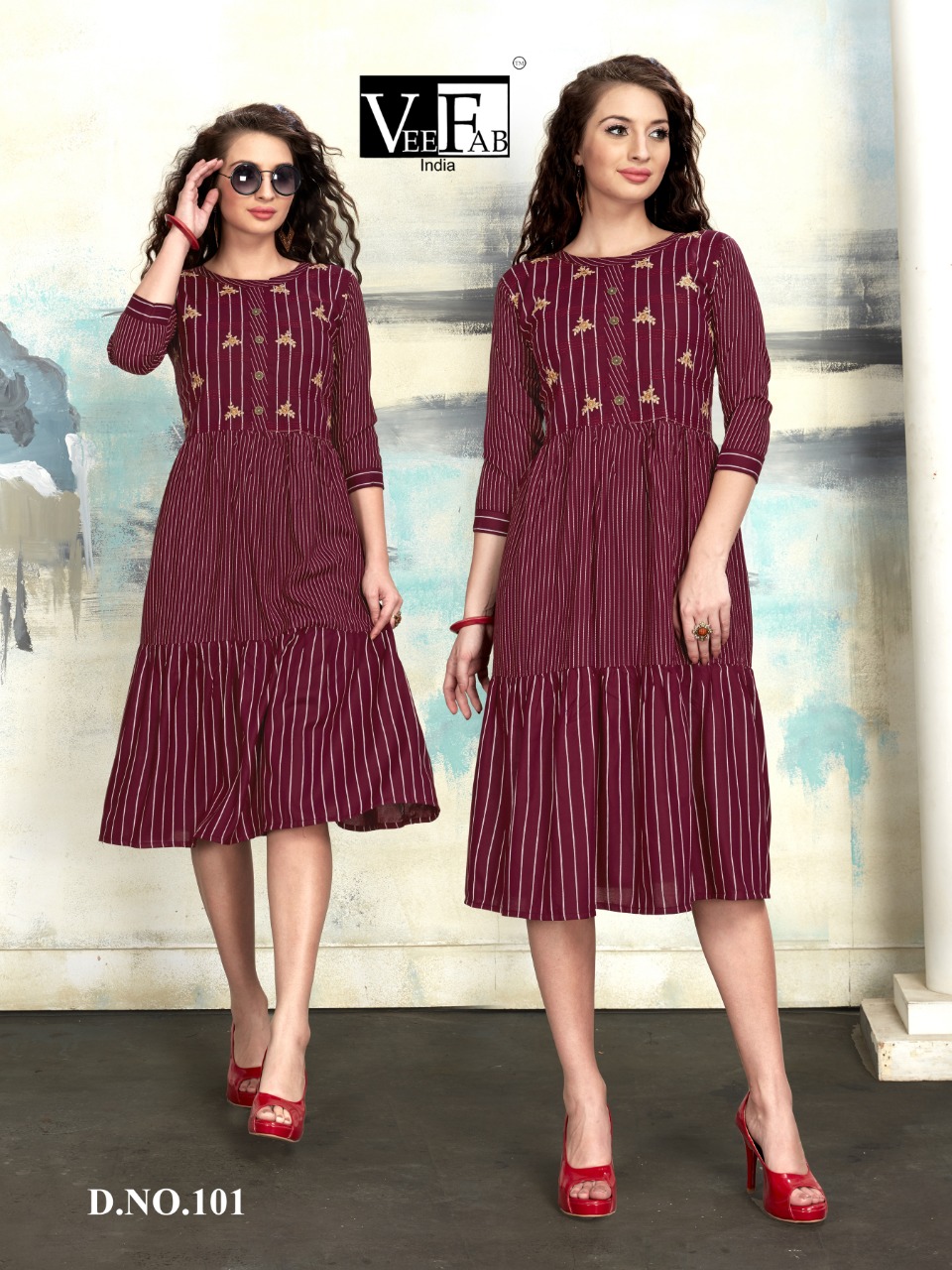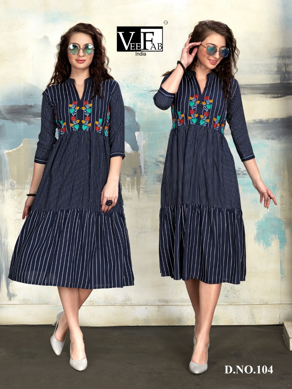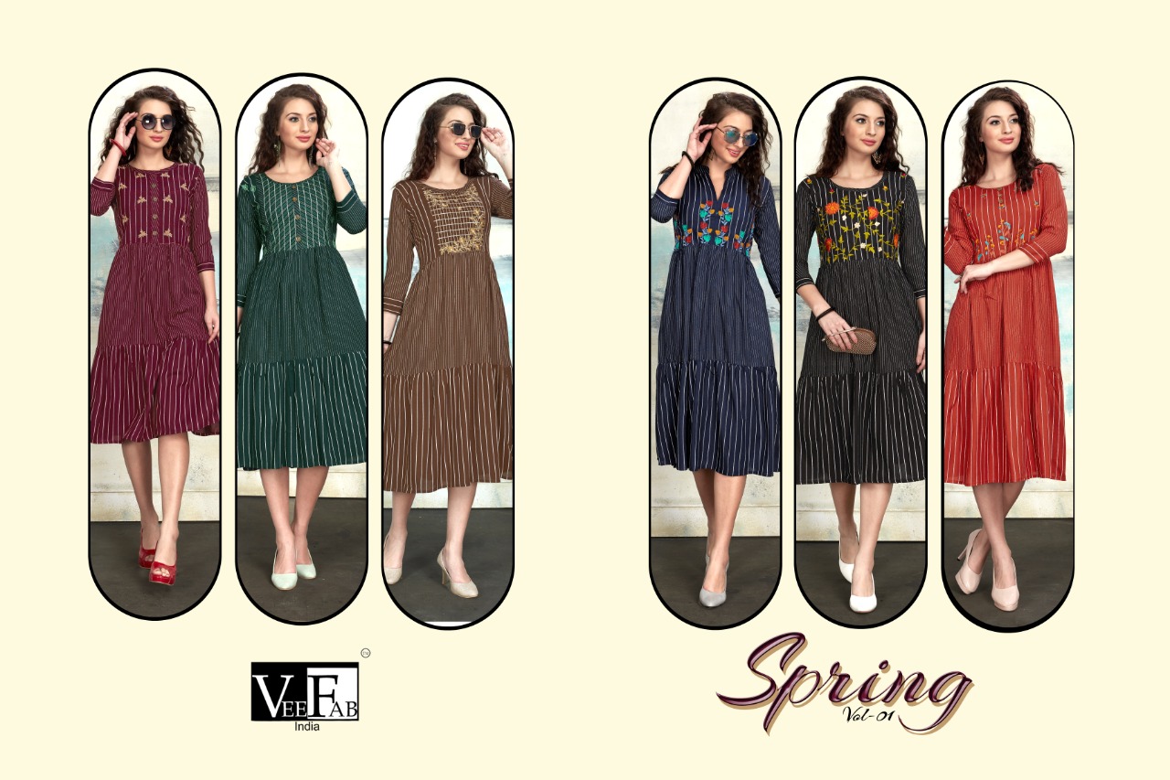 V Fab Present Spring Rayon Embroidery Fancy Kurti Wholesaler