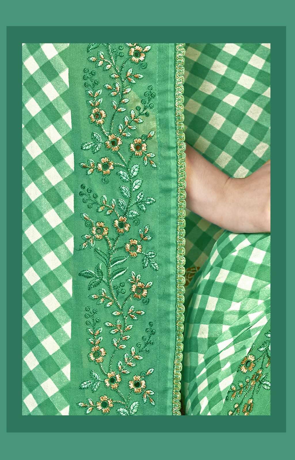 V PLUS BRAND CATALOG :CHANDMUKHI-03 SET : 4 PCS FABRIC : GEORGETTE WITH HEAVY EMBROIDERY WORK ON BORDER RATE : 990 per pcs GST EXTRA Set to set |