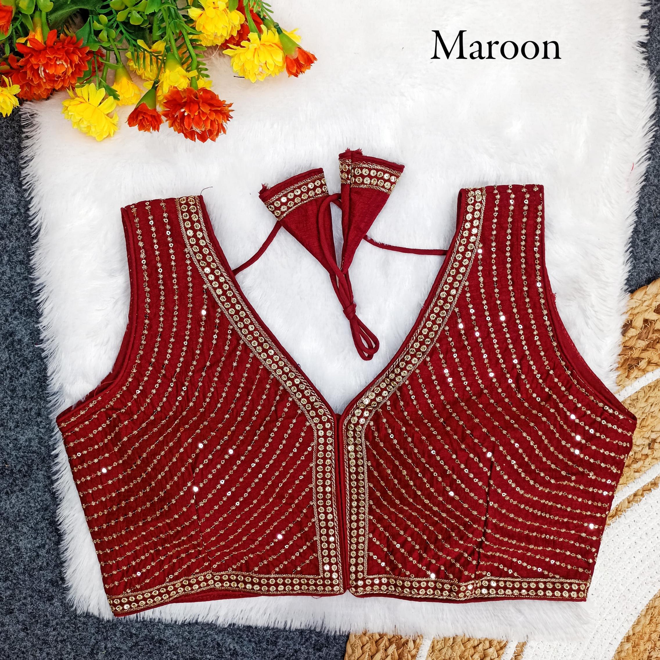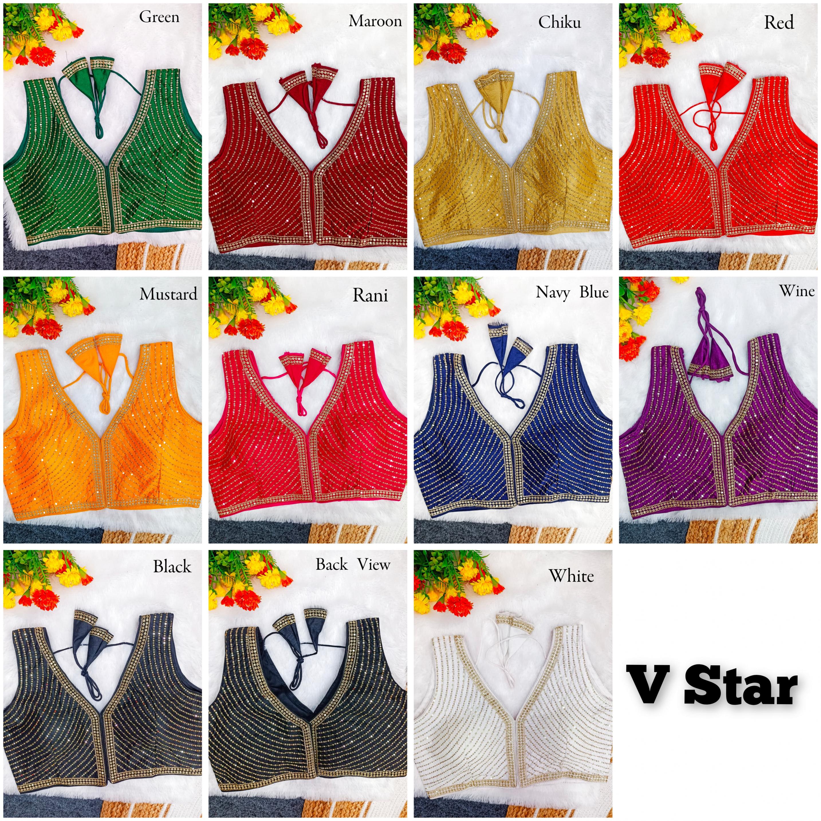 ➡️ EXCLUSIVE PARTYWEAR JARI WITH SEQUENCE EMBROIDERED FANCY FARMA BLOUSE ➡️Design- V-STAR ➡️Fabric- VICHITRA SILK ➡️Inner- Heavy Indo Cotton ➡️Work- Exclusive Jari With Sequence Embroidery Work ➡️Pattern- V NEACK ➡️Quality- A1 ➡️Padded- Yes ➡️Size- Free Size 38 Ready ➡️Length- 14-15 Inch ➡️Open Type- Back Hook ➡️Sleev- Short Sleeves Fabric Inside ➡️Colour:- (10 Colours Available) 🖤💛🧡❤️🩷️💙💜🤍🤎 ➡️Price- 280/*- ➡️SHIPPING EXTRA ➡️ BOOK FAST READY STOCK |