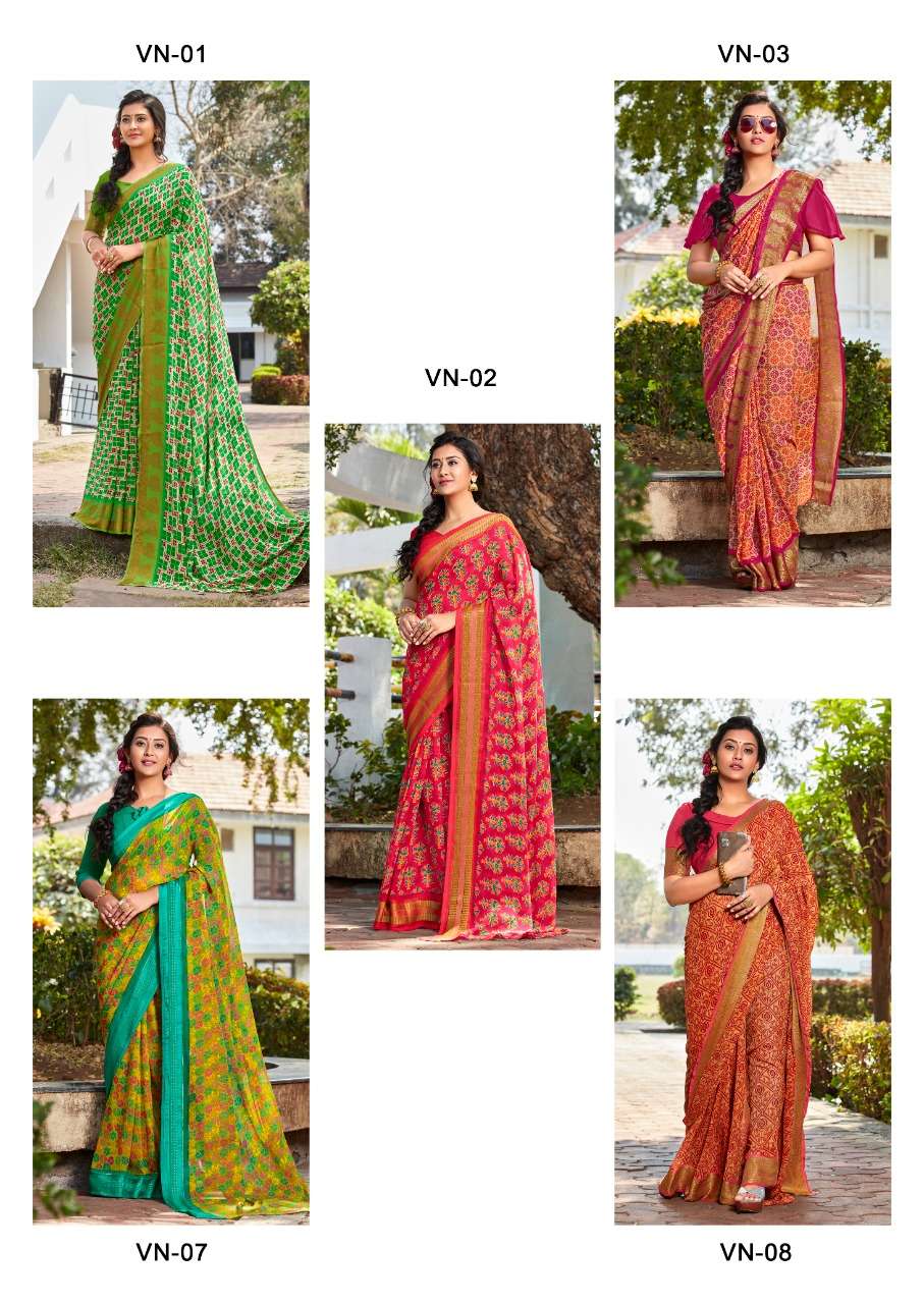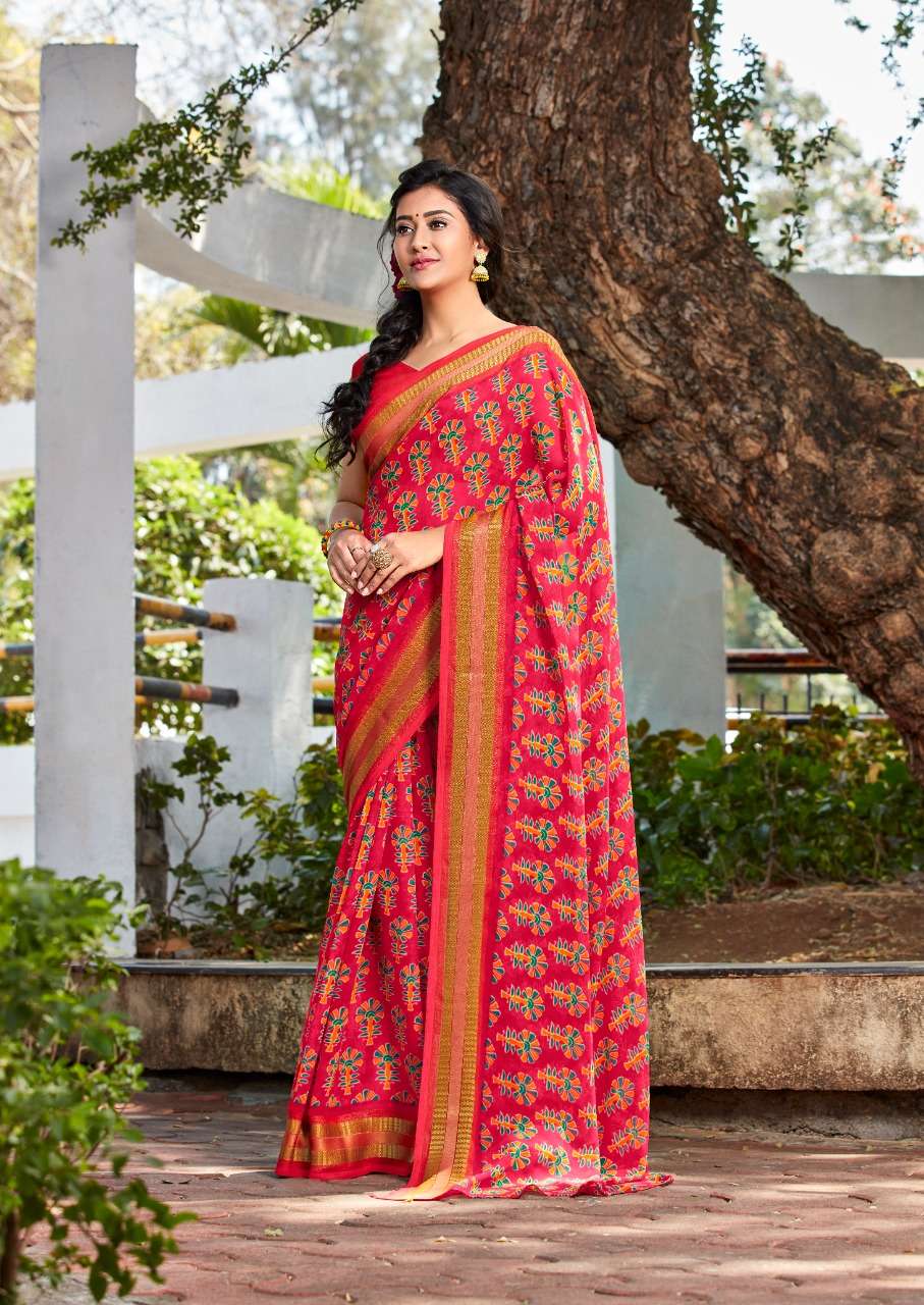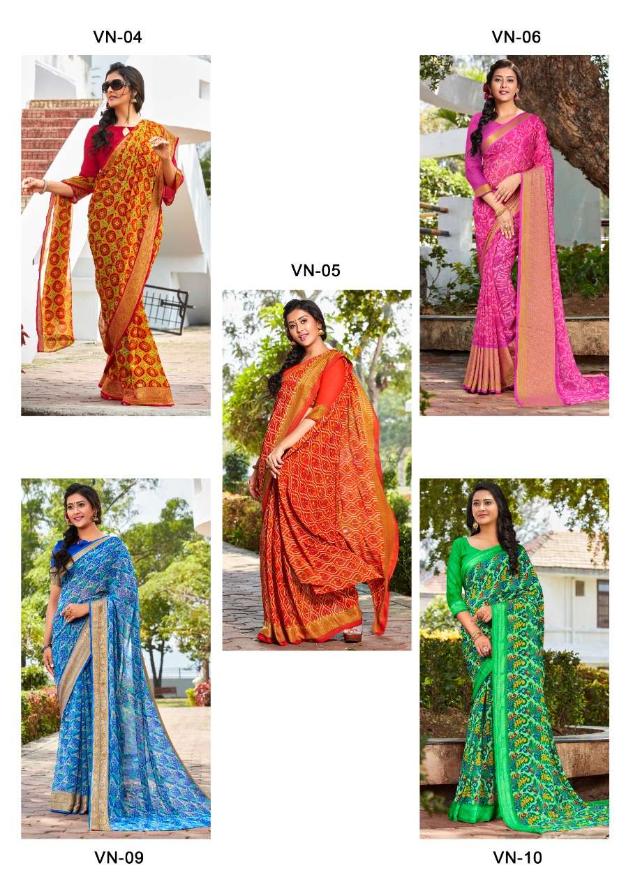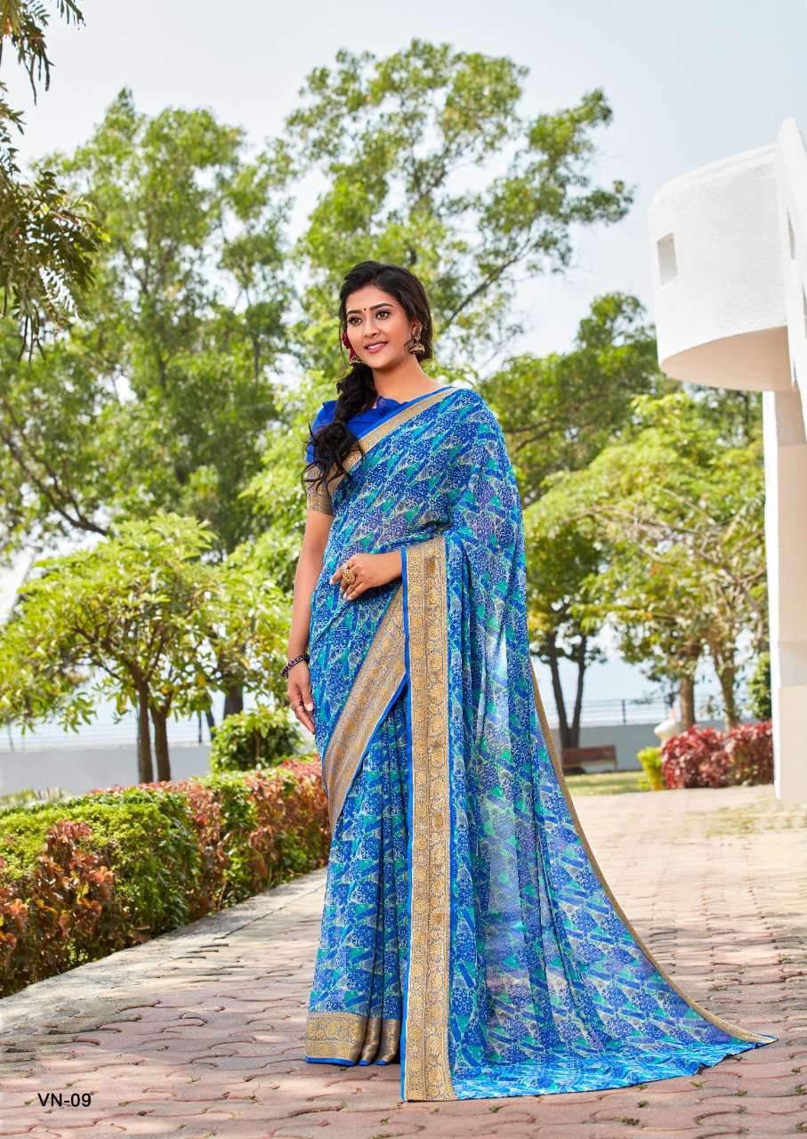 STAVAN Launching VAANI Wiscoss Georgett With Weaving Border Total - 10 Designs Rate - 735 Delivery 3-4 Days |