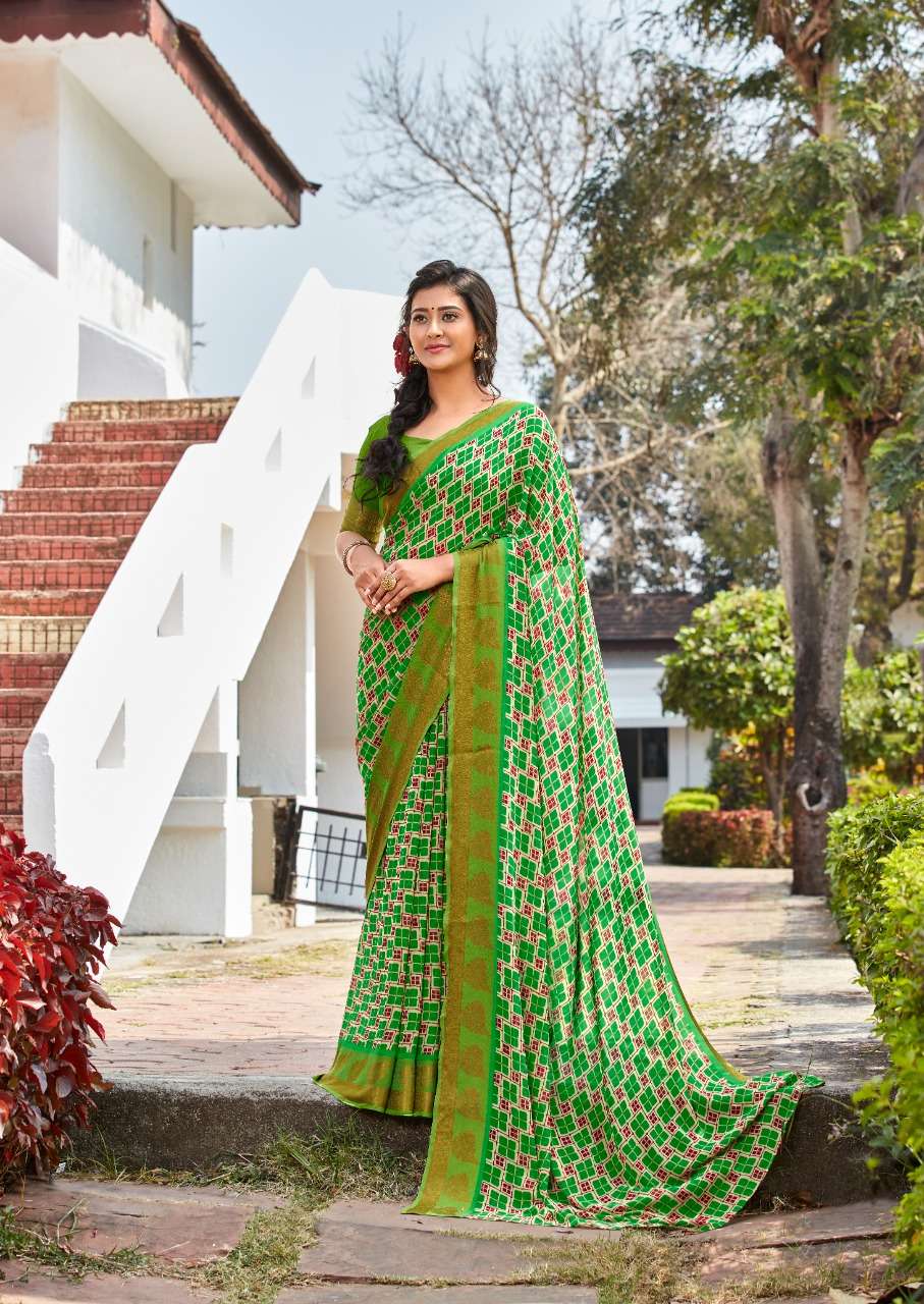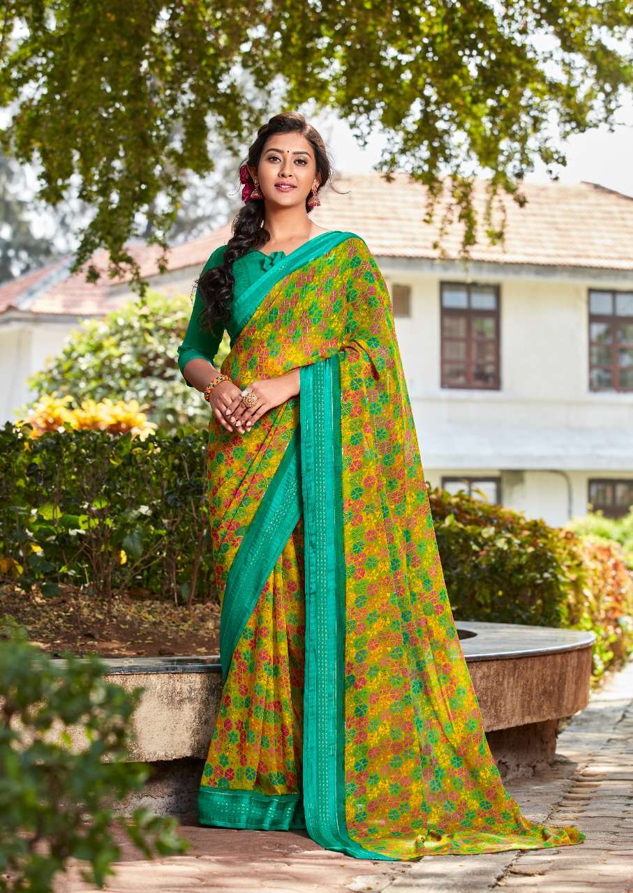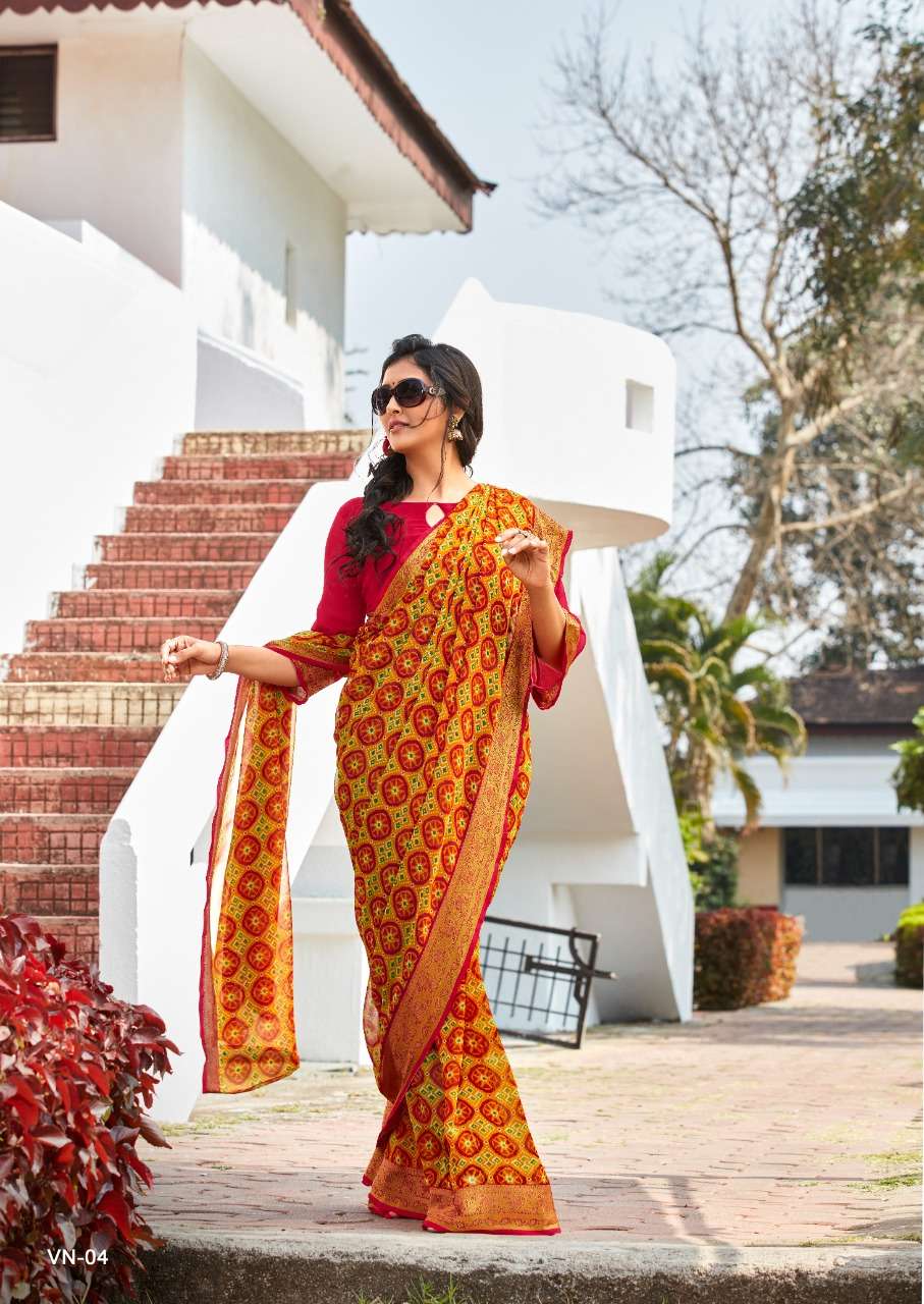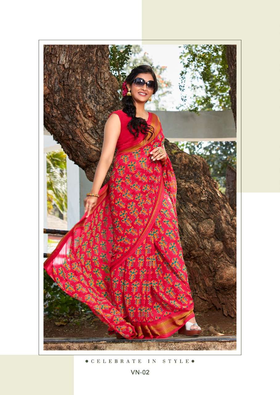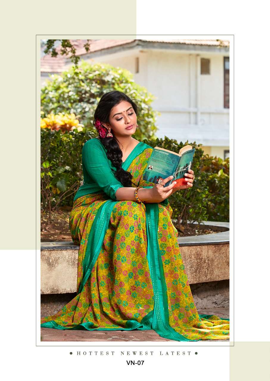 STAVAN Launching VAANI Wiscoss Georgett With Weaving Border Total - 10 Designs Rate - 735 Delivery 3-4 Days |