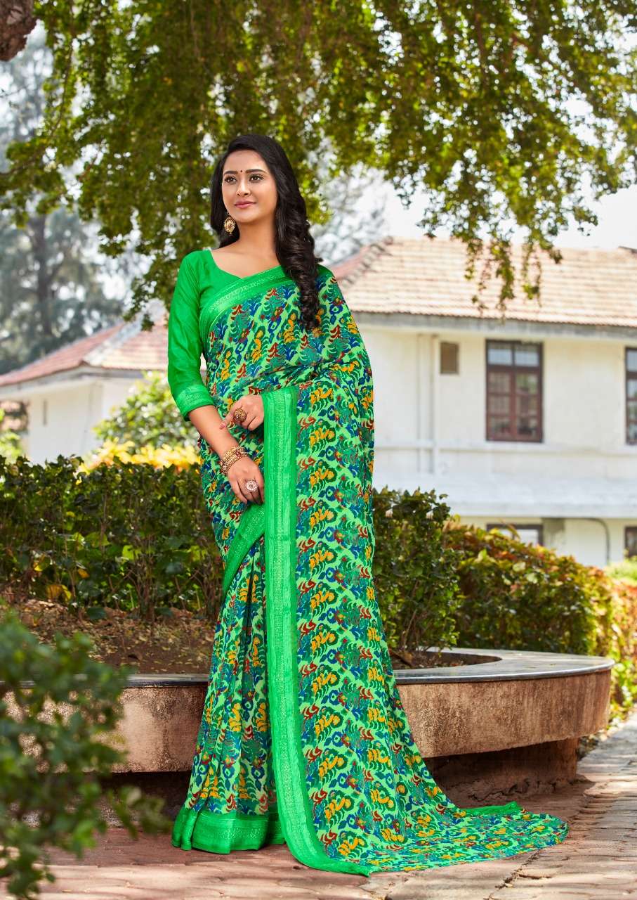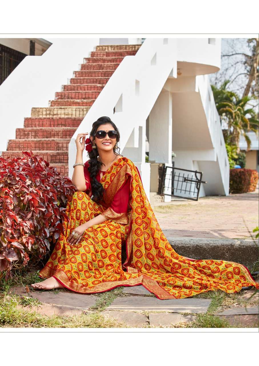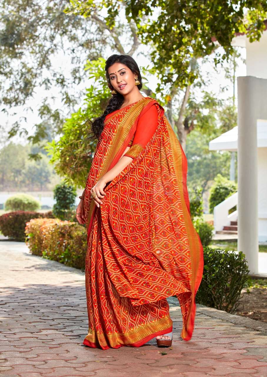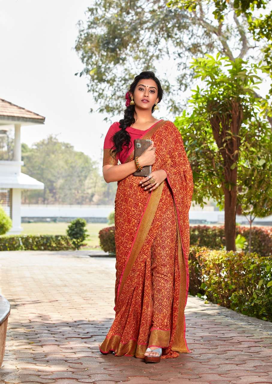STAVAN Launching VAANI Wiscoss Georgett With Weaving Border Total - 10 Designs Rate - 735 Delivery 3-4 Days |