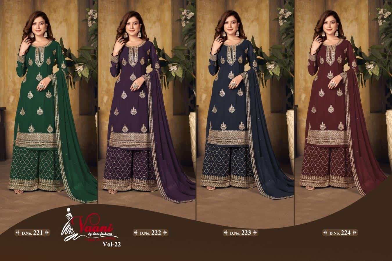 Dear sir, 🌹New Arrival Vaani Vol-22🌹 👗Top. – Faux Georgette 👖 Palazzo :- Faux Georgette 🏴Inner :- Santool 🇫🇲 Dupatta – Faux Georgette Price :- 1545 /- Rs NOTE:- This Product Can Stich Up To 48 (4XL) Gst 12% extra |