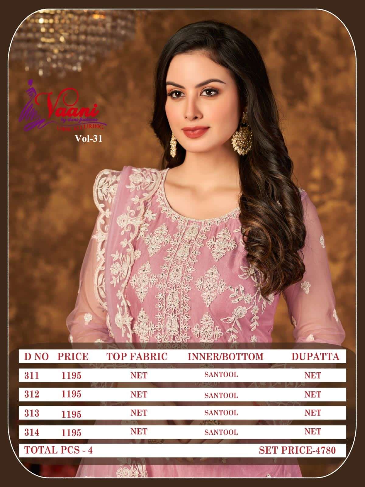 vaani vol 31 by dani creation net coding work plazzo style suits collection