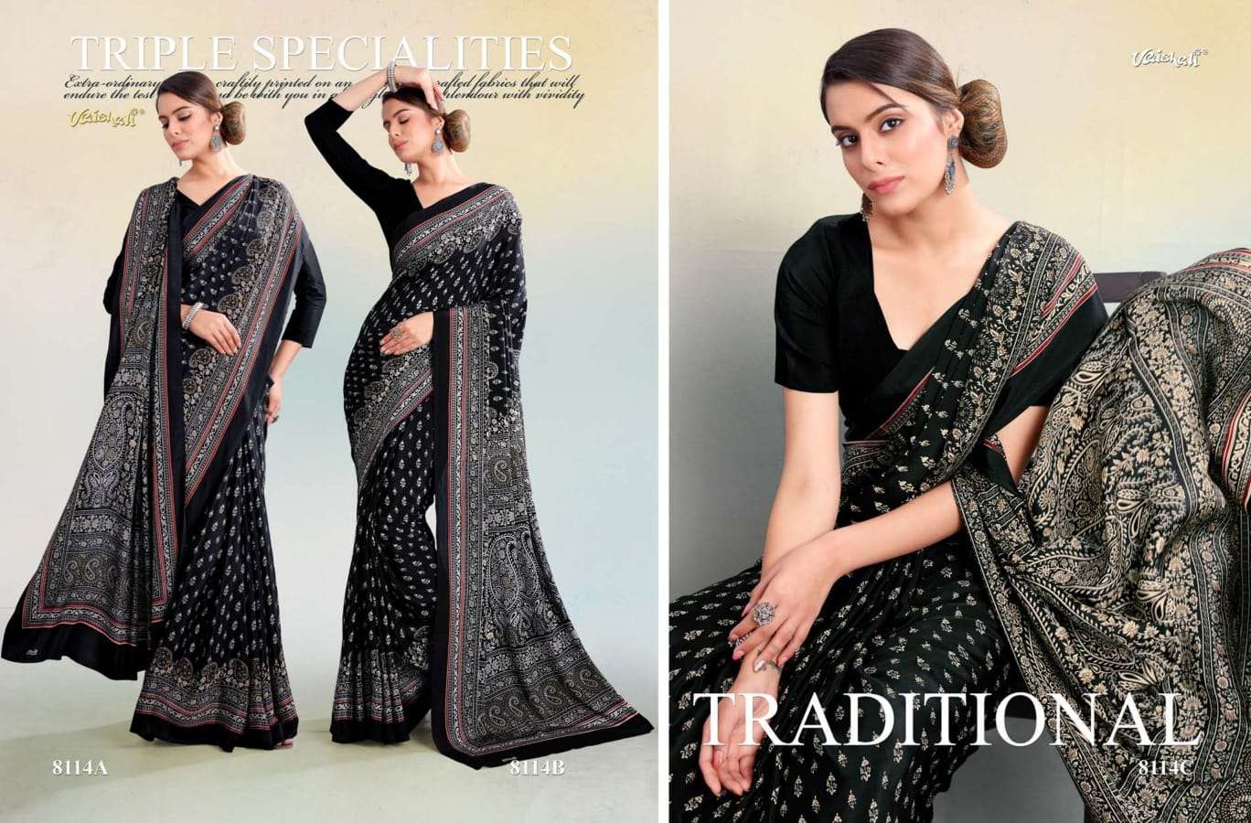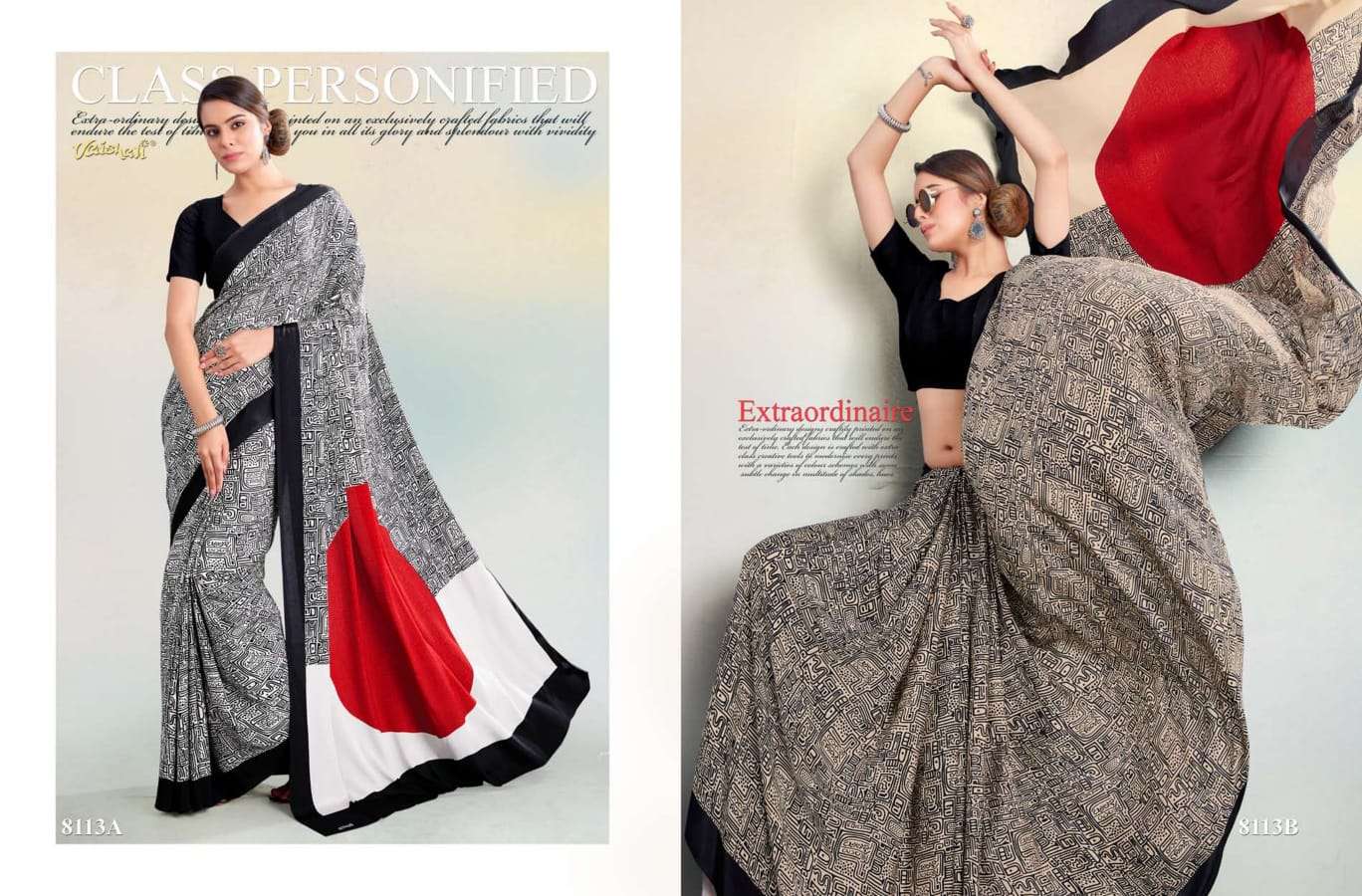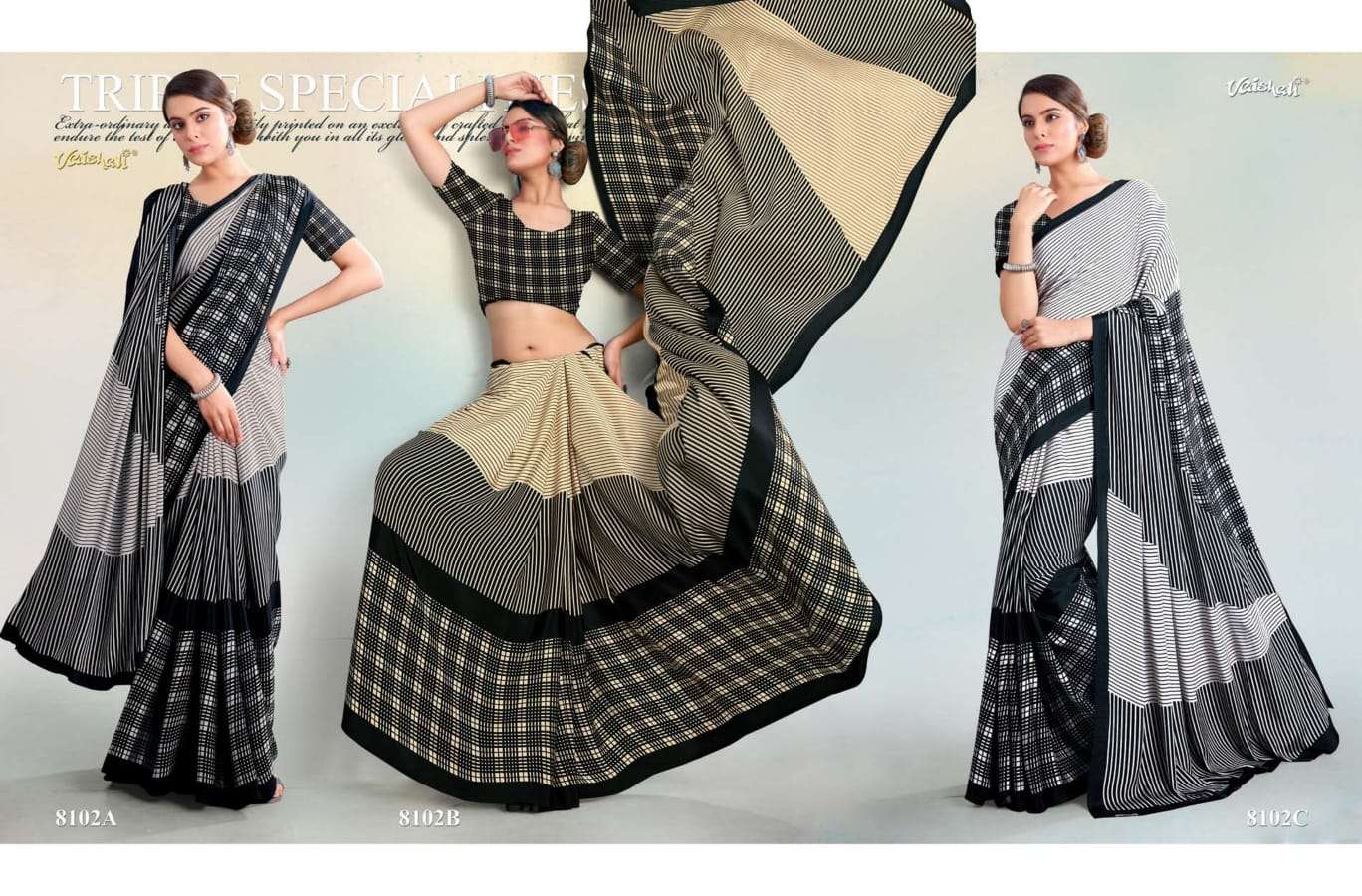 VAISHALI FASHION FABRICS (CRAPE SILK) FLORENCE BLACK AND WHITE CATALOGUE LONCH 👇 |