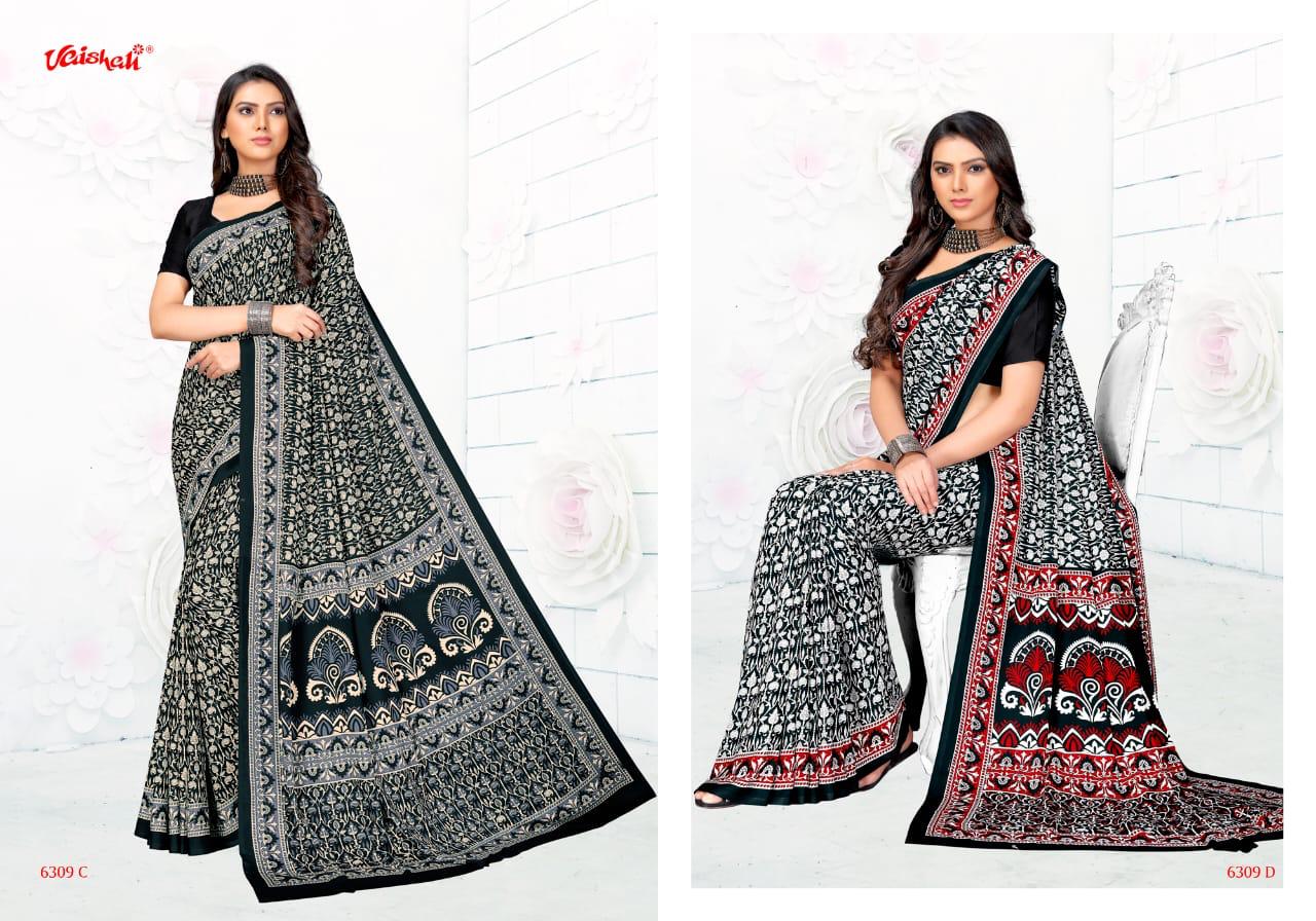 Vaishali Green Channel Vol 9 Black And White Crape Printed Saree