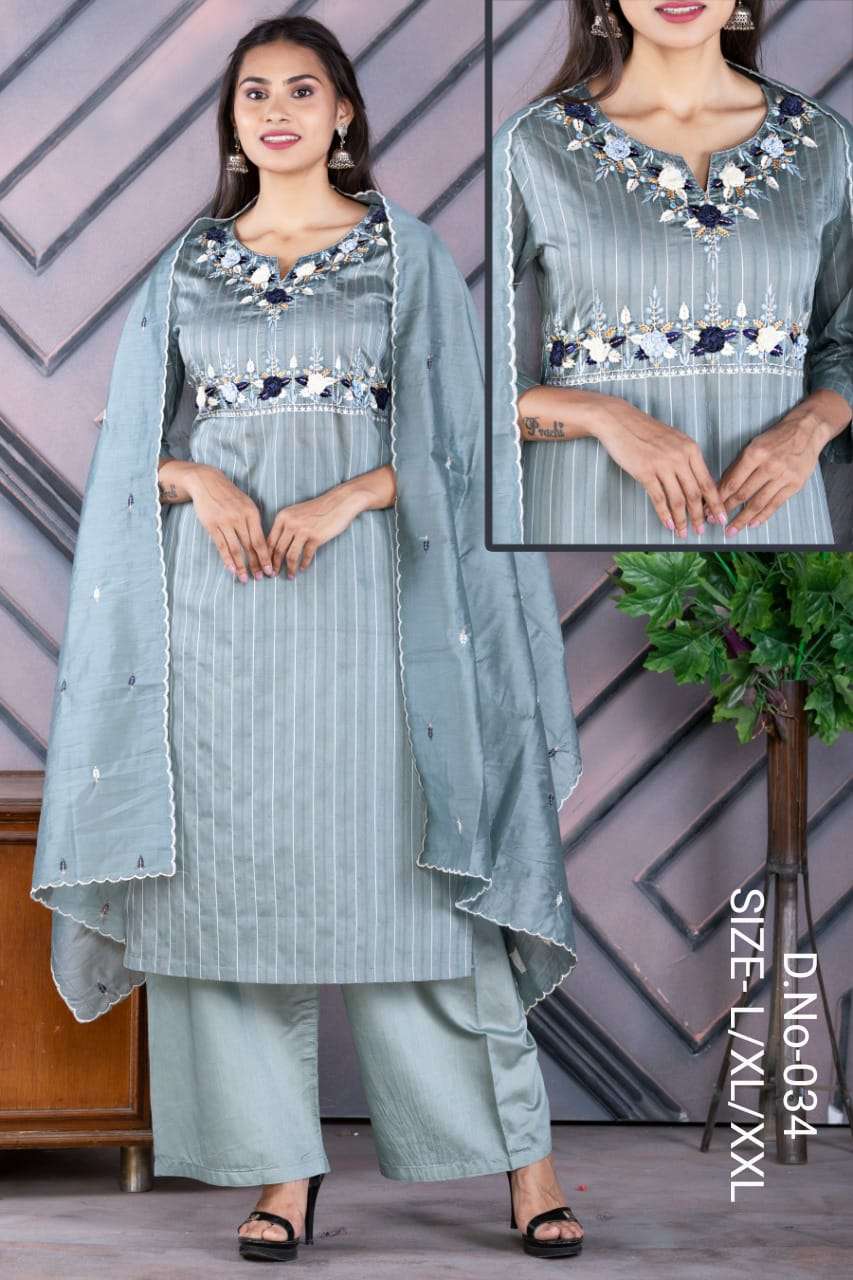 Dear Customer, We are launching our new Designer Sets Dno : 034 Fabrics - Chanderi Resham Dori Kurta with Palazzo & Dupatta Sizes - L, XL, XXL * Set to set (Combo)* Rate 935/- only GST 5Percent Extra. Delivery 3-4 days Book your order now . |