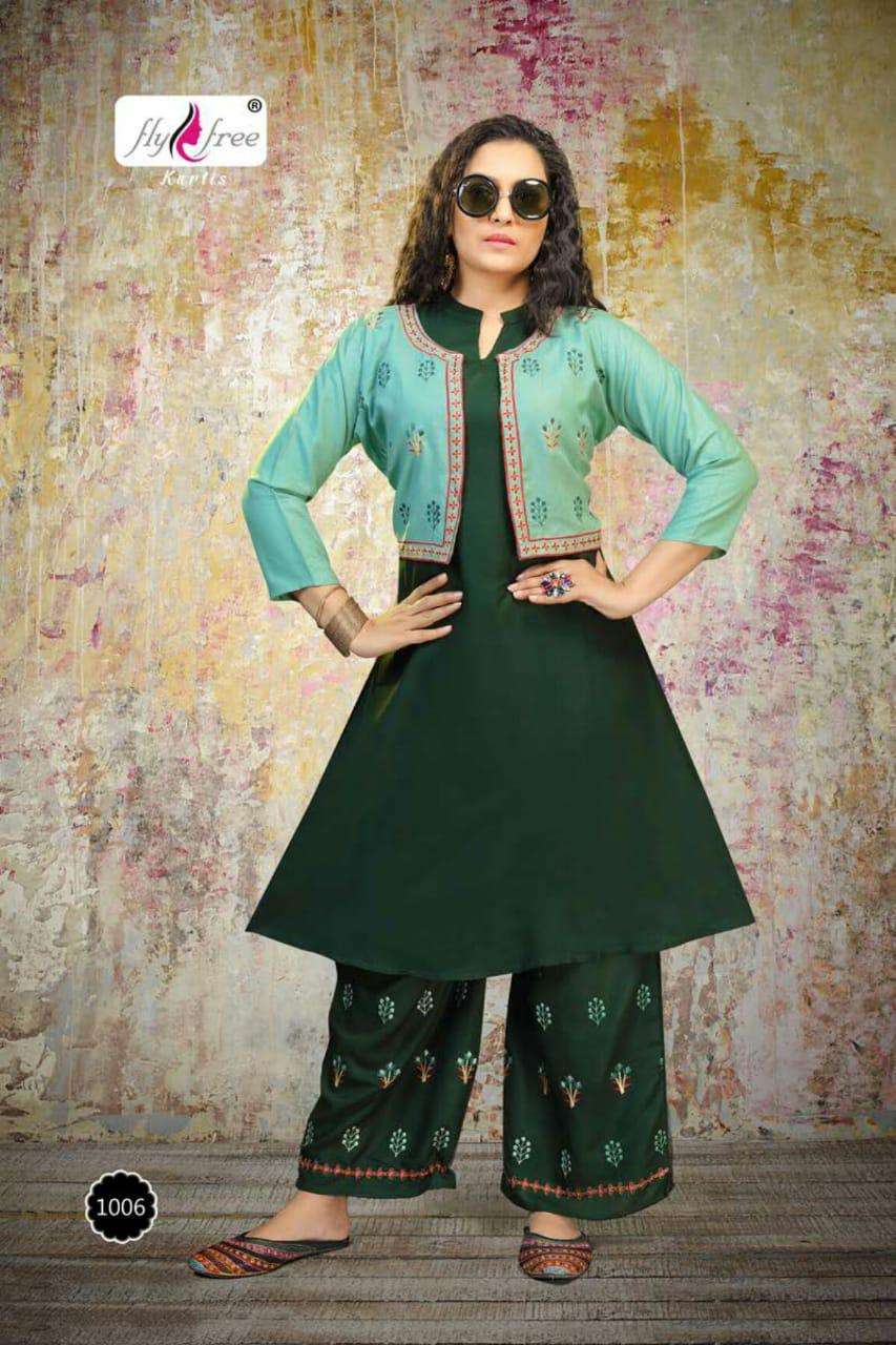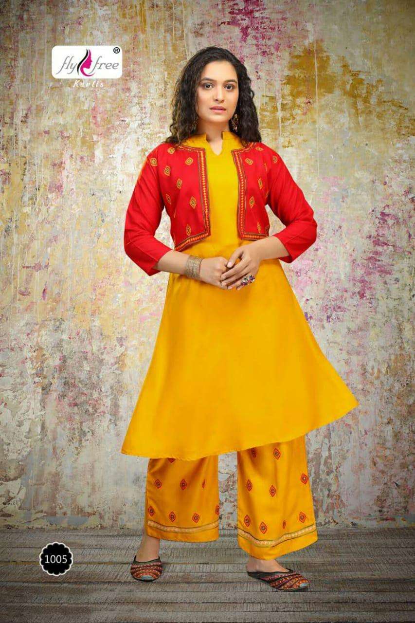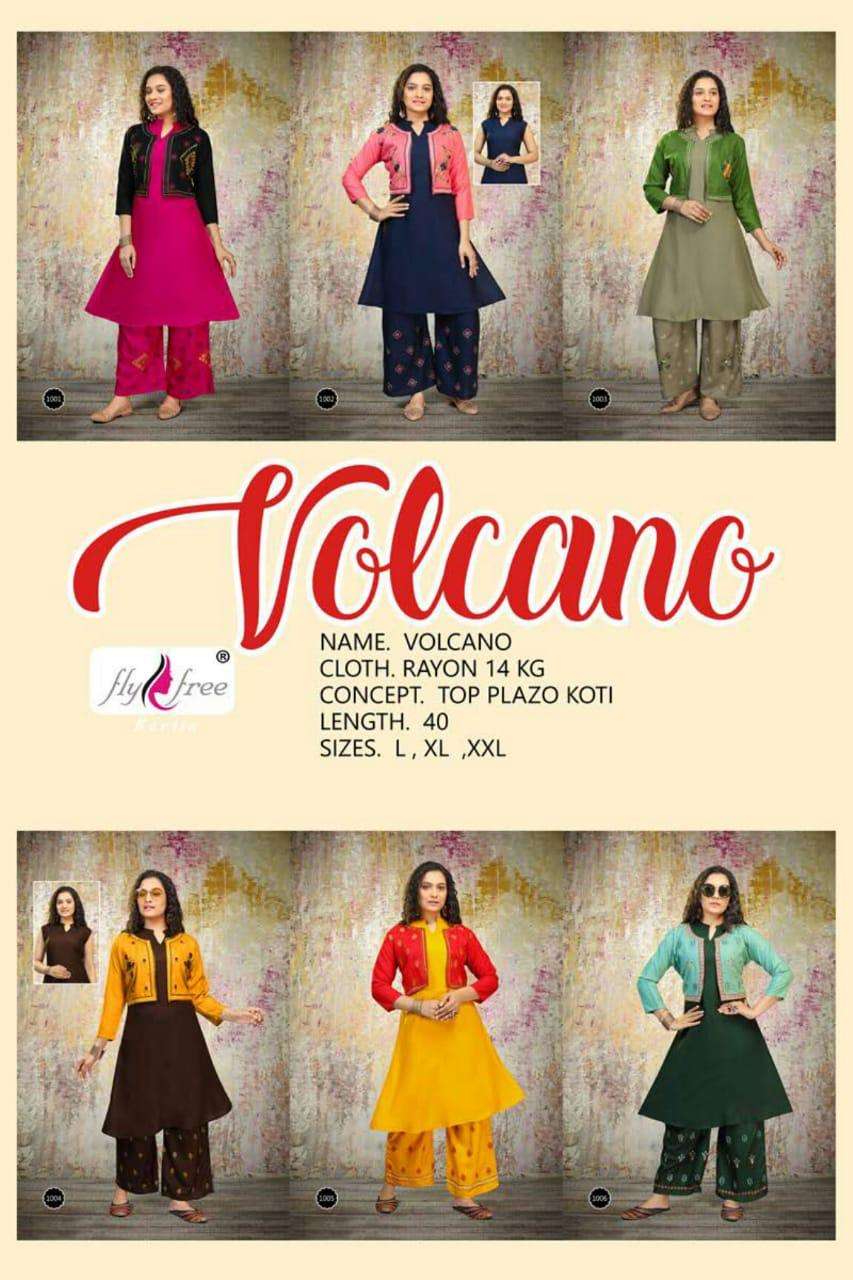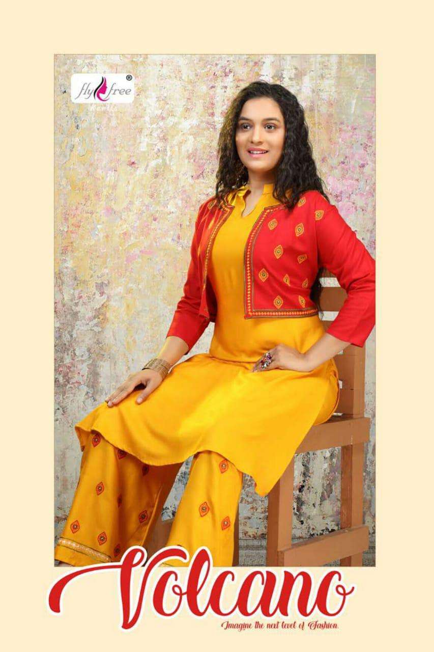 valcano by fly free heavy rayon kurti with jacket with plazo Cataolog Collection Wholesaler Best Rate In Ahmedabad Surat Chennai India Uk Usa Malaysia Singapore Canada Australia