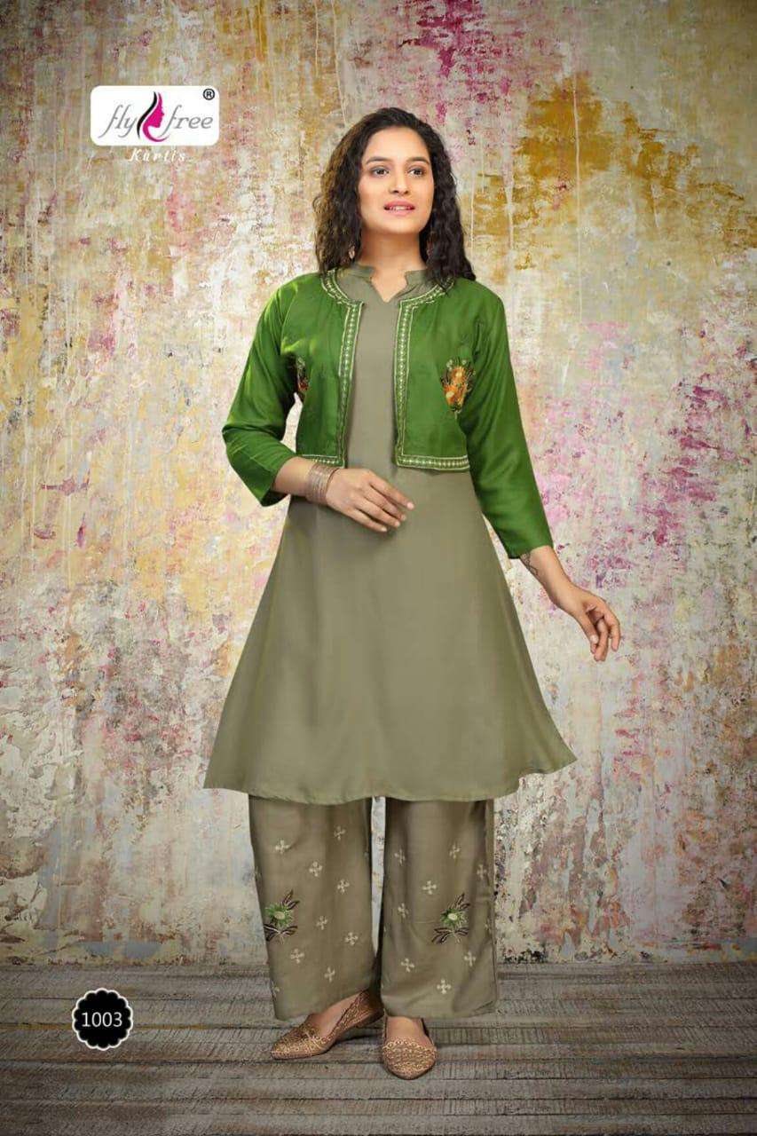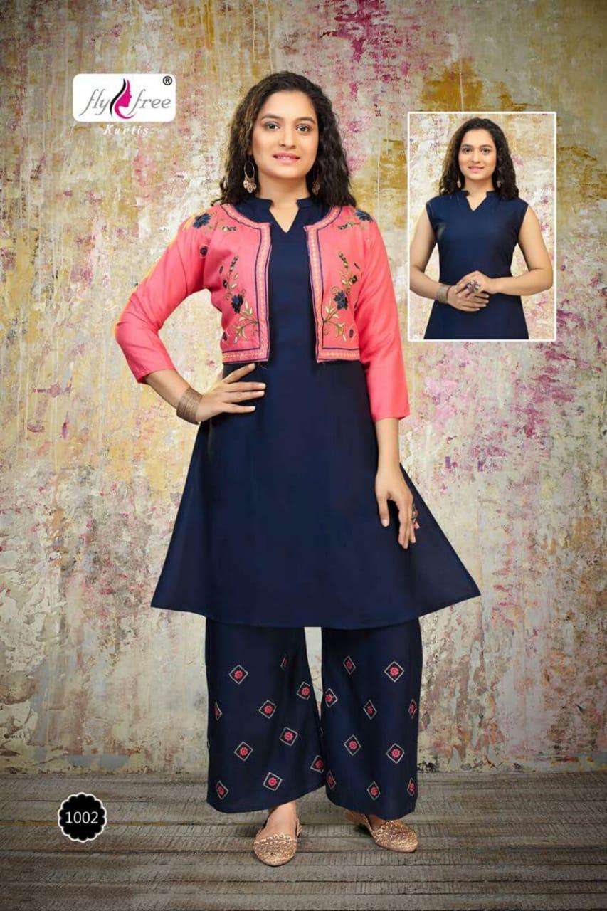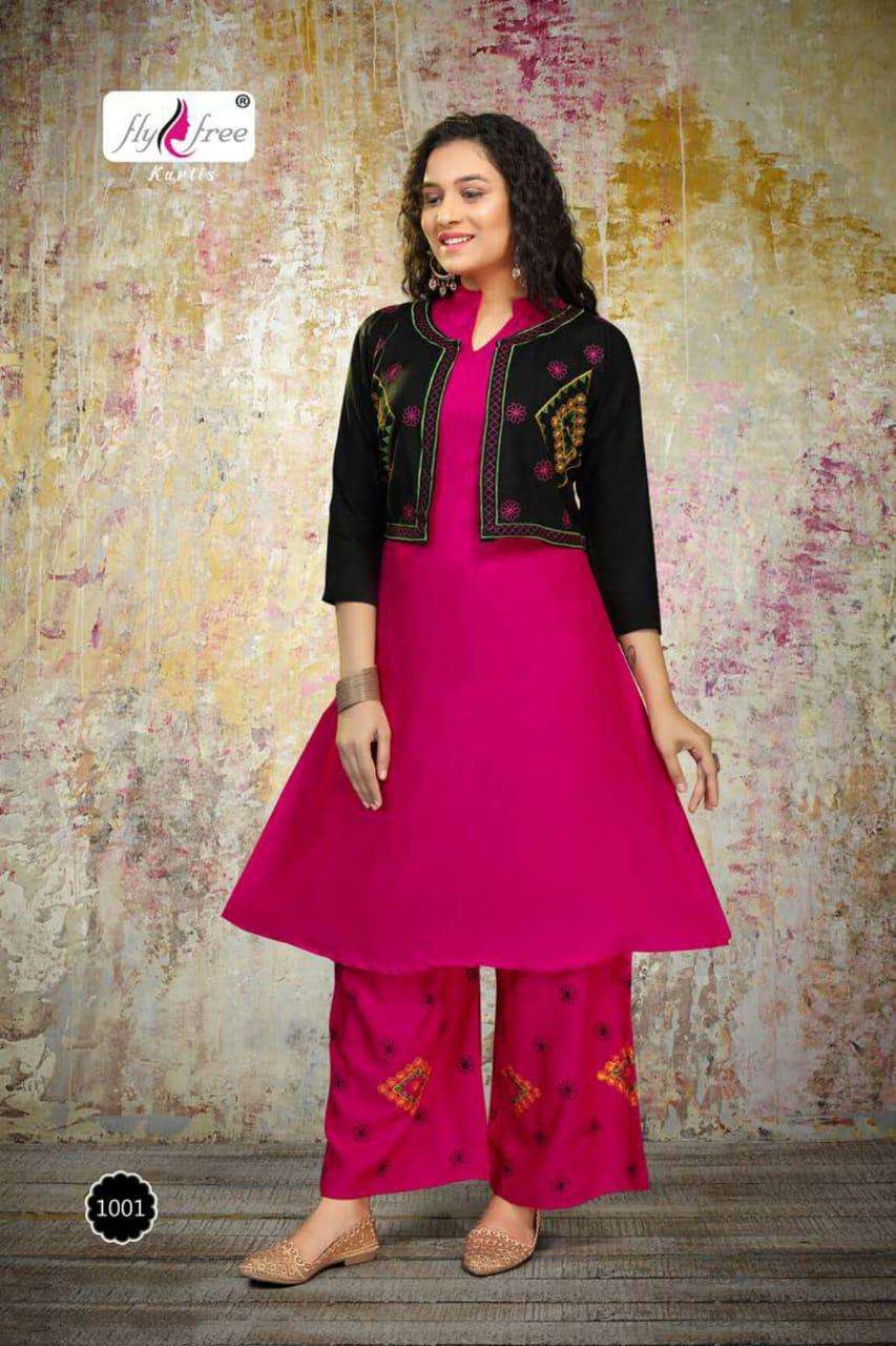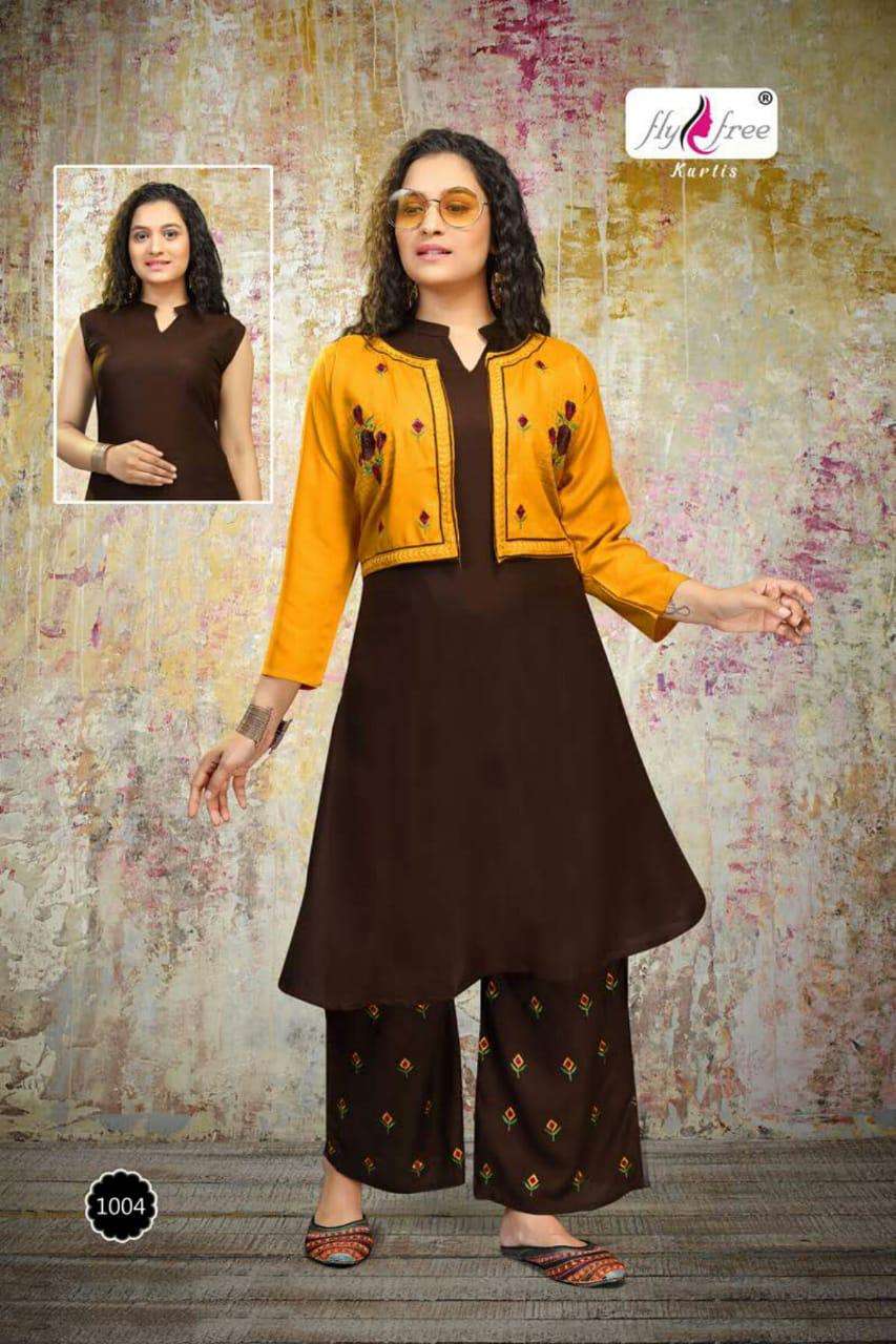 valcano by fly free heavy rayon kurti with jacket with plazo Cataolog Collection Wholesaler Best Rate In Ahmedabad Surat Chennai India Uk Usa Malaysia Singapore Canada Australia