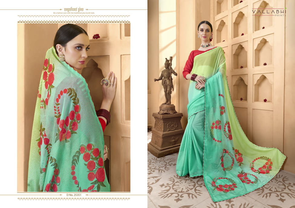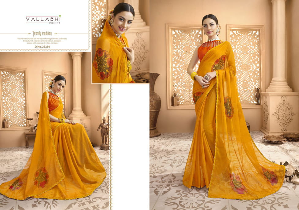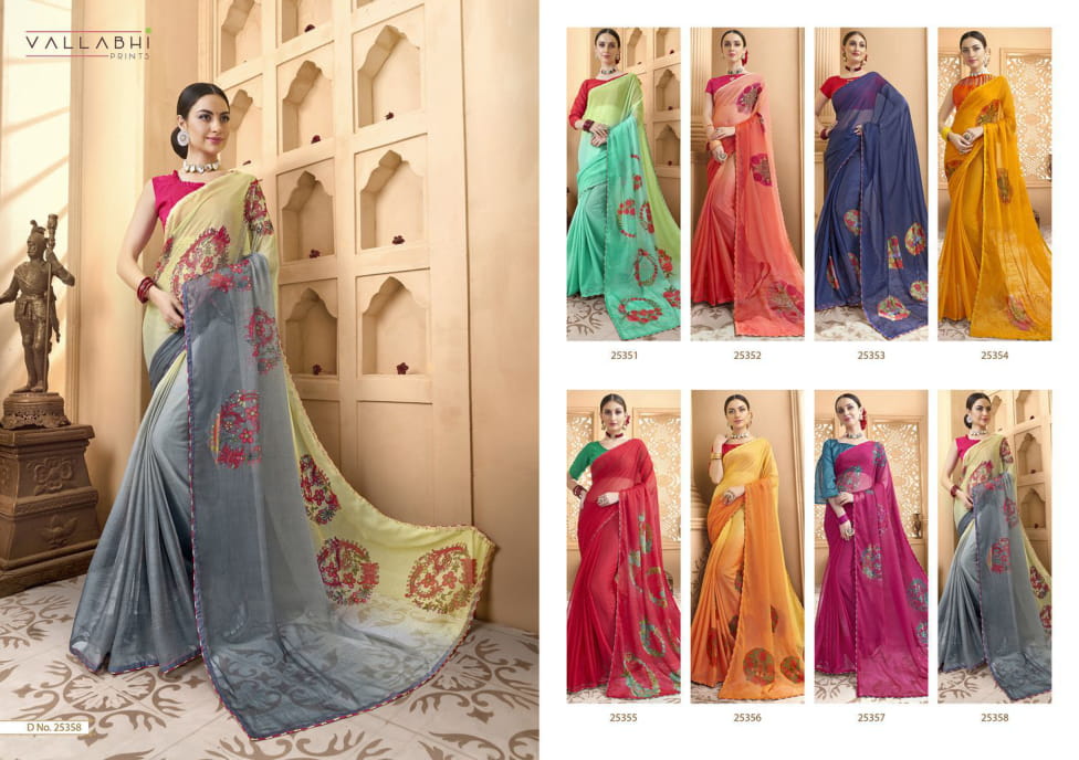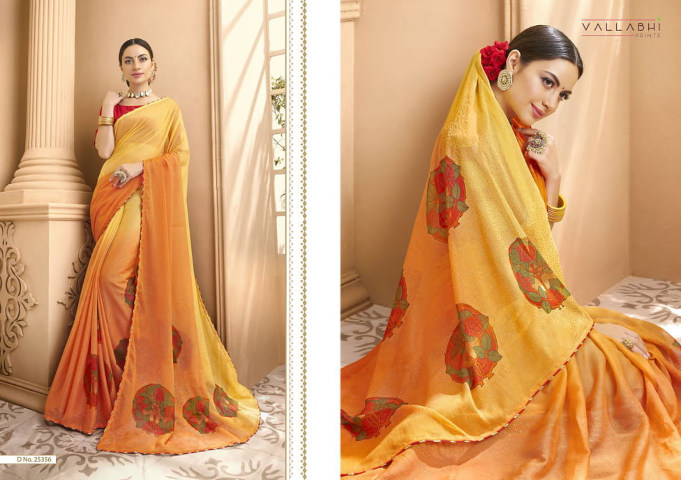 SET TO SET BRAND VALLABHI CATALOG-VARNEY FABRIC-CHIFFON JARI RATE-415/- GST 5 % EXTRA DELIERY-2-3 DAY NO ANY LESS BOOK YOUR ORDER NOW |
