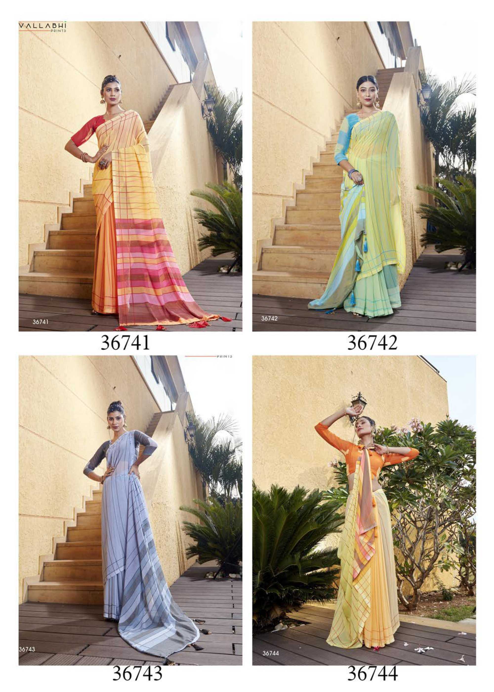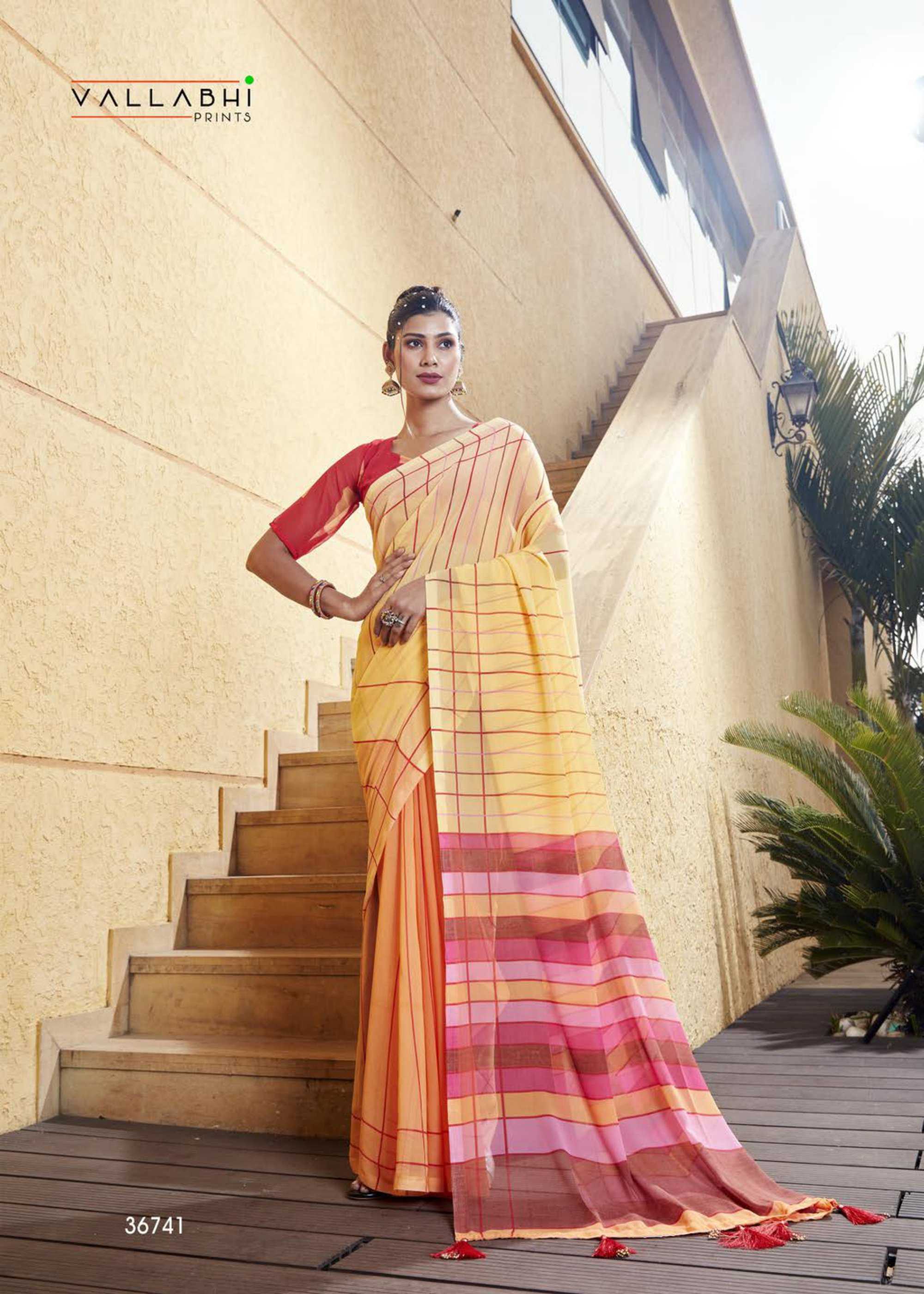 vallabhi print lilly vol 4 36741-36748 series classic look georgette stylish saree exports