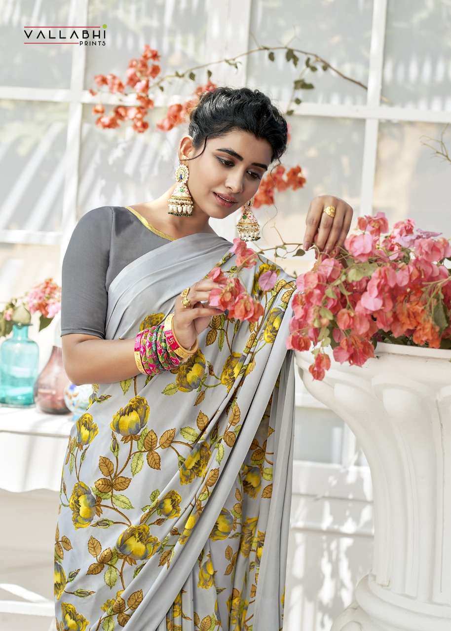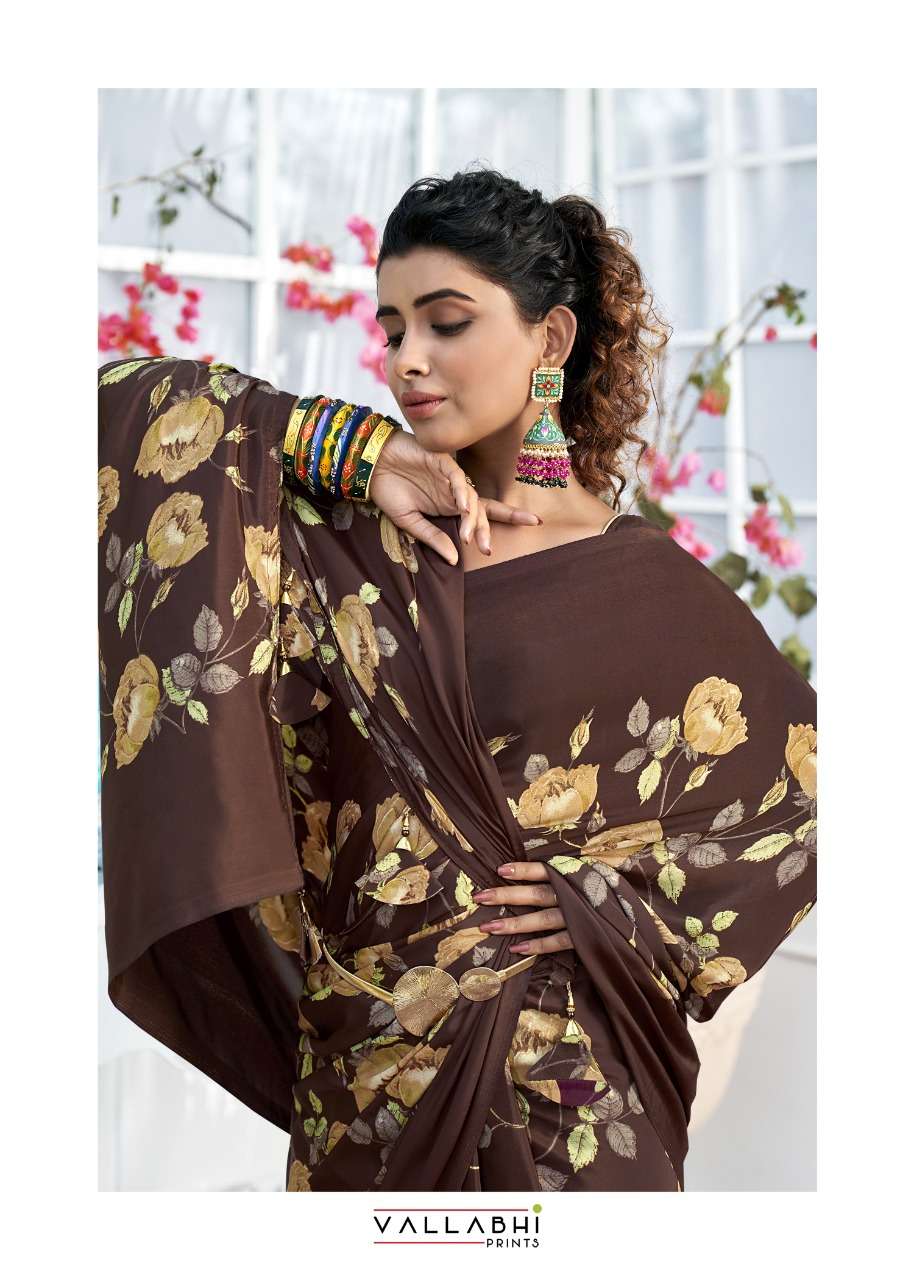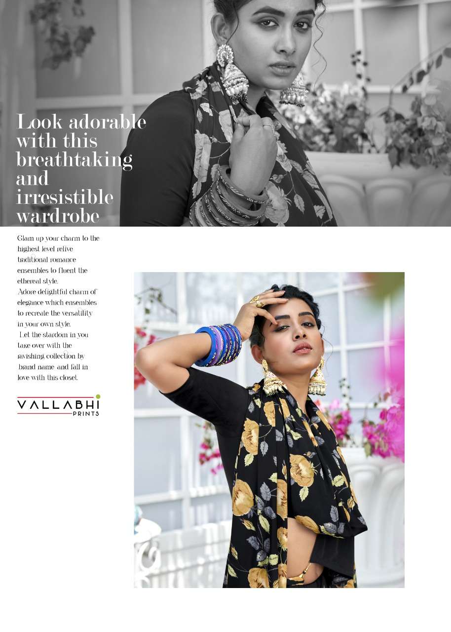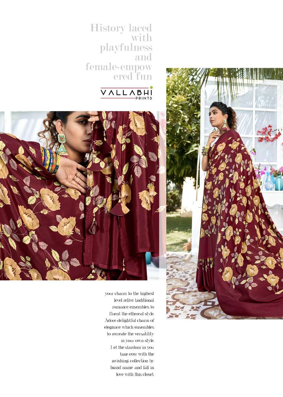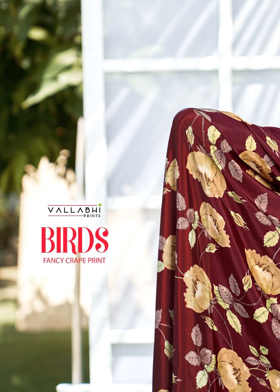 vallabhi prints birds fancy crape print saris wholesaler in surat