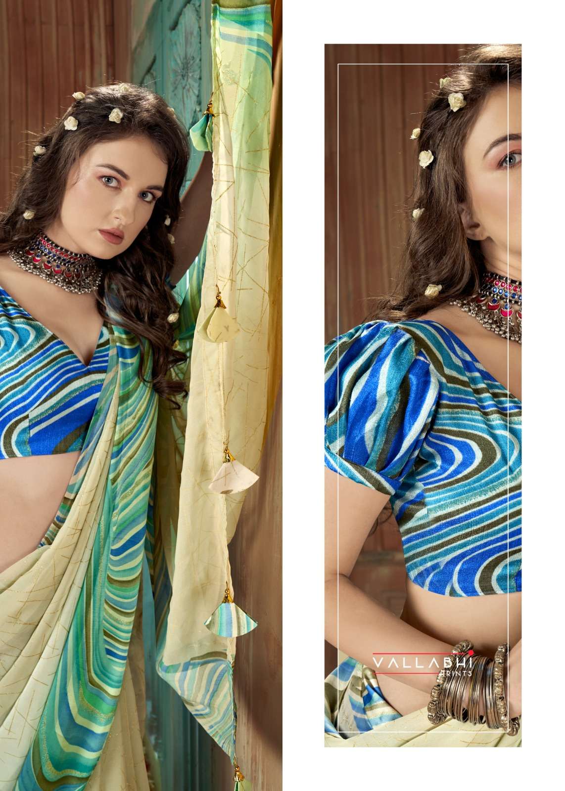 vallabhi prints blue moon vol 2 georgette sartin patta fancy saree collection