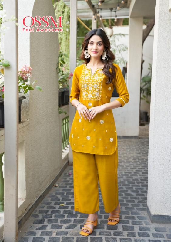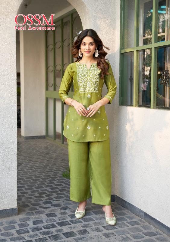 vama vol 2 by ossm embroidery viscose readymade vatican silk co-ord set
