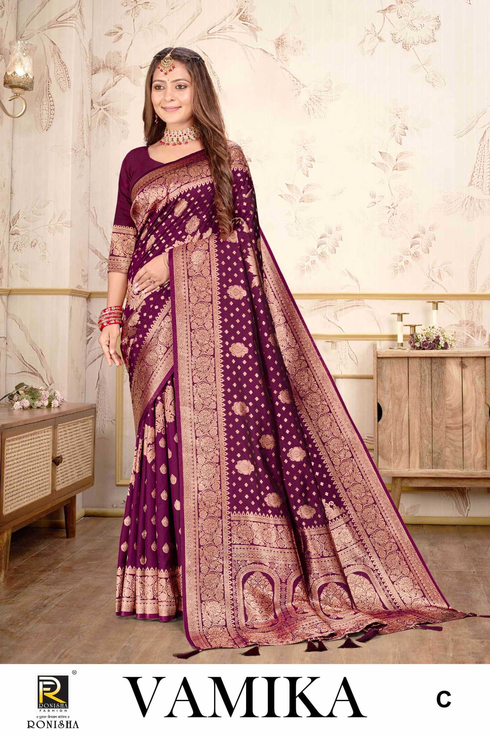 VAMIKA BY RANJNA SAREE BANARASI SILK 50*600 PREMIUM FABRICS SUPER HIT COLLECTION SAREES