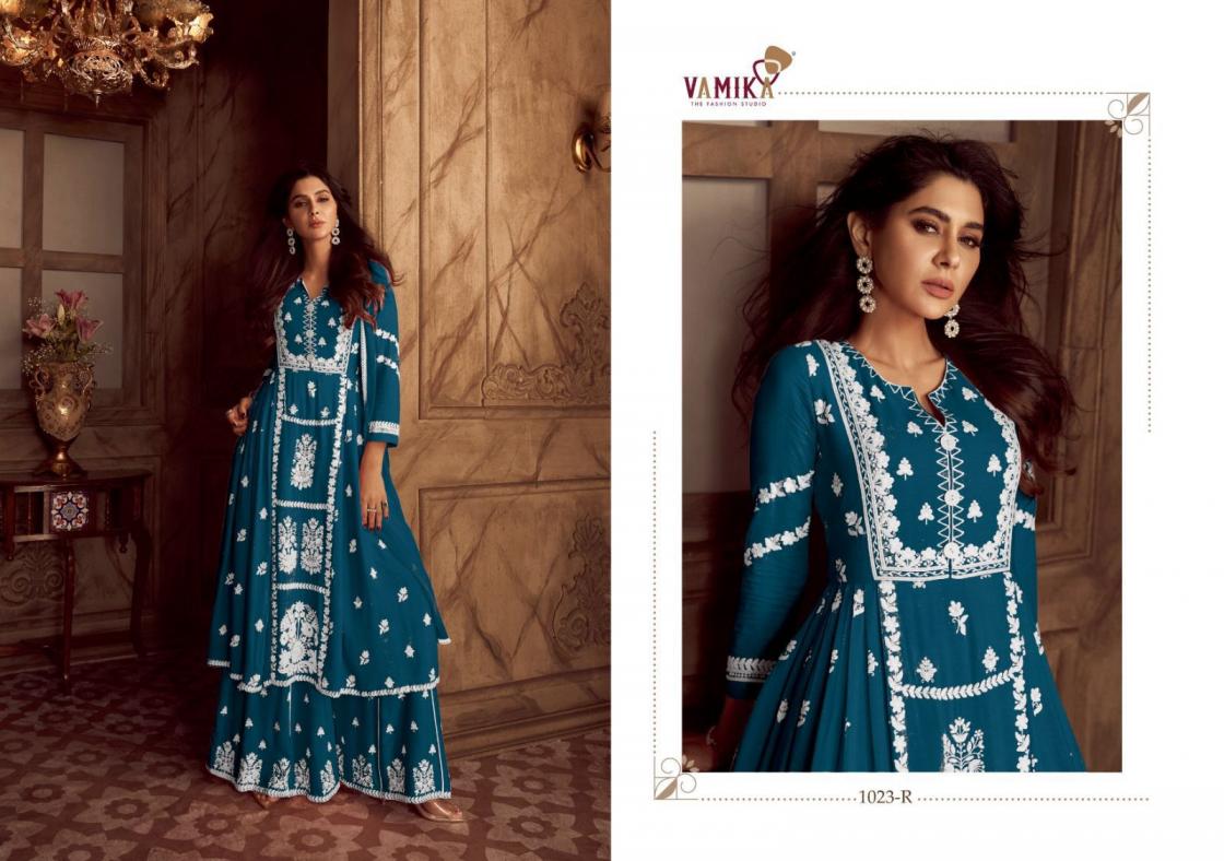 vamika lakhnavi vol 4 dark list rayon party wear full stitch plazzo suits online