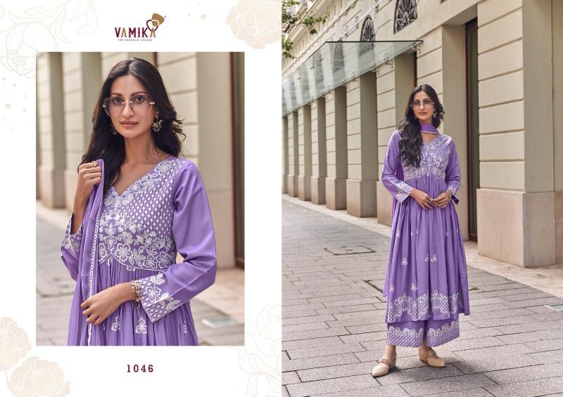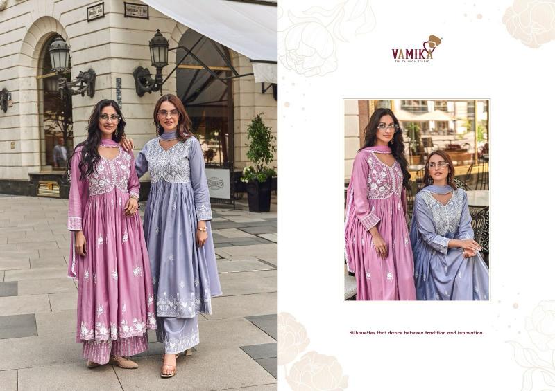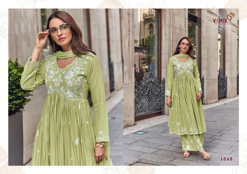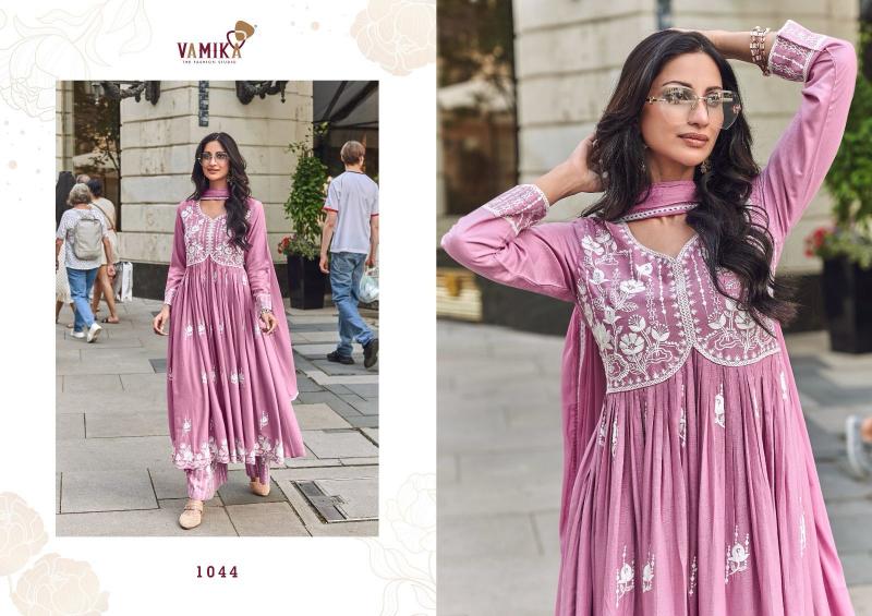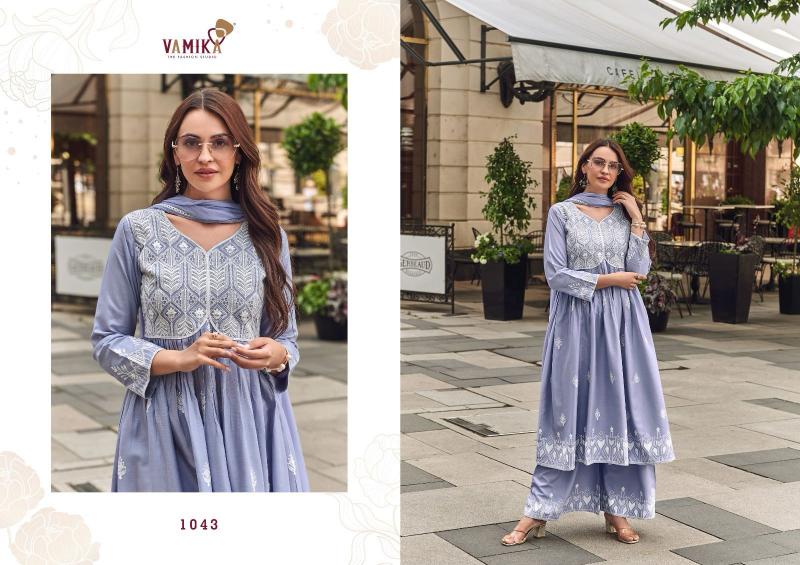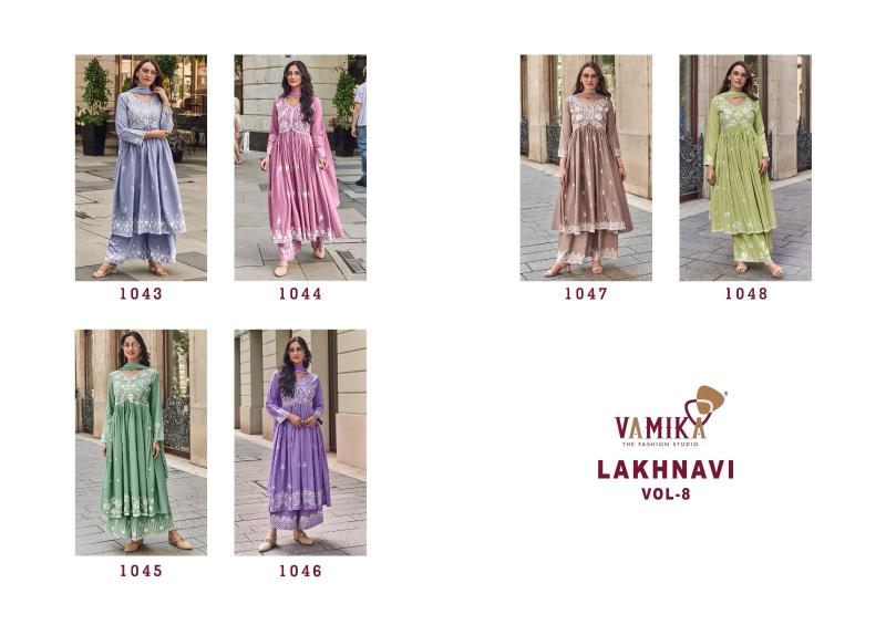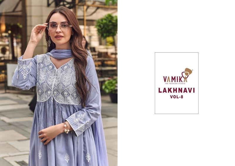 vamika lakhnavi vol 8 rayon readymade fashionable 3pcs dress supplier