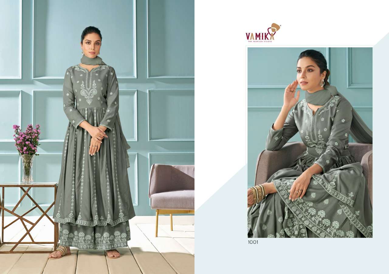 Vamika⢠Presents For This season Presenting Exclusive Hit LAKHNAWI Series collection  Catalogue Name:- LAKHNAWI VOL.1 (6Pcs) (D.NO.1001 To 1006 ) Fabrics Details:- Top:- REYON (14KG.)  PLAZO/PANT :- REYON (14KG.) DUPPATTA:- NAZMIN Size-S-36, M-38, L-40, XL-42, XXL-44, 3xl-46 Des.Total:-6Pcs Rate:- 1195 (+GST EXTRA) Dispatch:-Next Week |