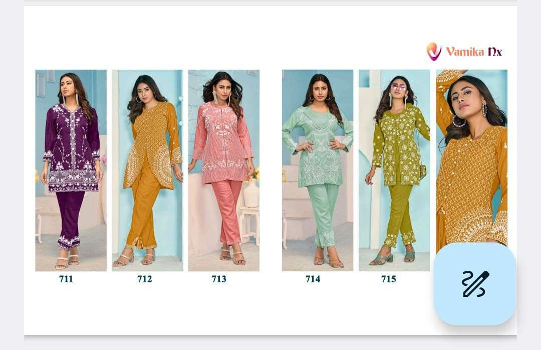 vamika veera vol 3 rayon readymade designer co-ord sets