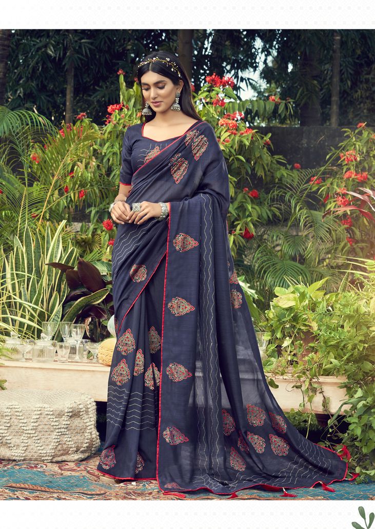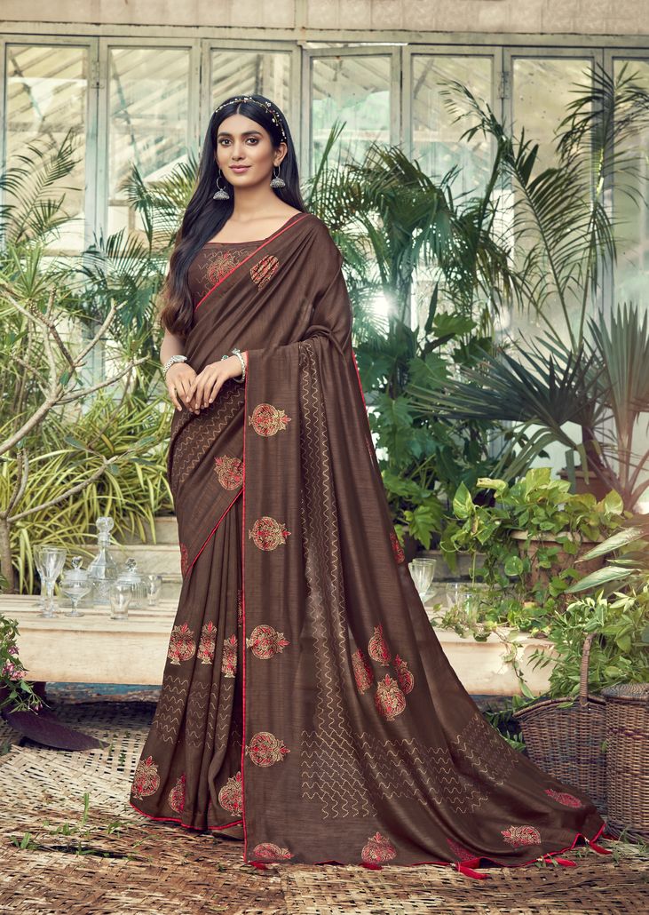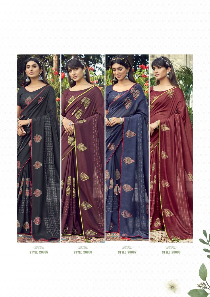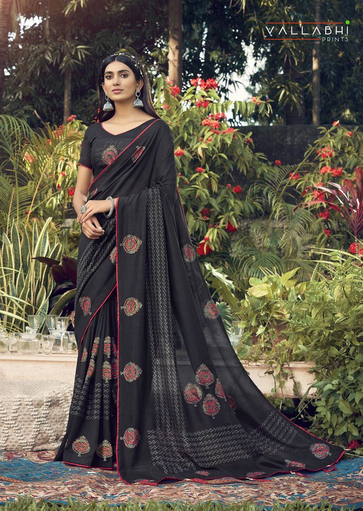 fabric vichitra print jari piping border. Catlog name - VANITHA VOL-3. Rate -700 per PCs . Set to set . Delivery from today |
