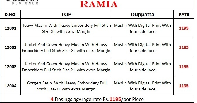 Vardan Designer Ramia Readymade collections ...the ethnic collection... Thank For Your Love⤠Support . Its Inspire usâÂÂ. Description Top : * Heavy Maslin With Heavy Embroidery Inner Stiched* XL size( extra margen) Duppata- Maslin Digital Print with Four side lace Design -0â£4⣠Rate : â¹ 1â£1â£9â£5⣠#Unbeatable_price #Festival_collection *â°Dispatching- 1â£2⣠March |