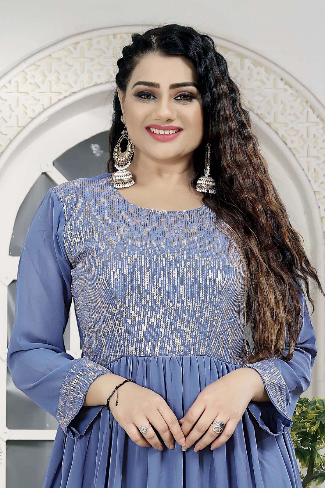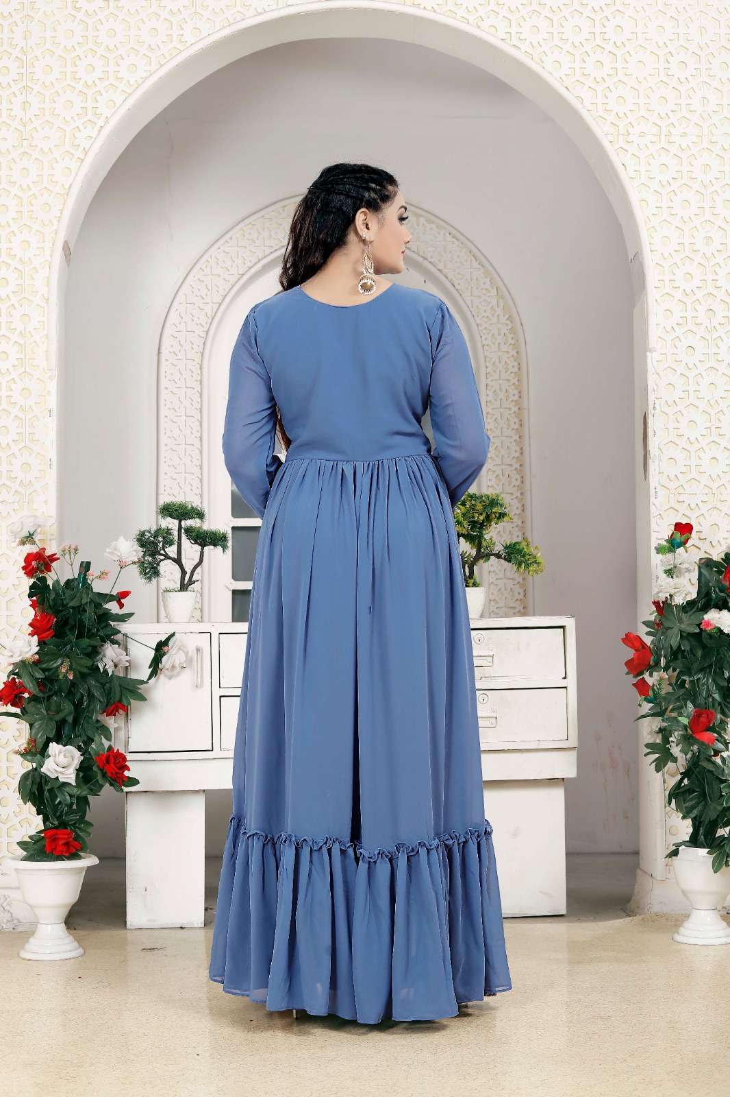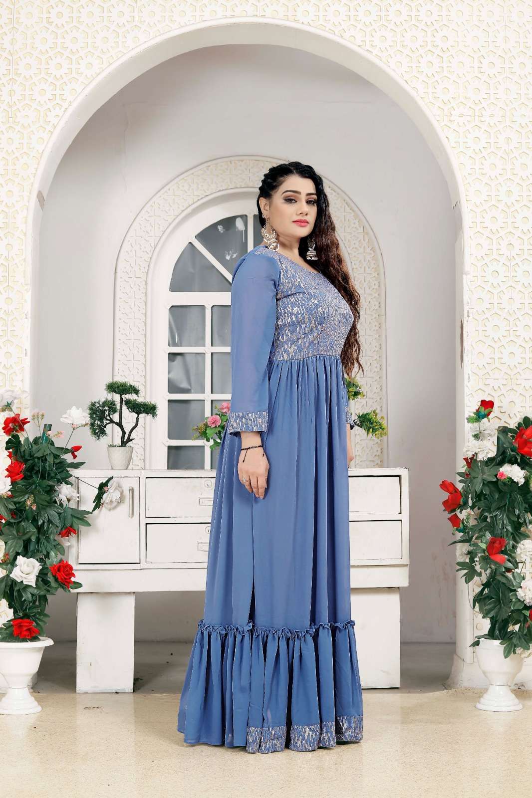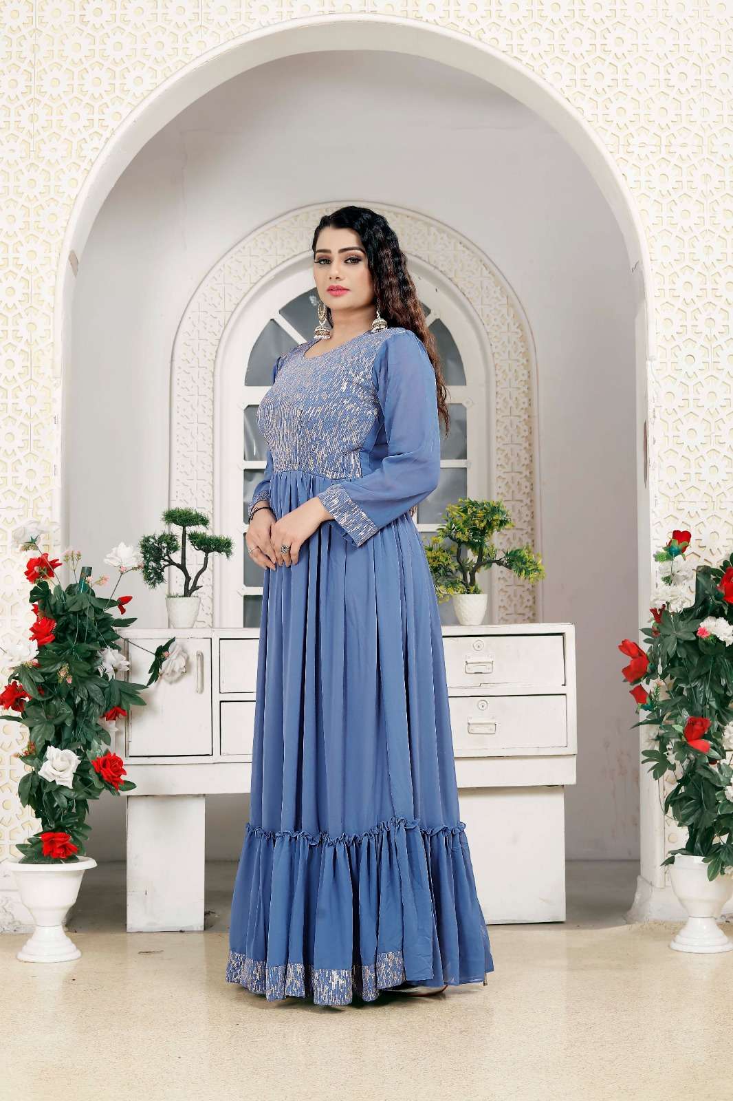 vardan present sky kurti 7601 georgette designer long gown combo set