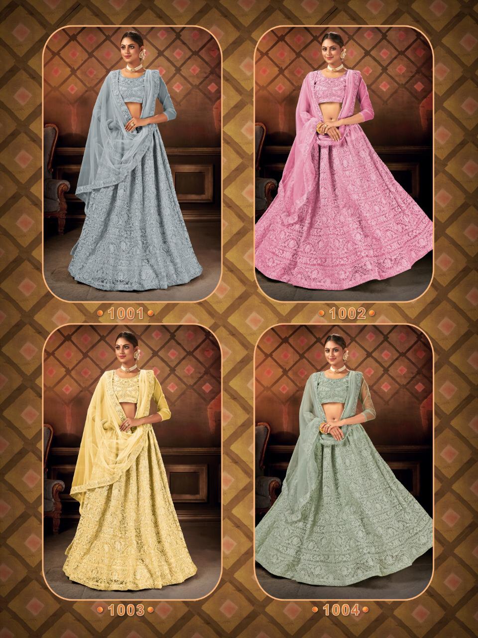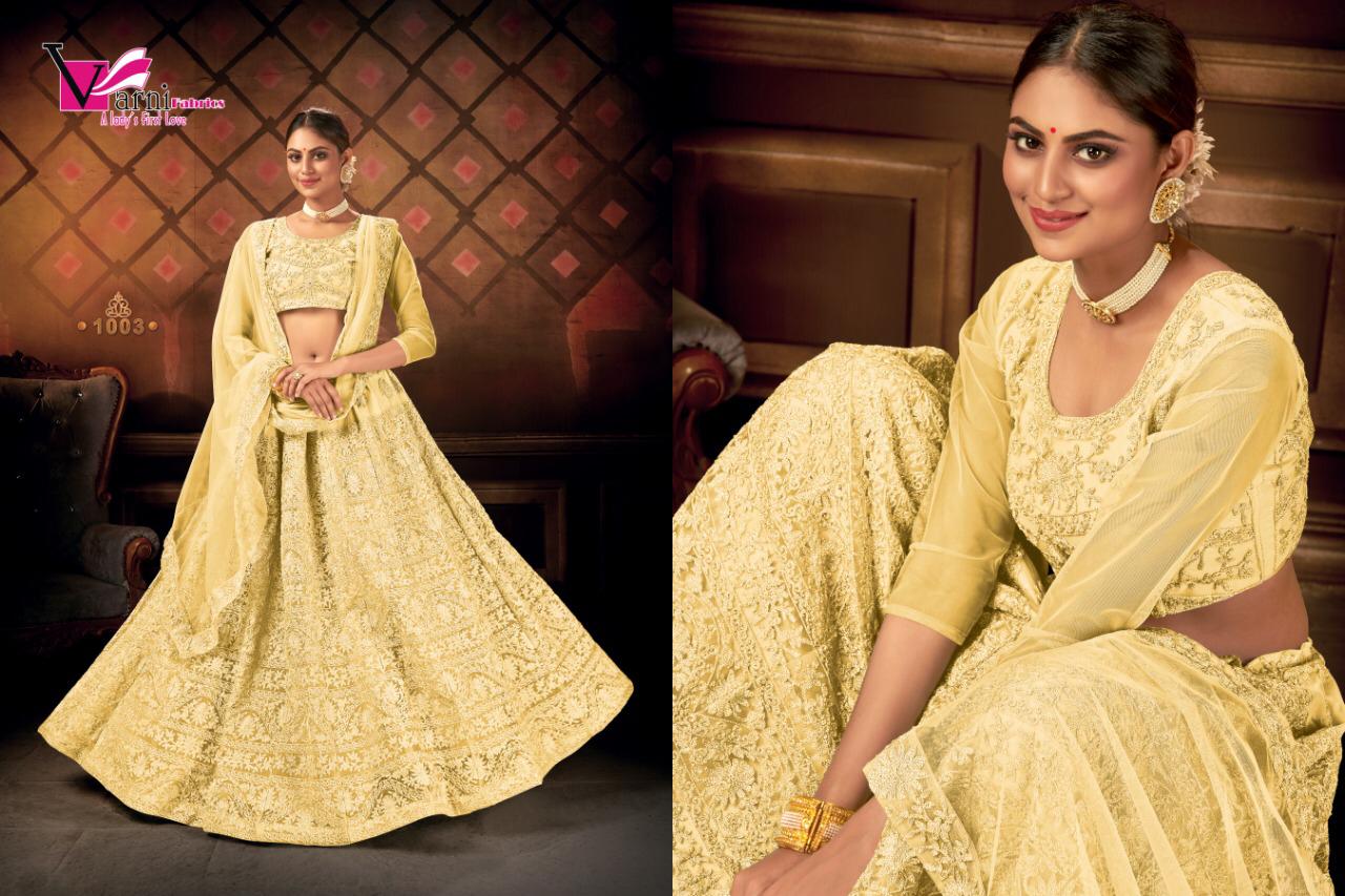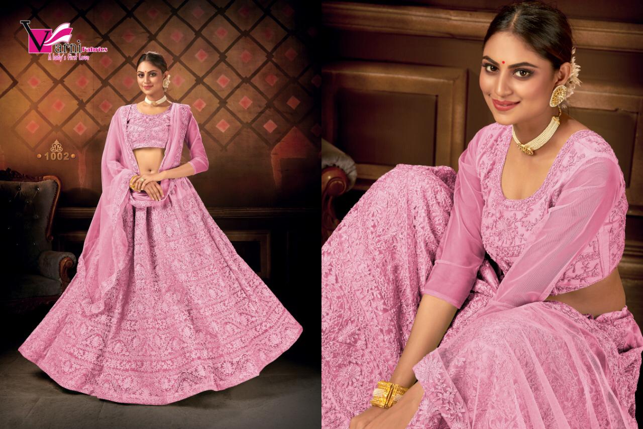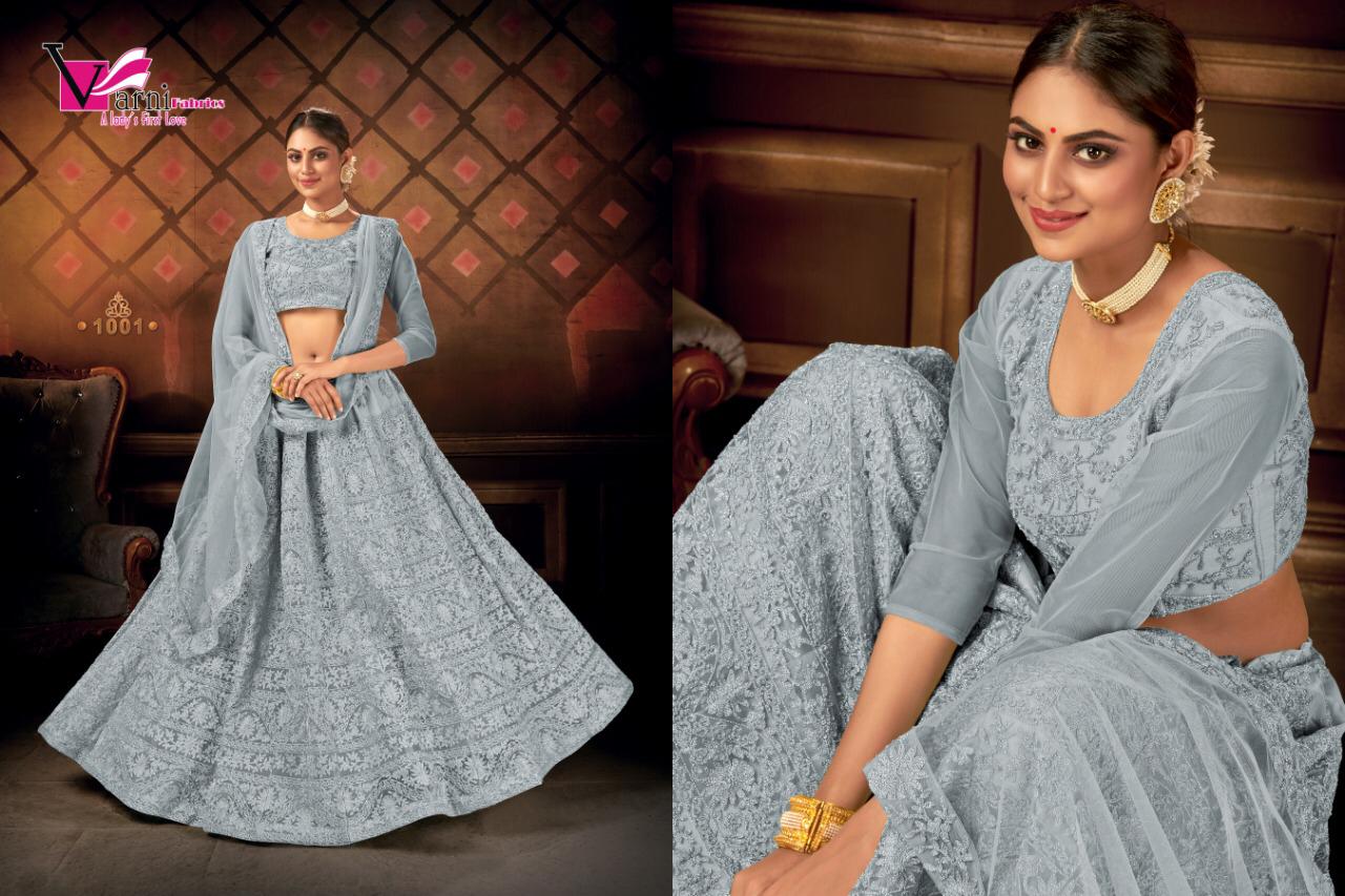Varni Fabrics Zeeya Sultana Embroidery Work Net 1001-1004 Series Designer Lehenga