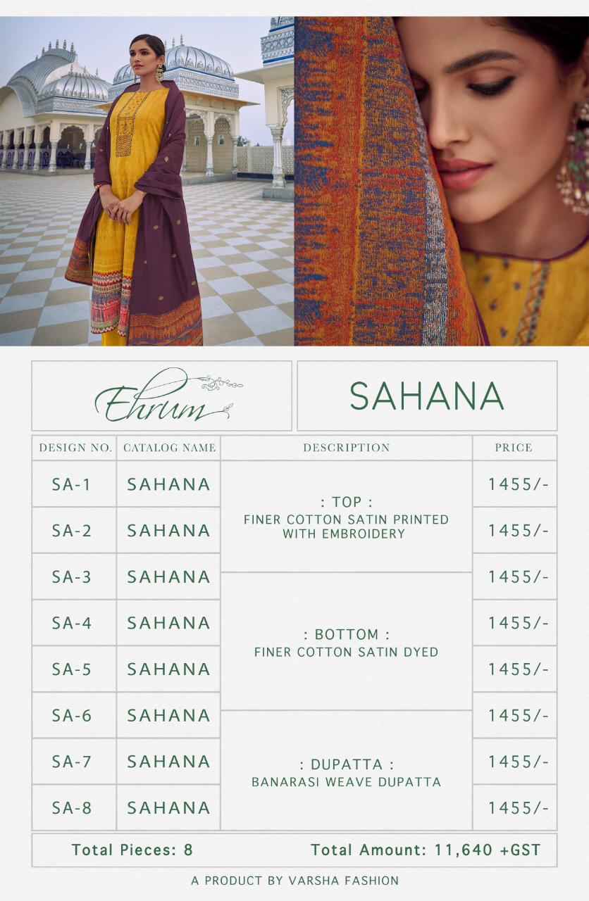 Sahana Finer cotton satin printed with embroidery with Banarasi weave Dupatta Price- 1455/- Pc - 08 Delivery 5-6 Days |