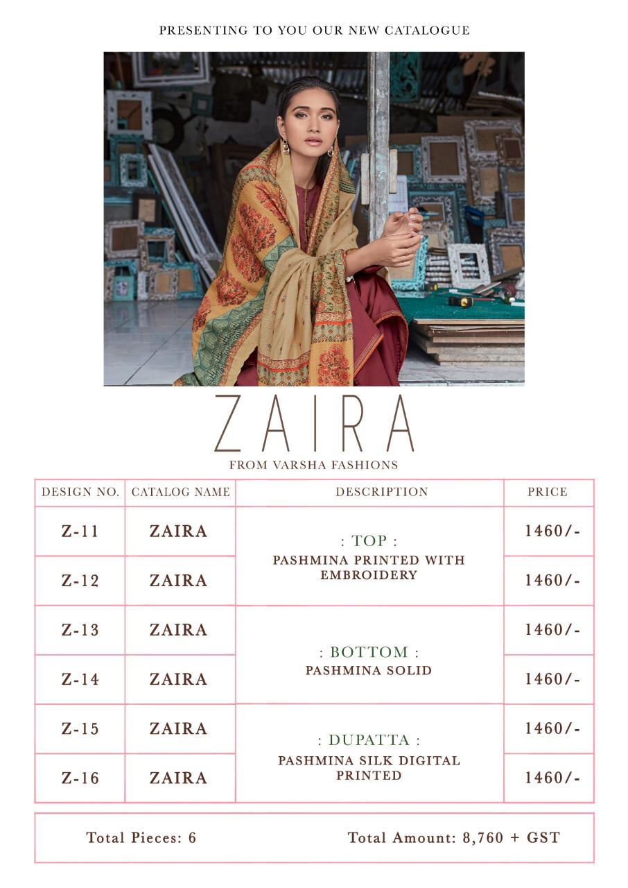 Varsha Fashion Zaira Pashmina Printed With Embroidery Looking Classy Salwar Suits