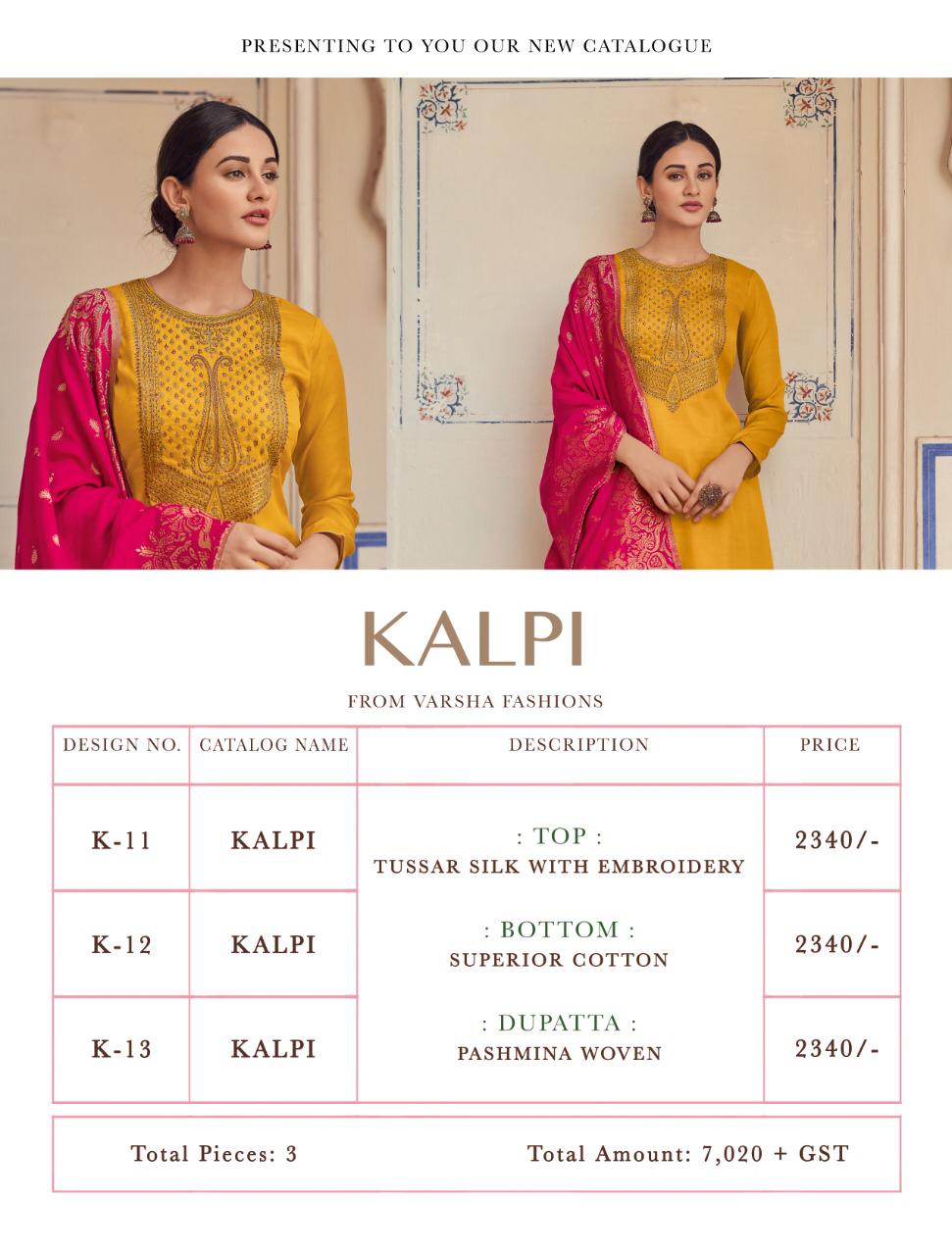 Varsha Fashions Launch Kalpi Tussar Silk With Embroidery Traditional Look Suits