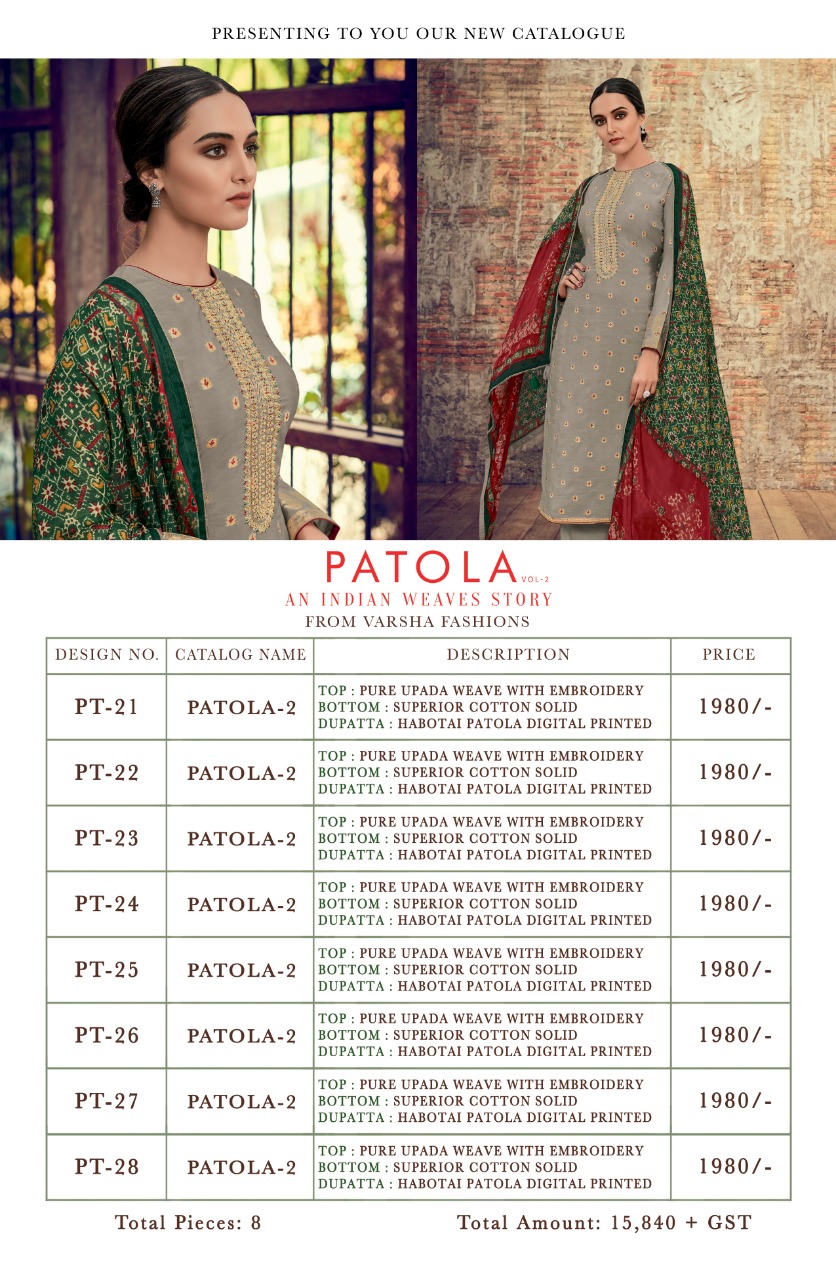 Varsha Launch Patola Vol 2 Upada Weave Embroidery Work Rich Look Suit