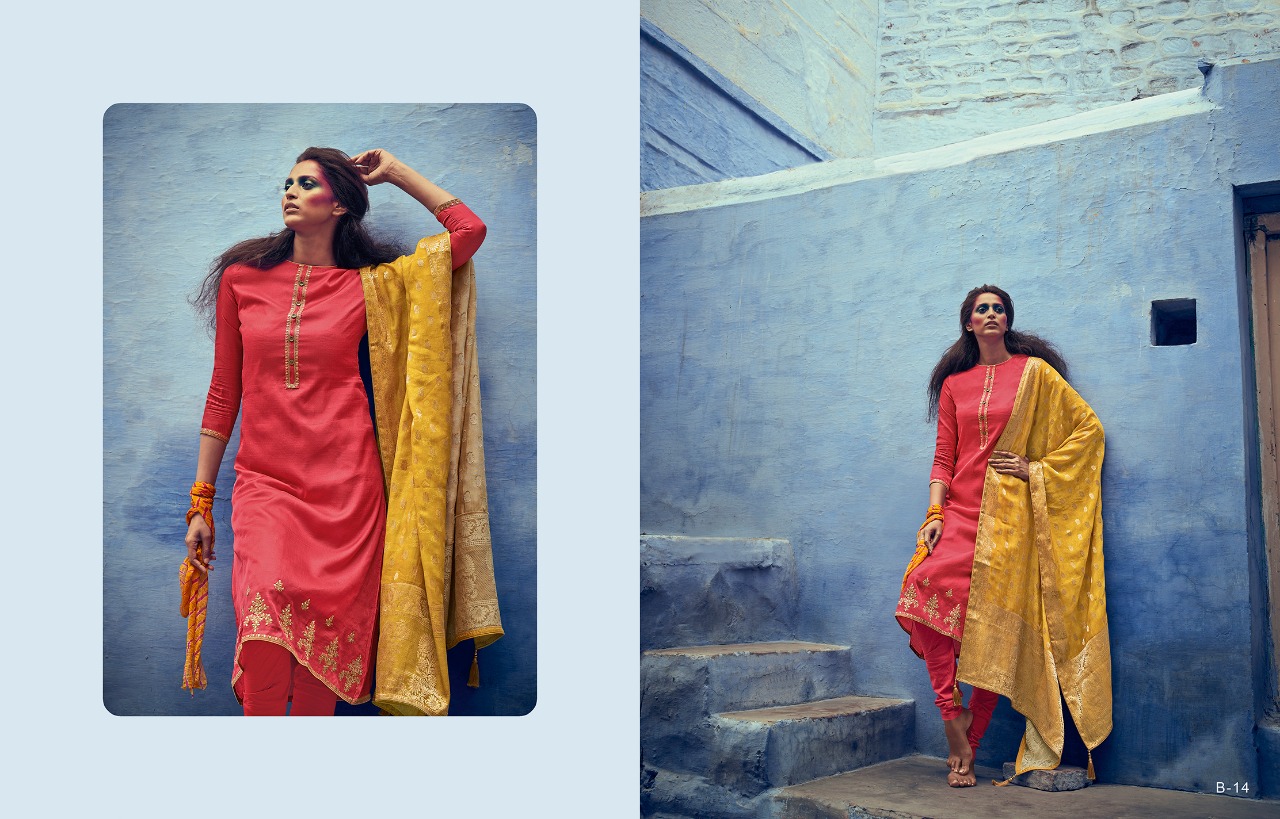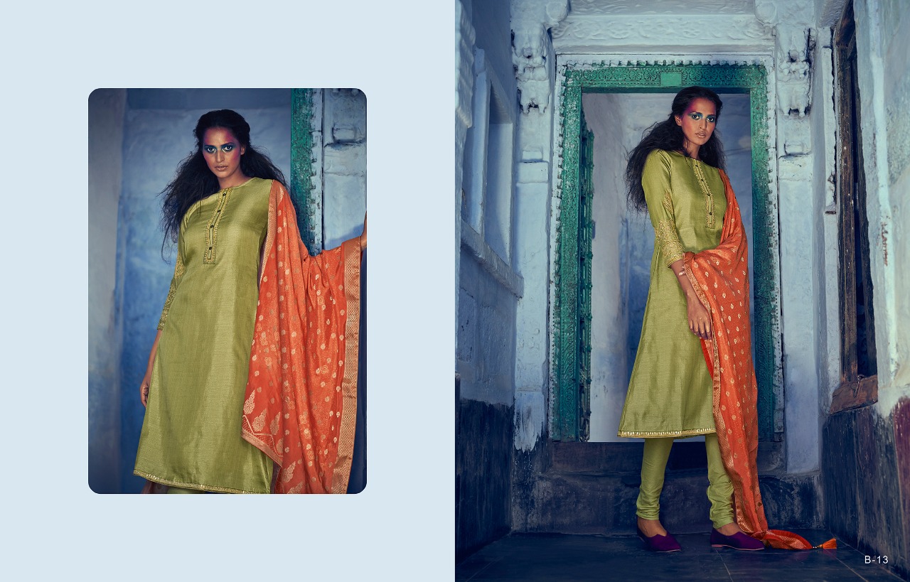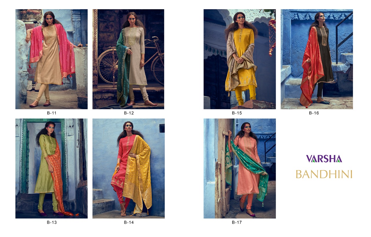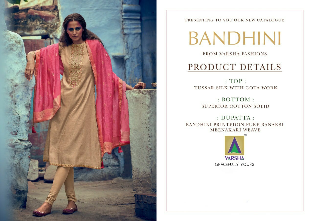 Varsha Present Bandhini Tussar Silk Embroidery Luxury Wedding Suit Collection