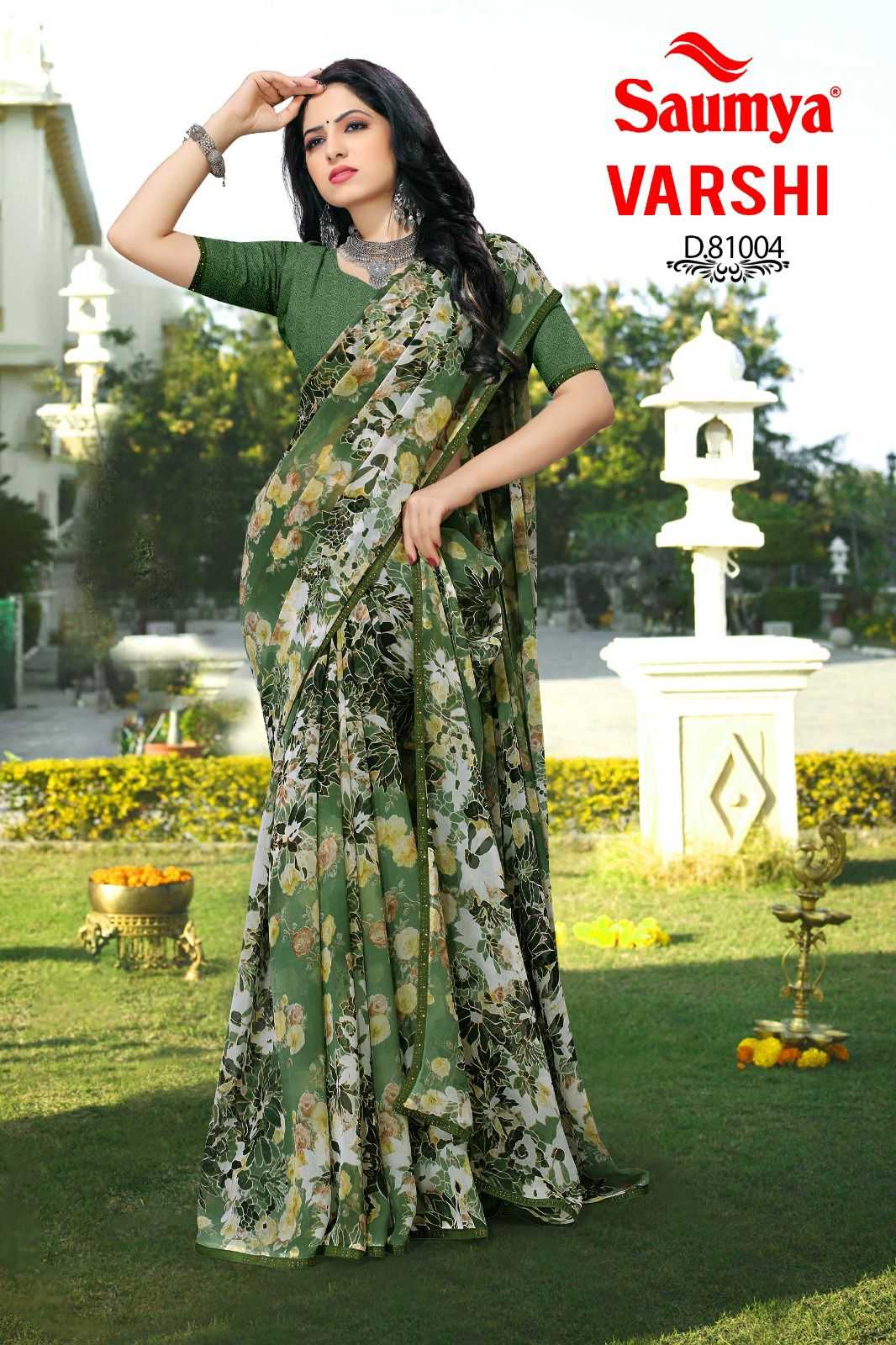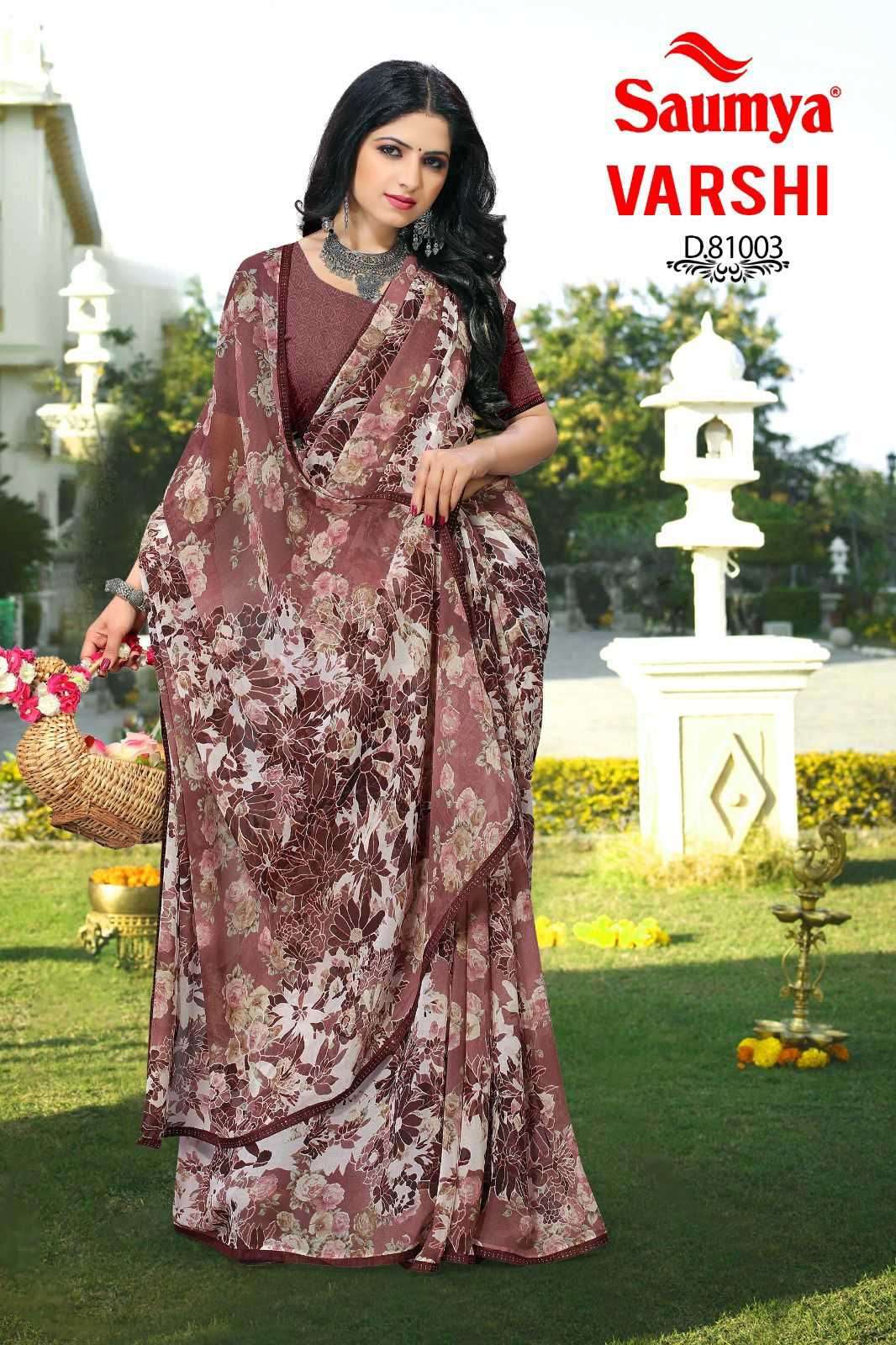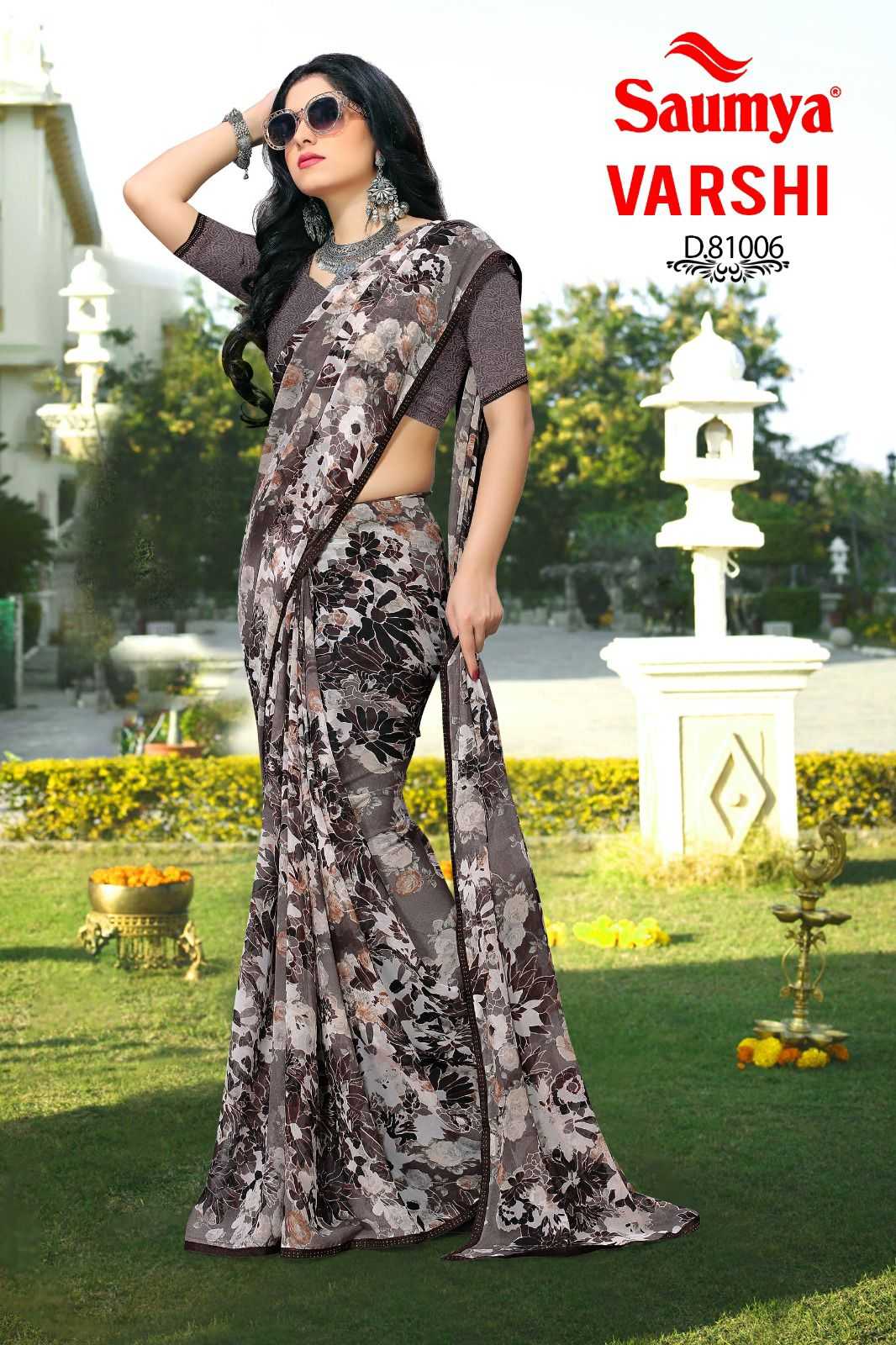 varshi by saumya georgette print siroski lace latest wear saree wholesaler