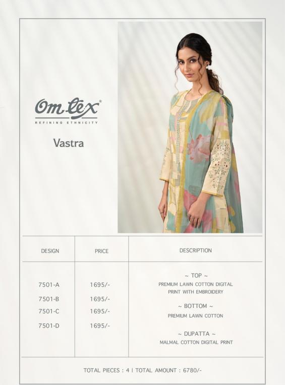 Om Tex Presents Latest Collection Launched on 26-04-2025. Presenting Beautiful collection of 4 PCS with Unstitched .