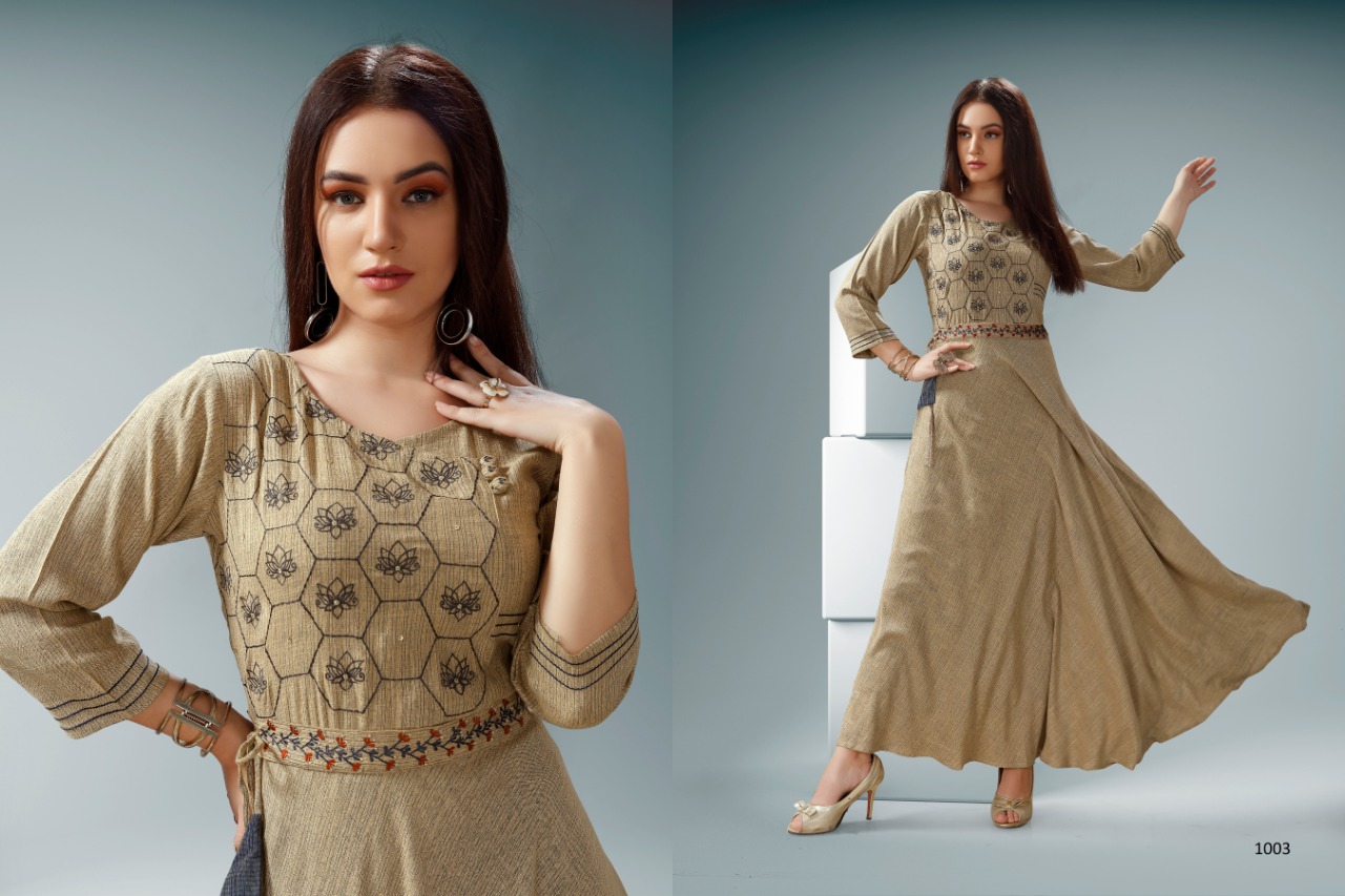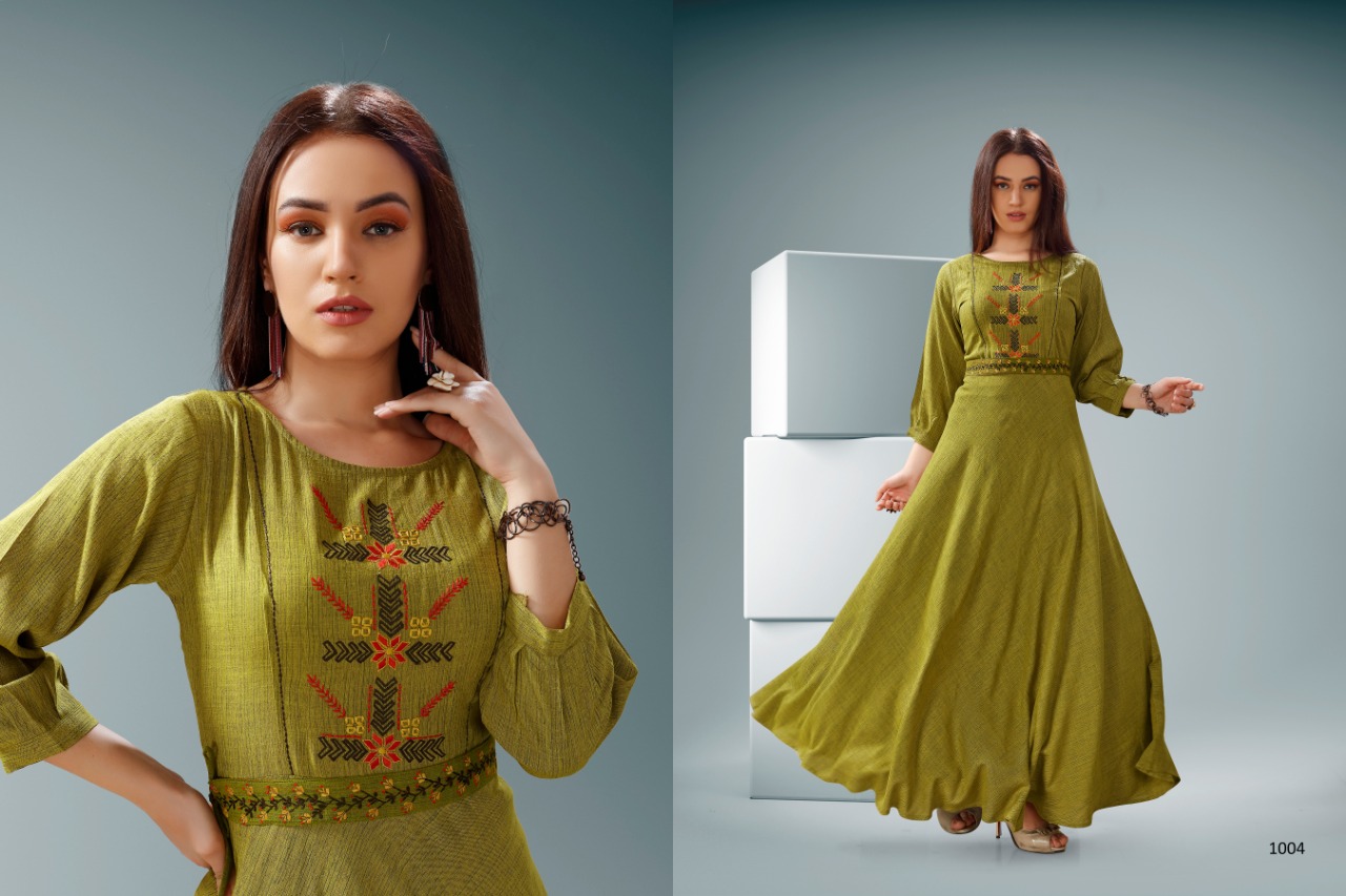 Vastra Moda Icon Vol 1 Premium Viscose Slub With Embroidery Work Long Kurti