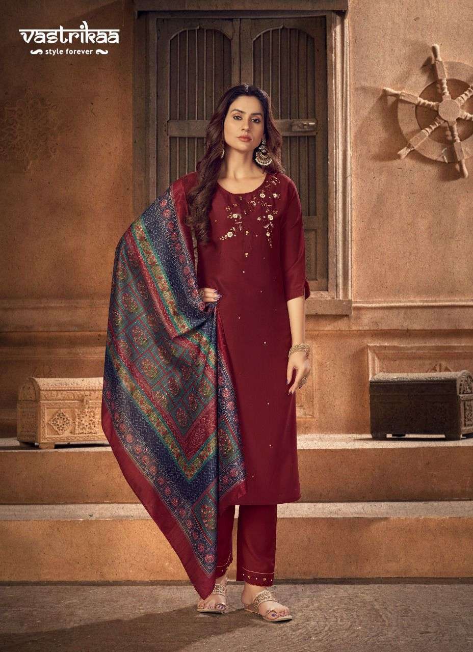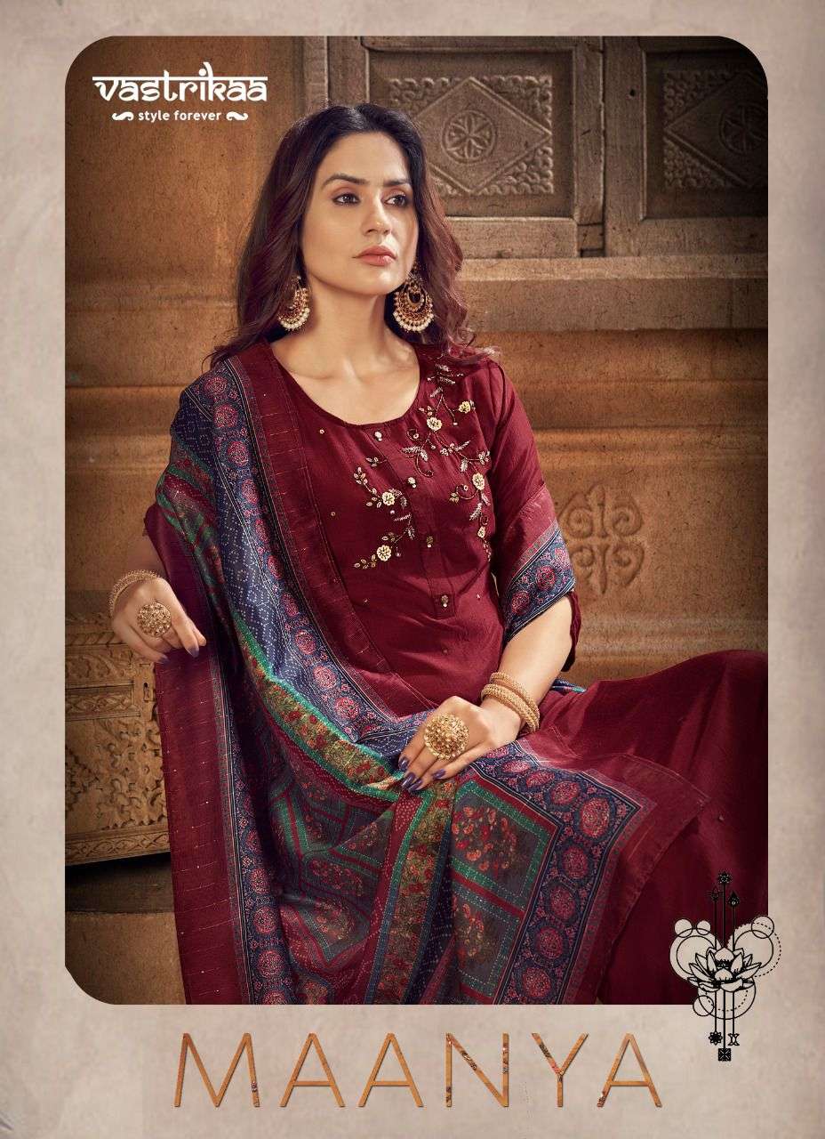vastrikaa present maanya chinon silk pure handwork fully stitch suit wholesaler