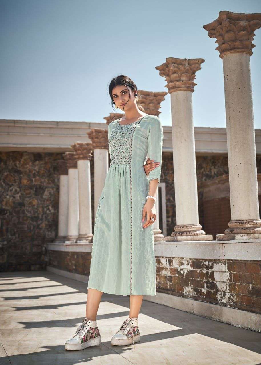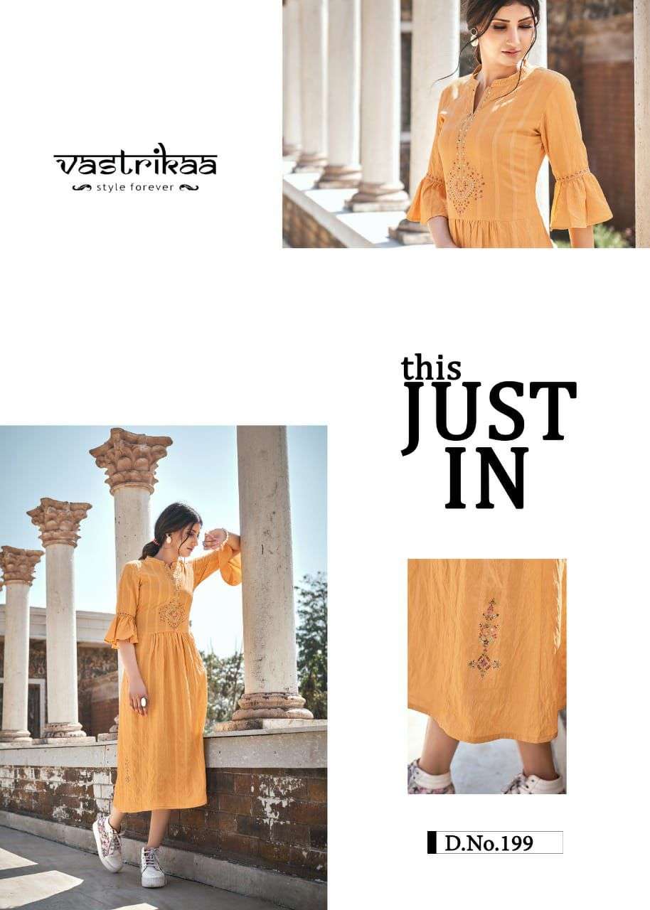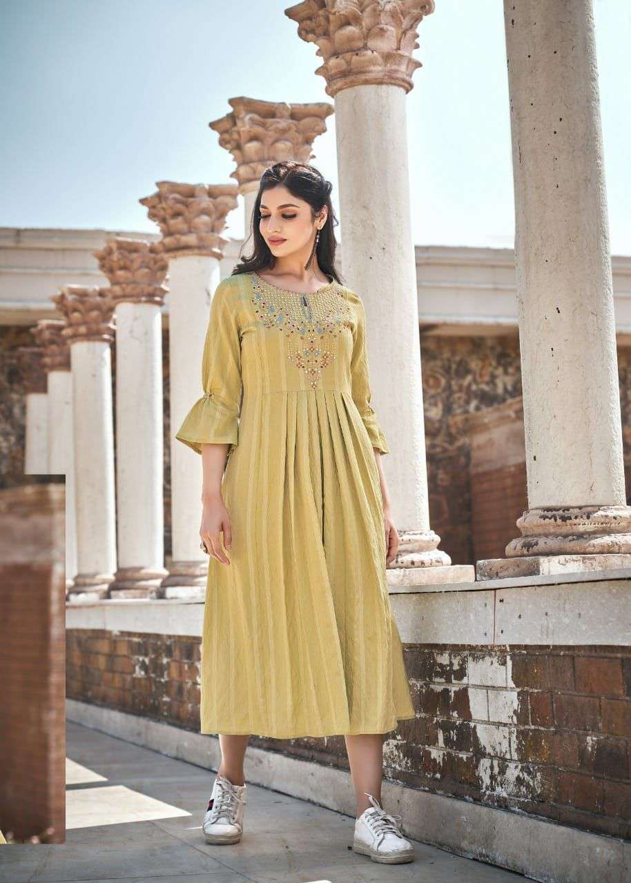 vastrikaa sunshine a line kurtis with elegant embroideries wholesale price
