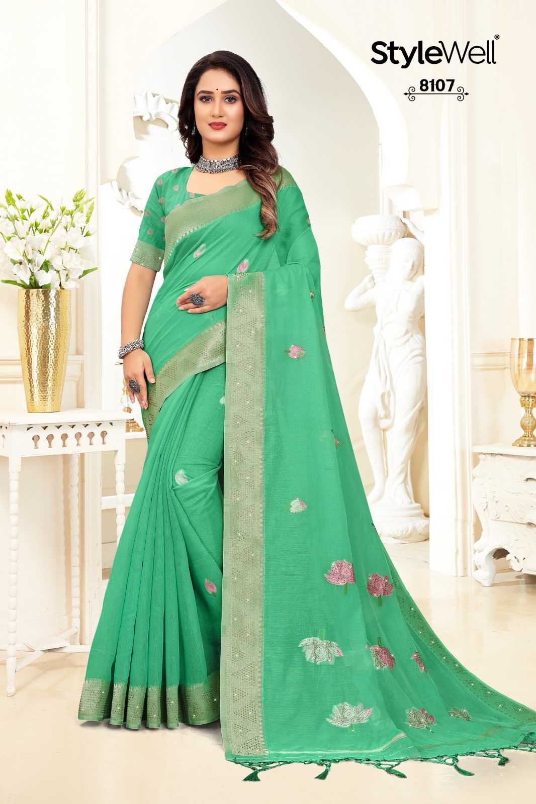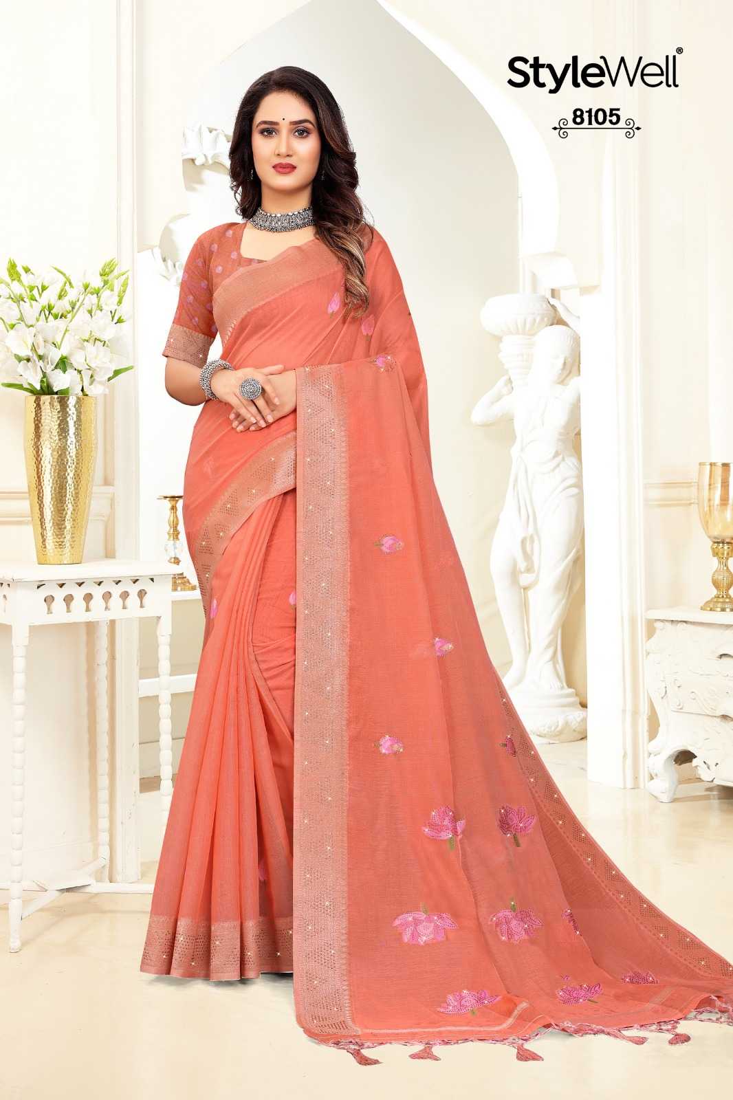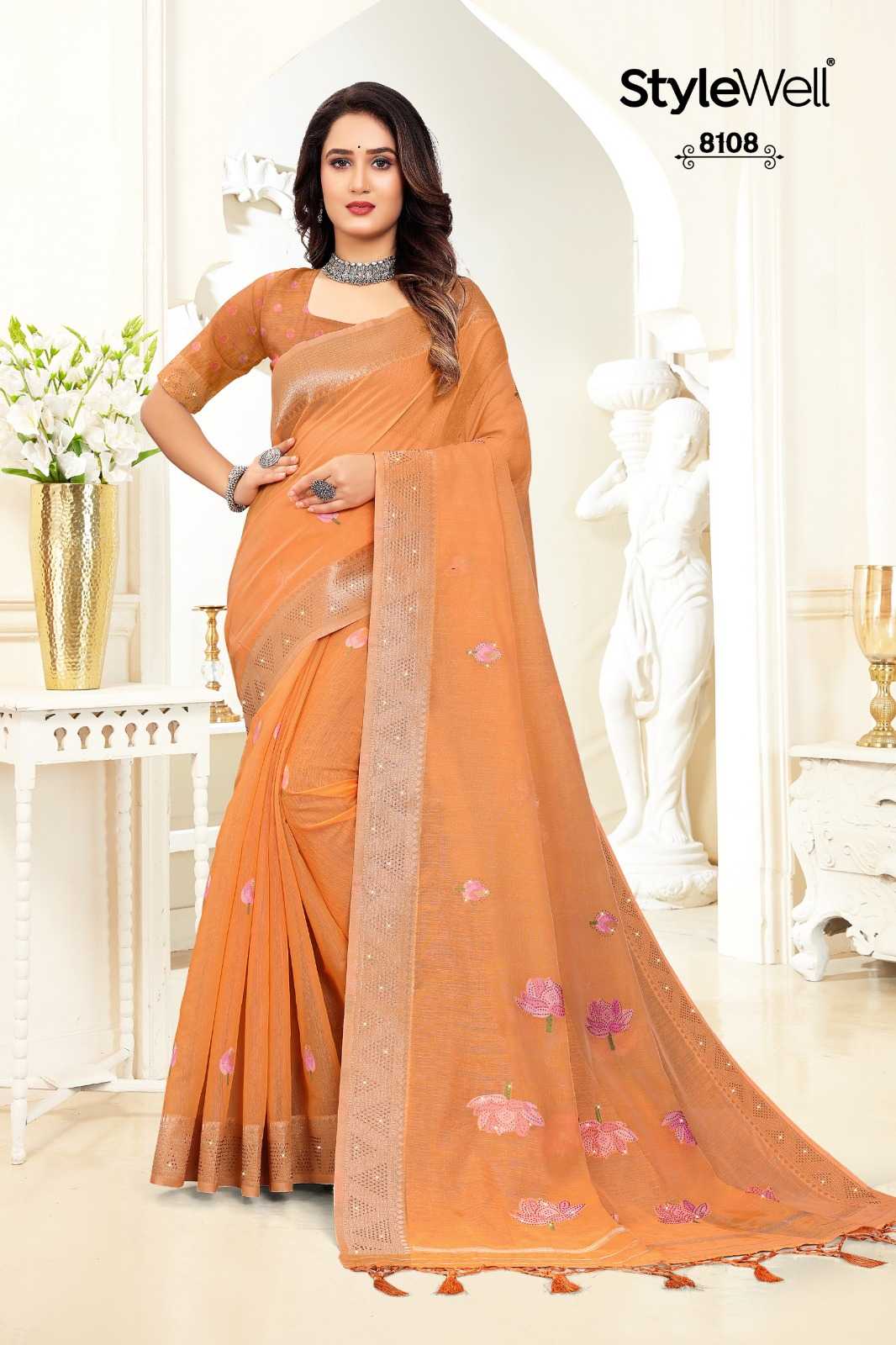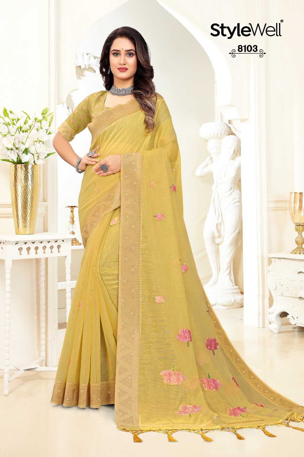 STYLEWELL 🌻 VASUDHA 🌻 RATE - ₹1220/- FABRIC - Fancy Cotton Saree With Swarovski Handwork Set - 8 pc |