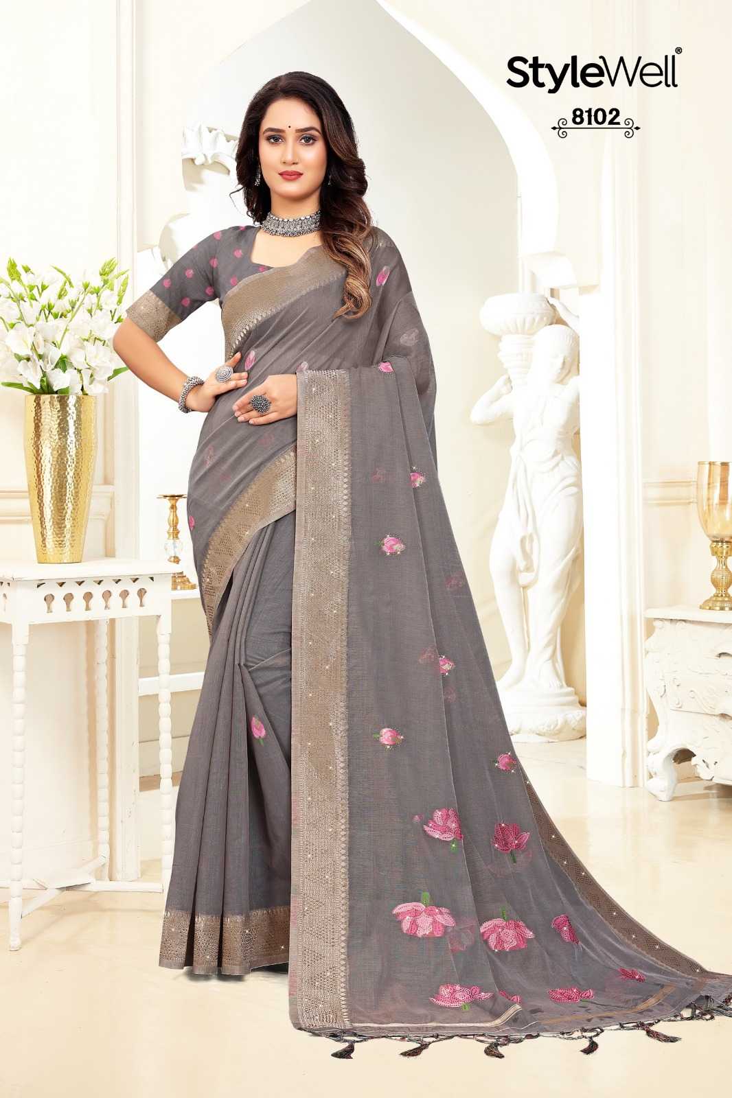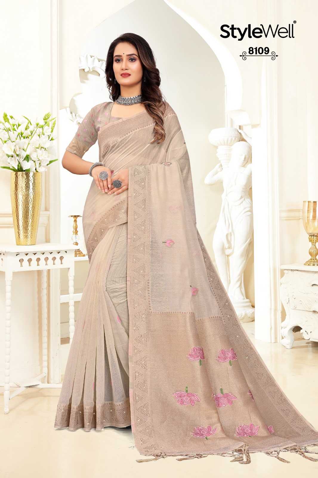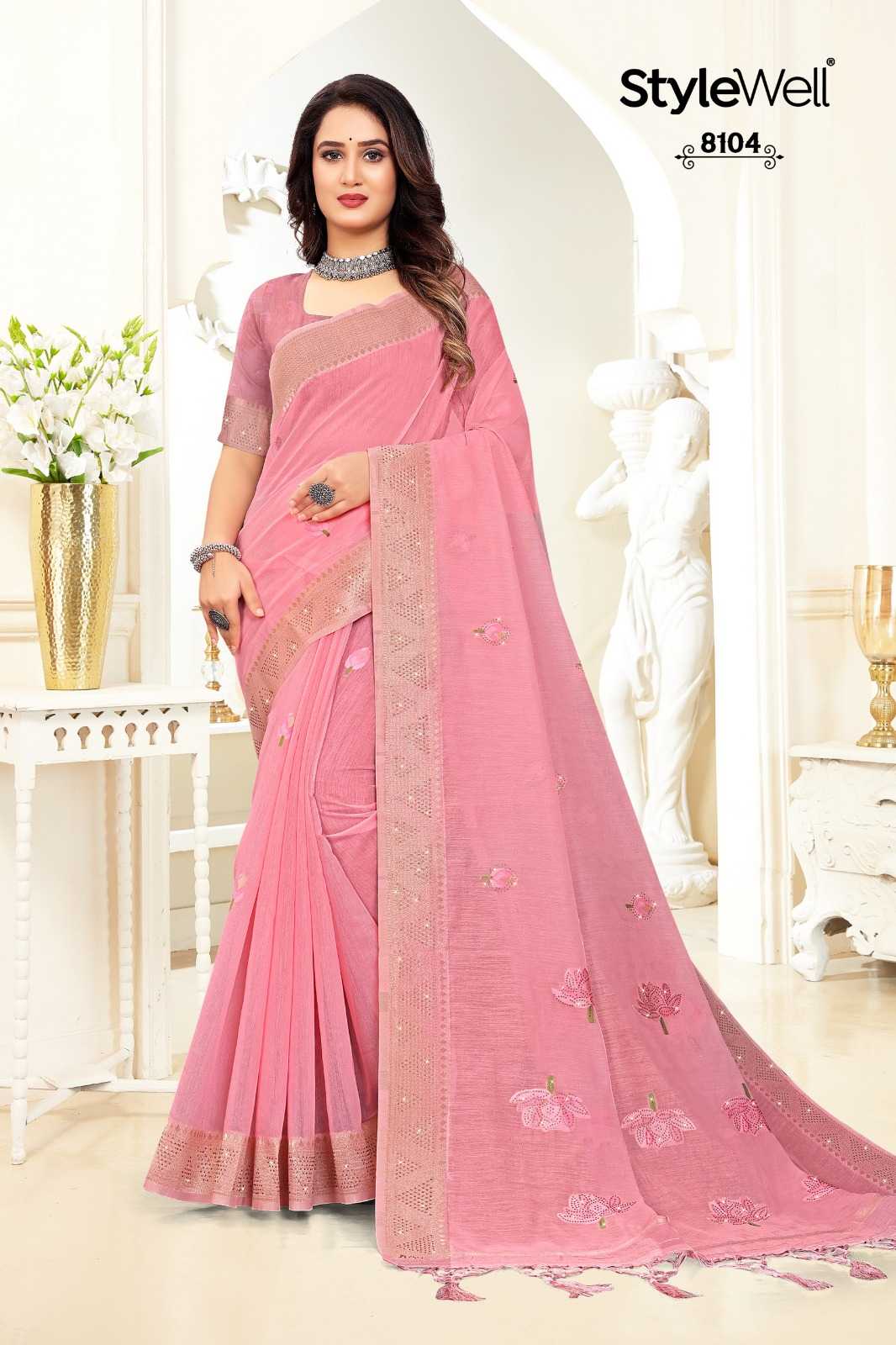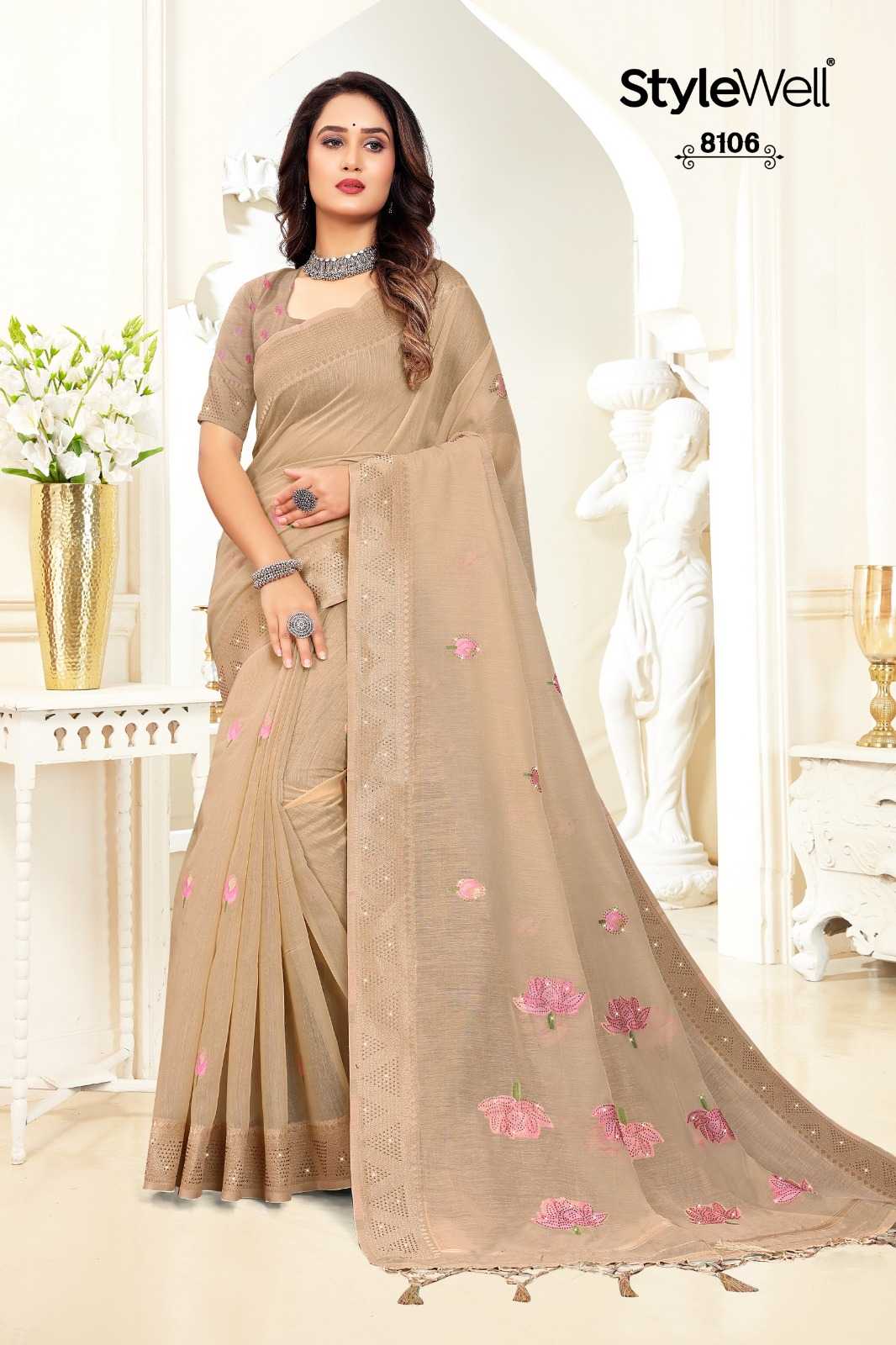 STYLEWELL 🌻 VASUDHA 🌻 RATE - ₹1220/- FABRIC - Fancy Cotton Saree With Swarovski Handwork Set - 8 pc |