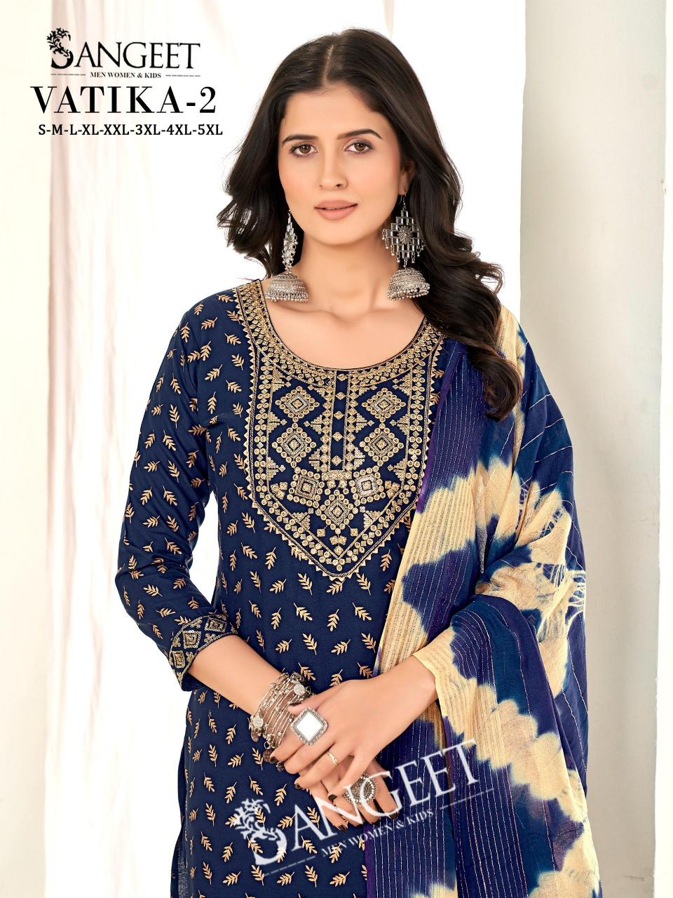 vatika vol 2 rayon gold print readymade plus size salwar kameez