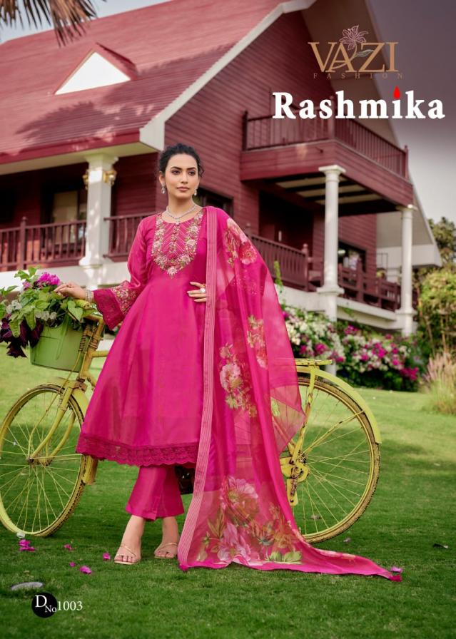 vazi fashion rashmika viscose tissue shimmer readymade stylish 3pcs dress